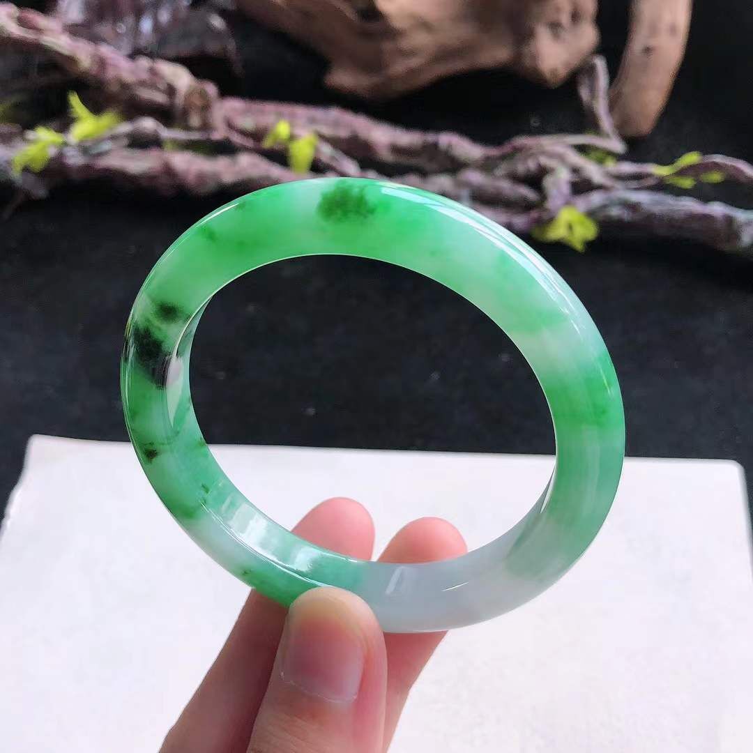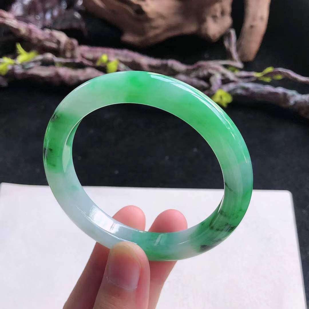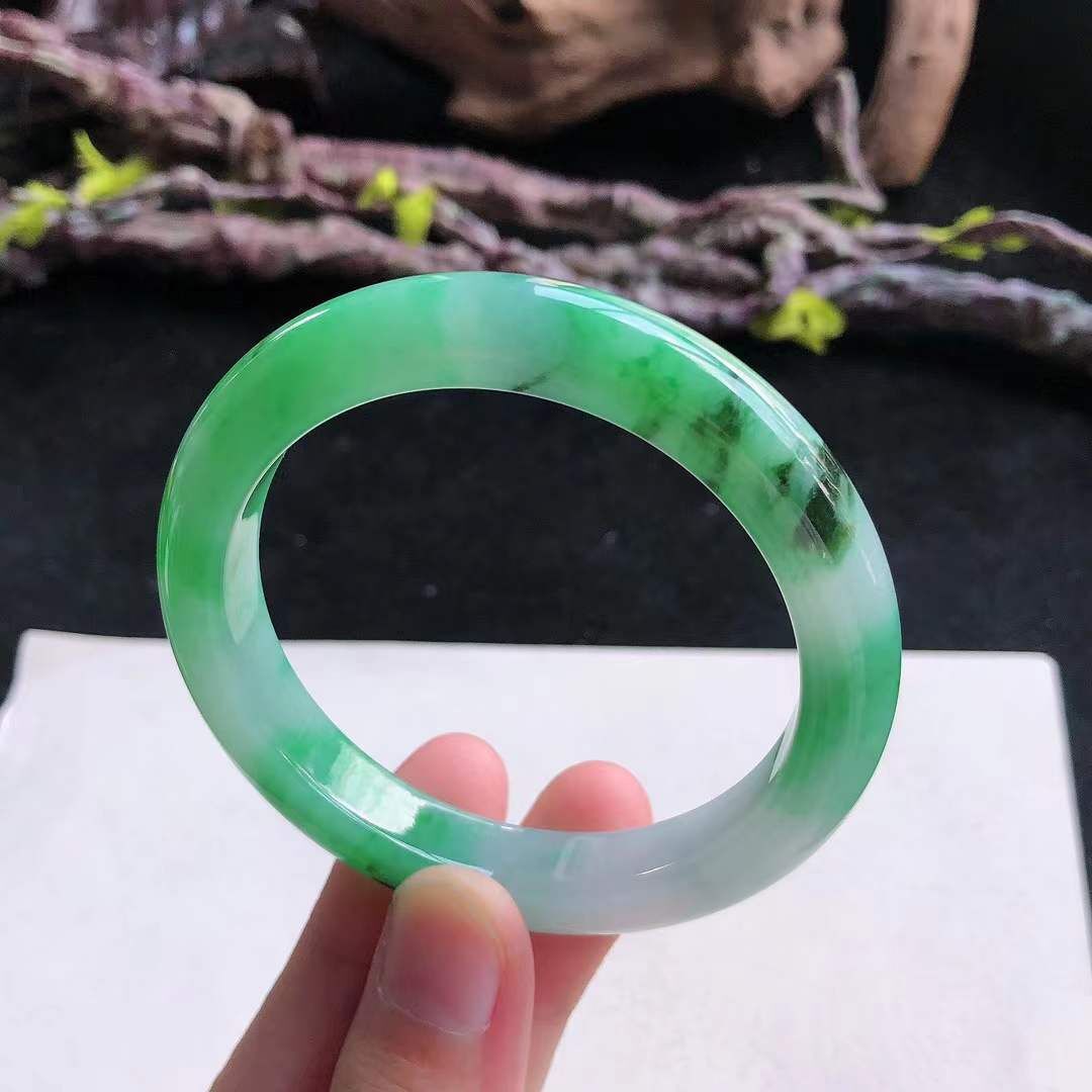 • 冰糯種飄陽綠正圈翡翠手鐲,天然翡翠A玉, 緬甸玉, Jade, Jadeite