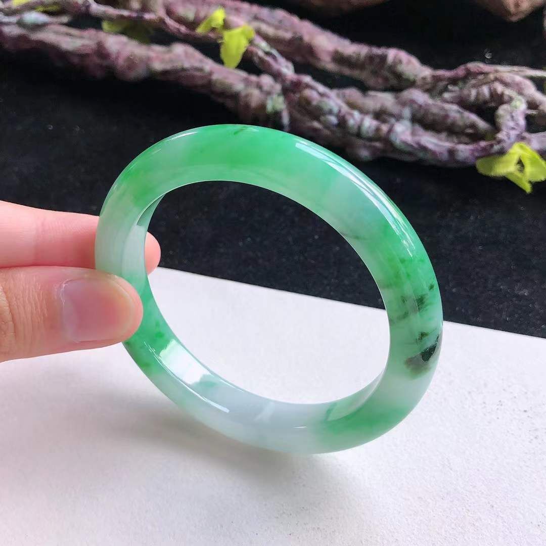 9122631 53.8mm冰糯種飄陽綠正圈翡翠手鐲