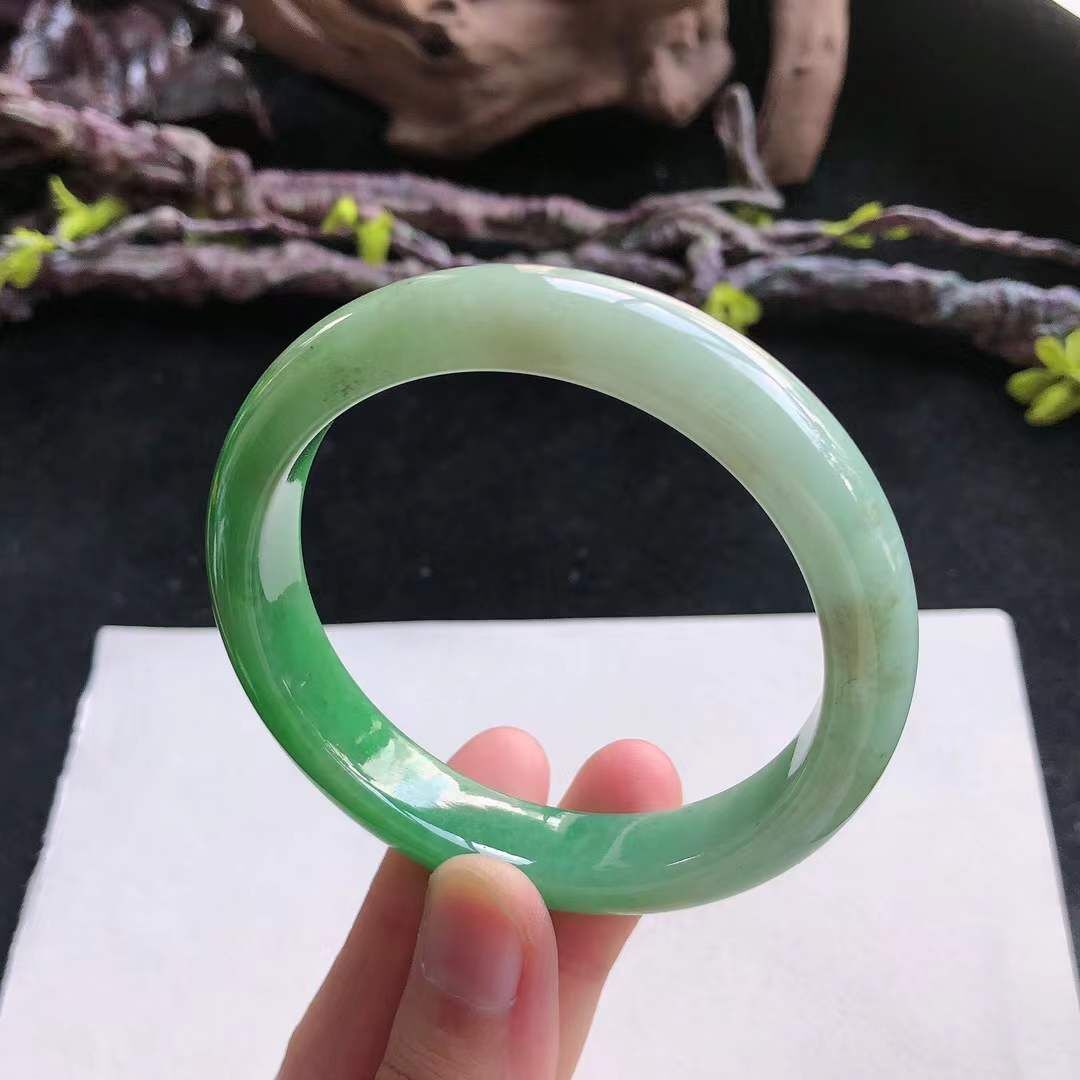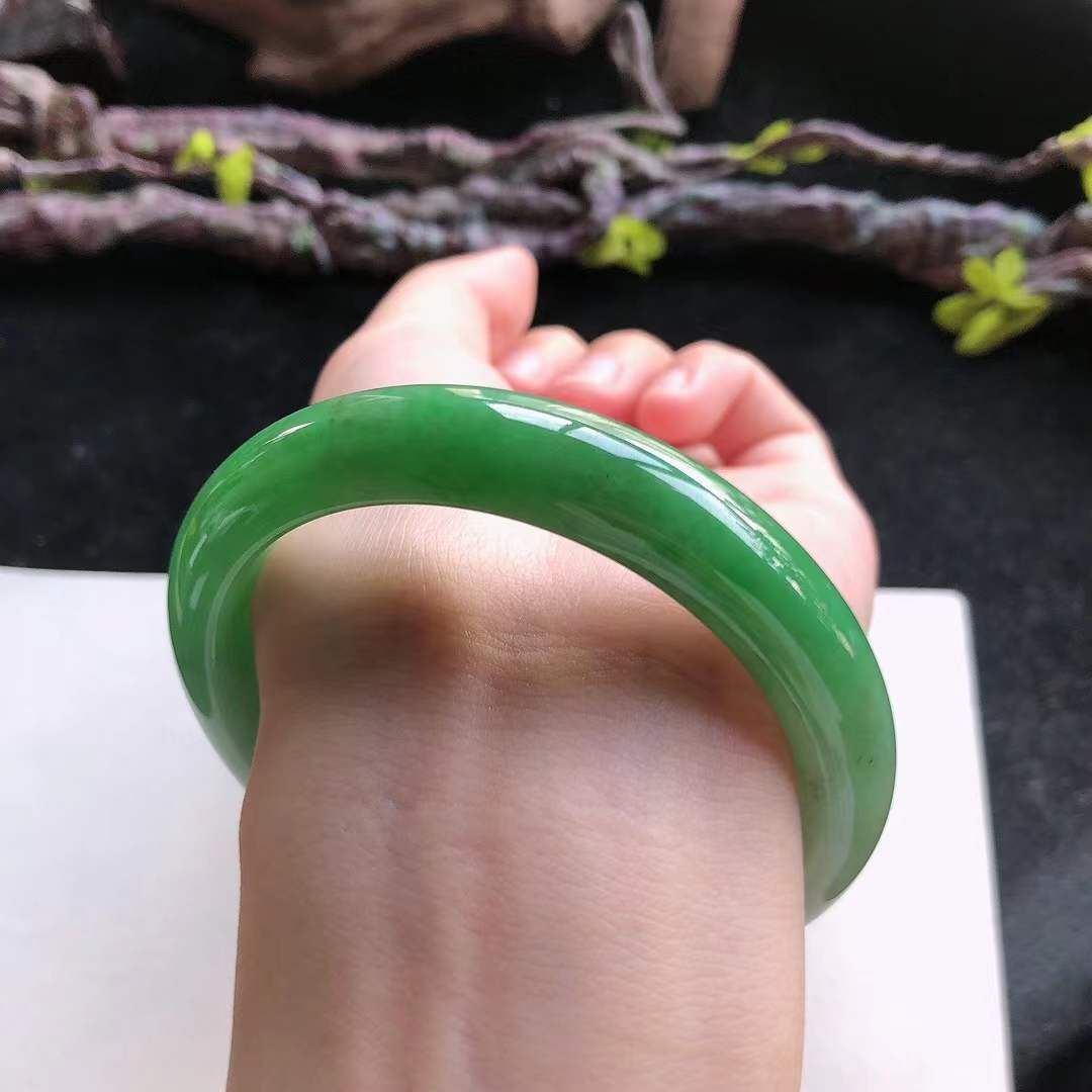 • 冰糯種飄陽綠正圈翡翠手鐲,天然翡翠A玉, 緬甸玉, Jade, Jadeite