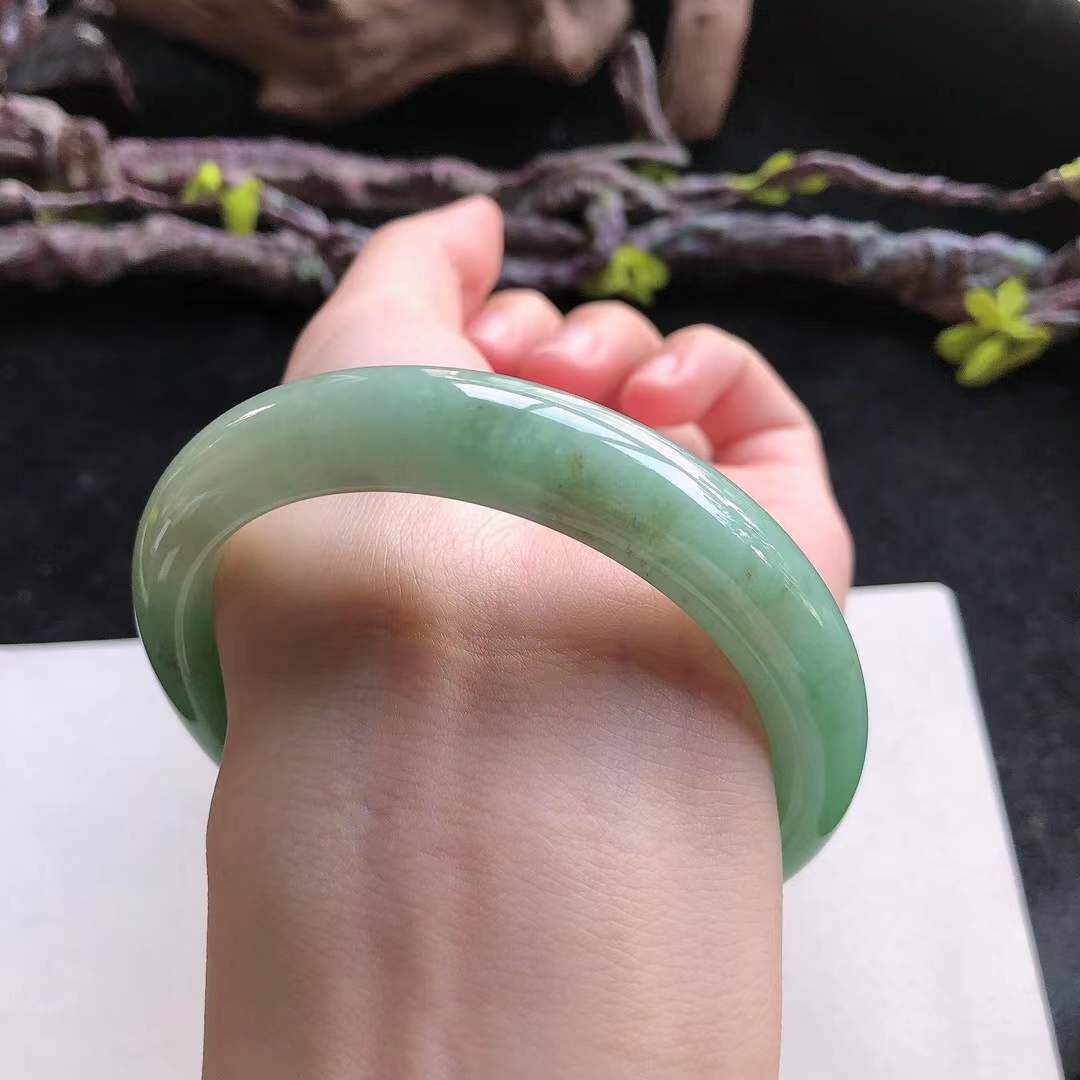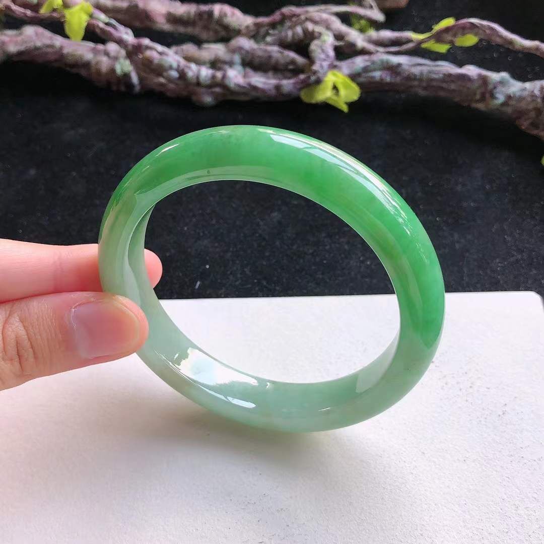 9122633 58mm冰糯種飄陽綠正圈翡翠手鐲