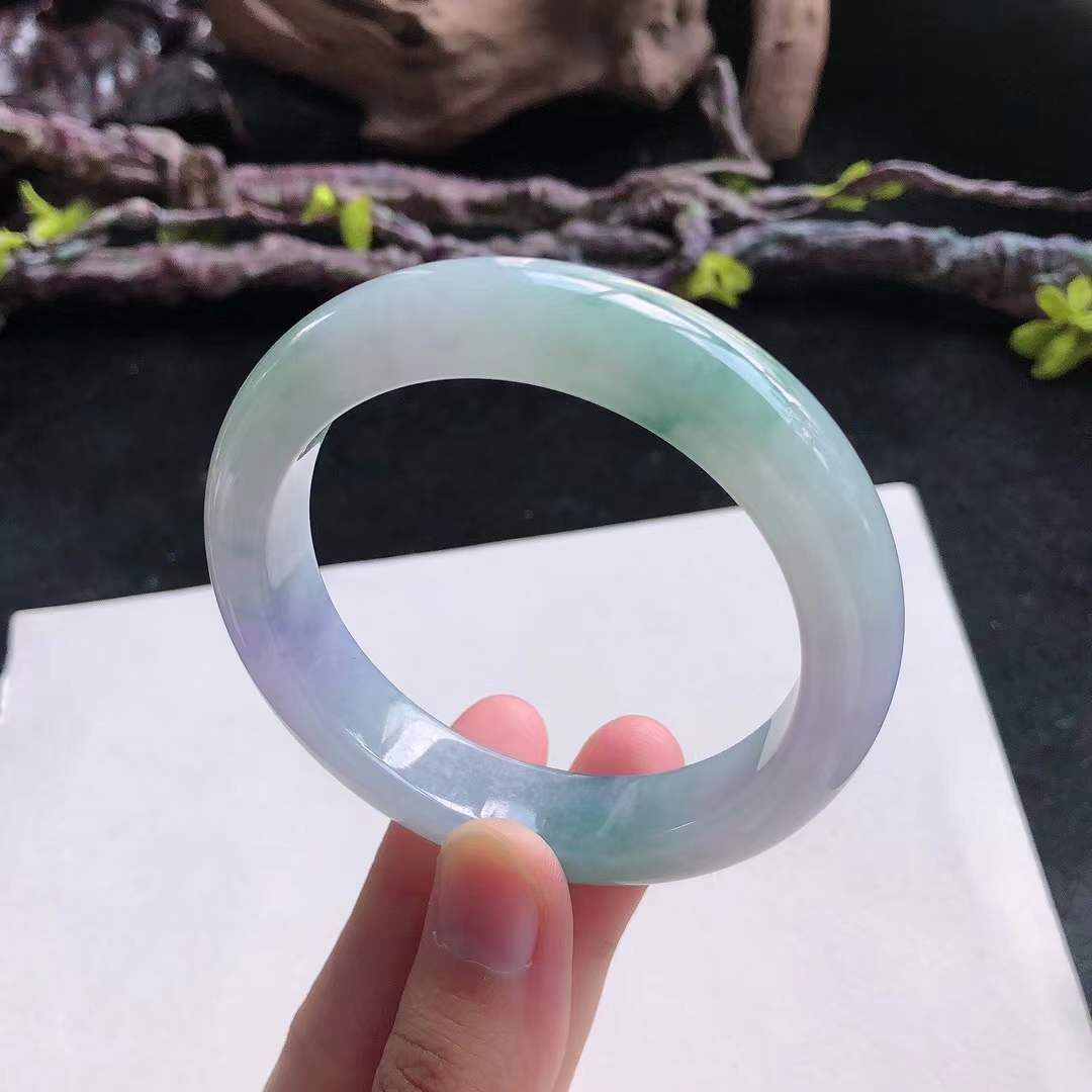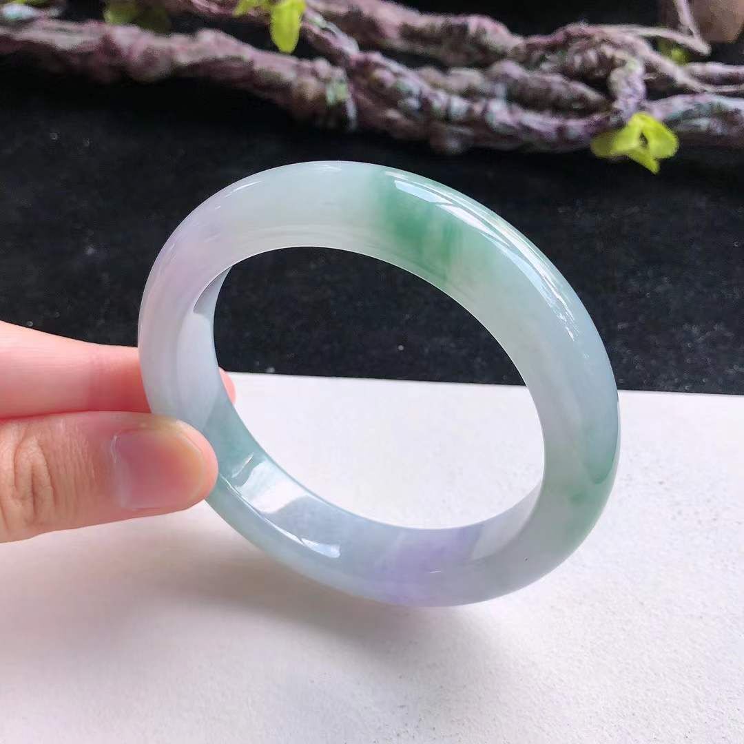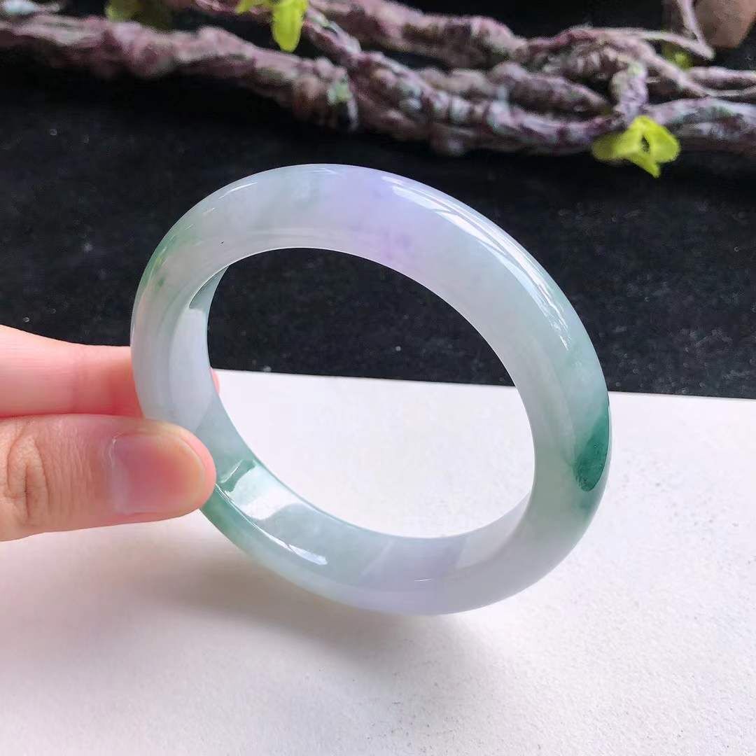 9122635 55.4mm冰糯種紫底飄綠正圈翡翠手鐲