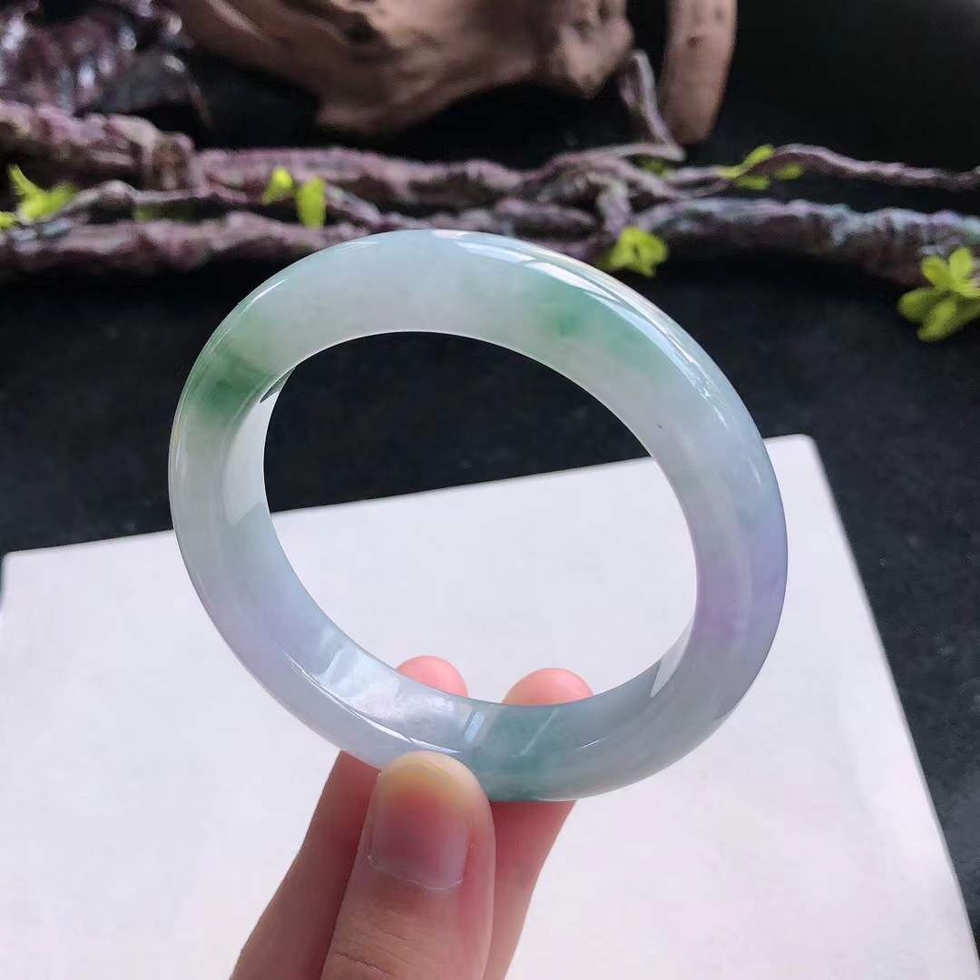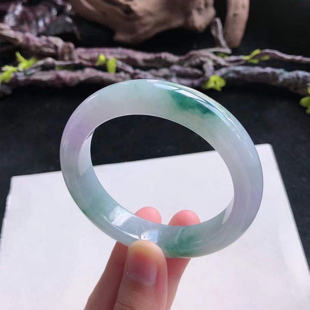 • 冰糯種紫底飄綠正圈翡翠手鐲,天然翡翠A玉, 緬甸玉, Jade, Jadeite