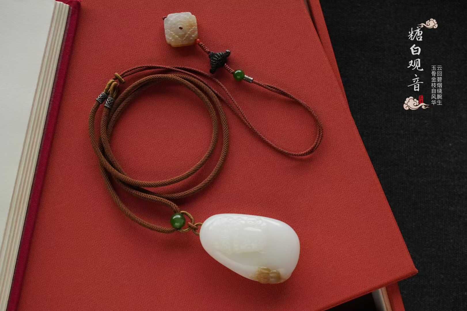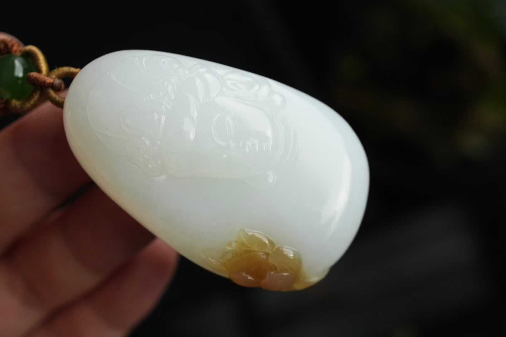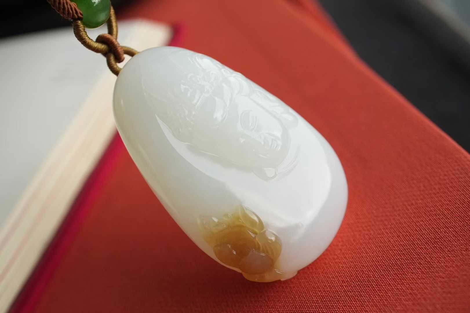 • 和田玉糖白“觀音”掛件,天然和田玉軟玉