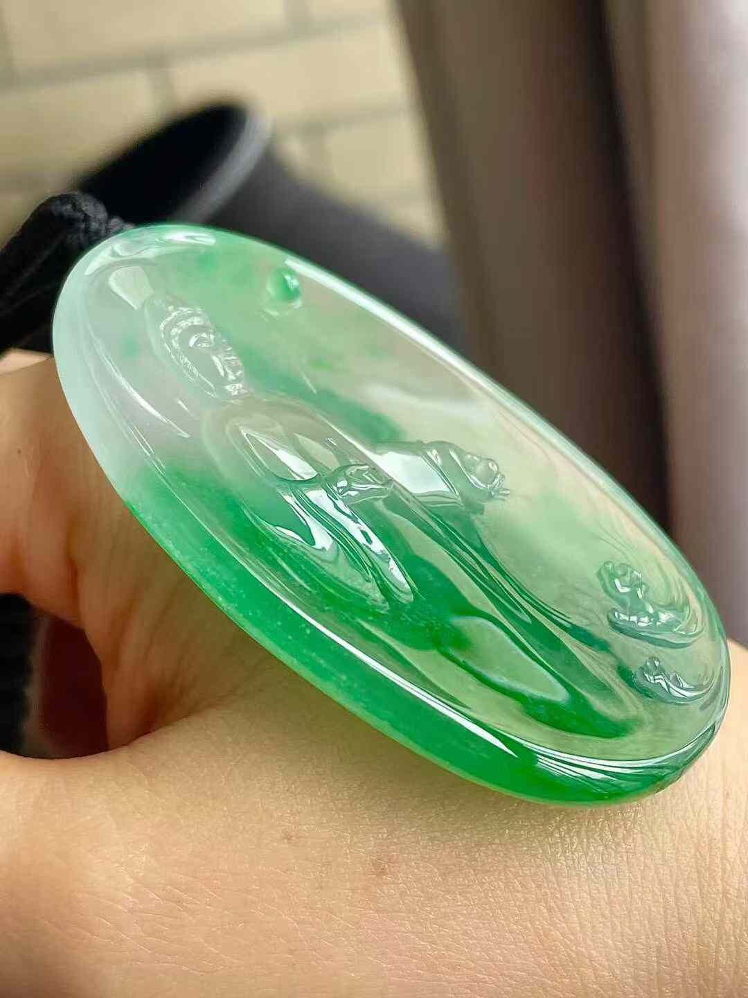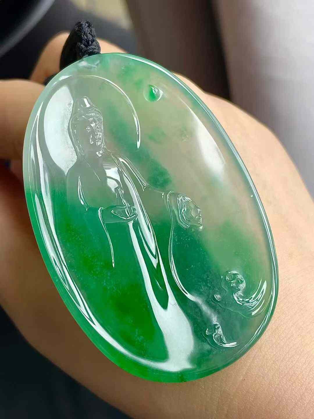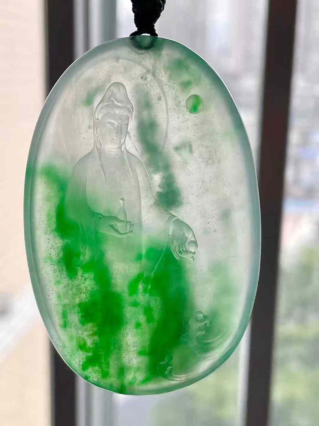 • 翡翠高冰陽綠自在觀音牌子,天然翡翠A玉, 緬甸玉, Jade, Jadeite
