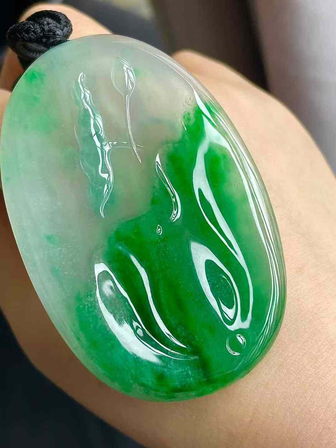 天然翡翠A玉,緬料,無紋無裂,雕工精細,色澤艷麗。