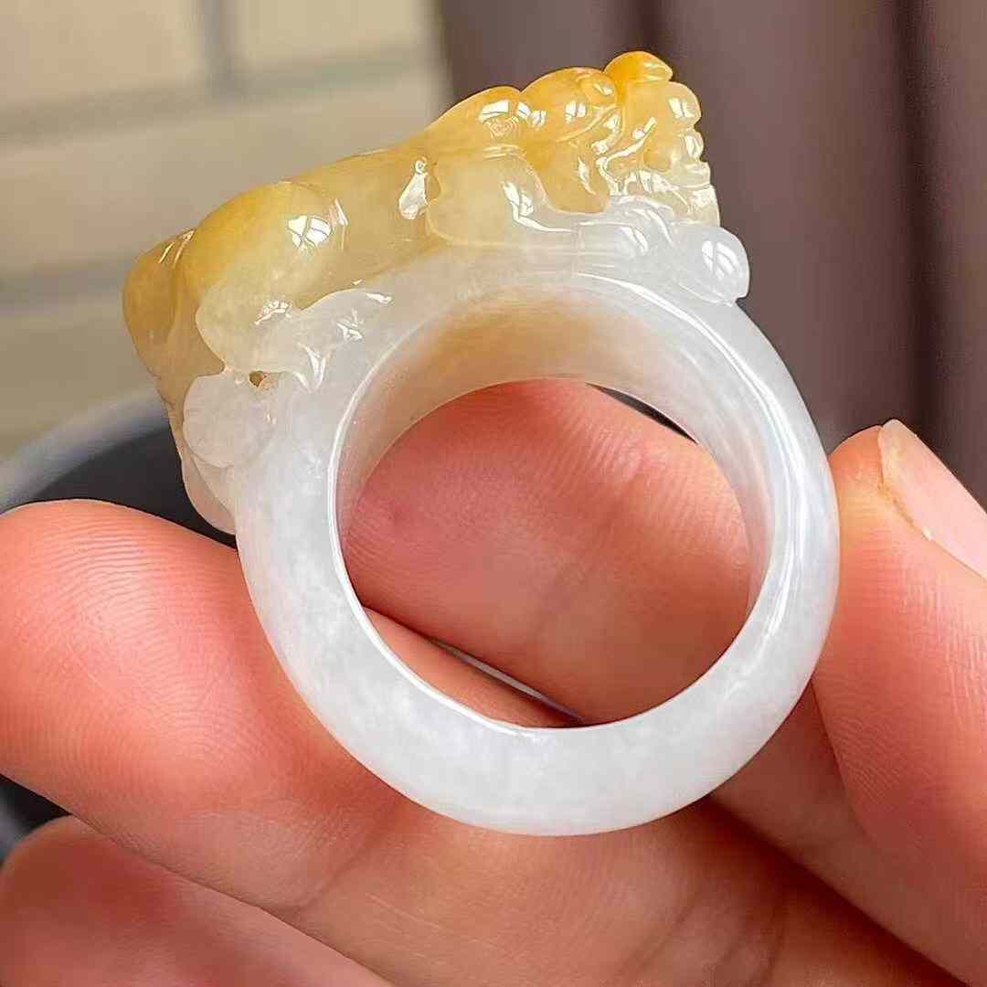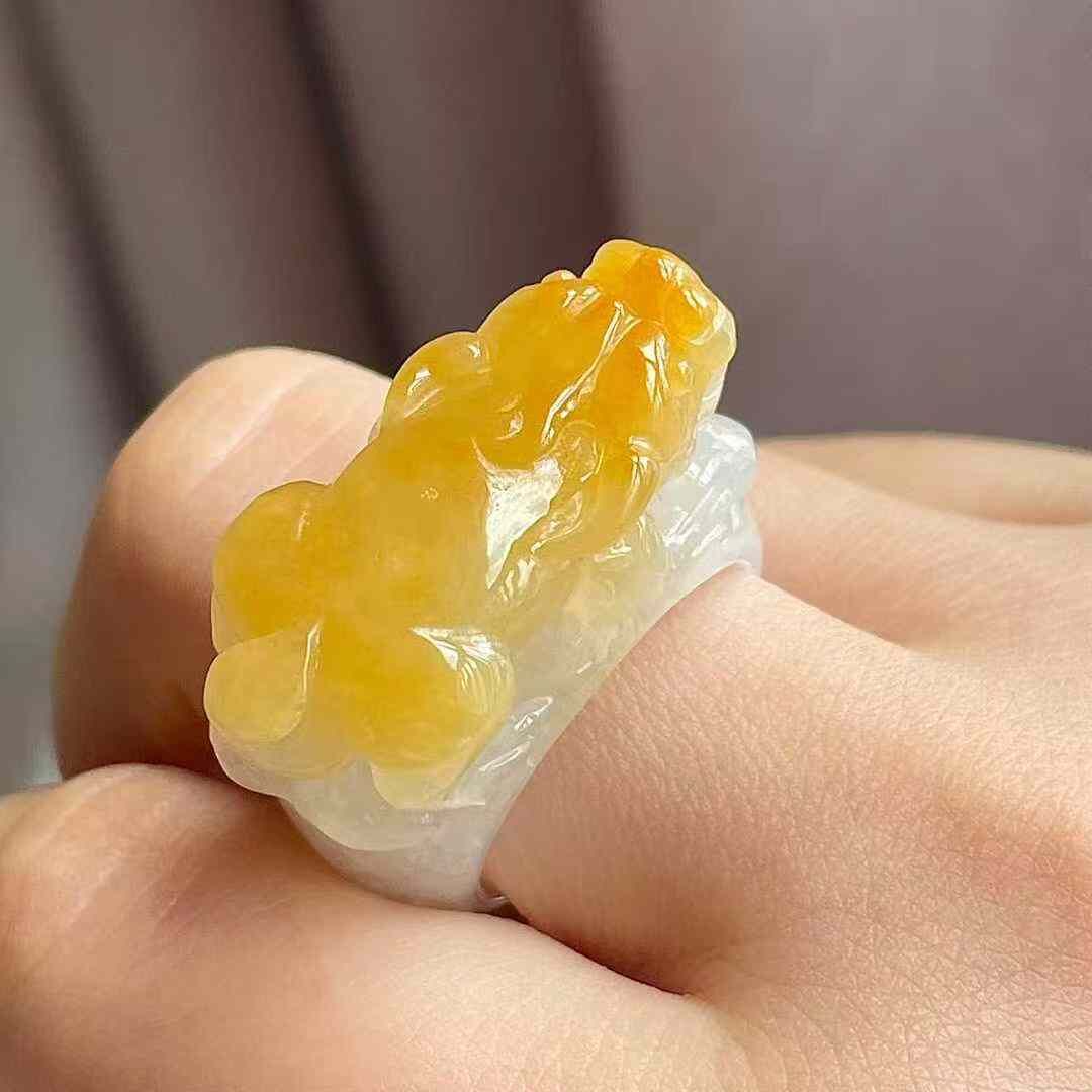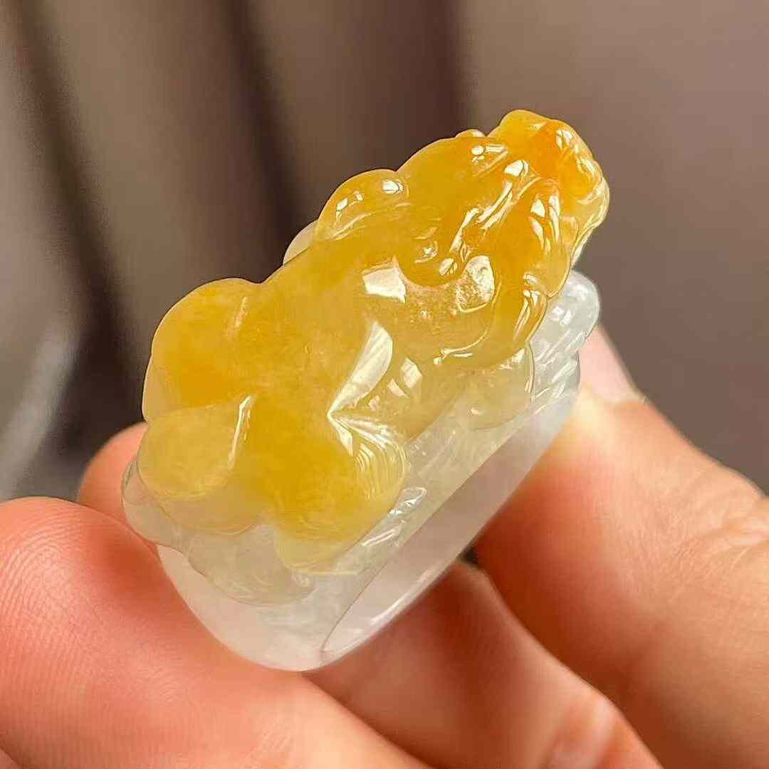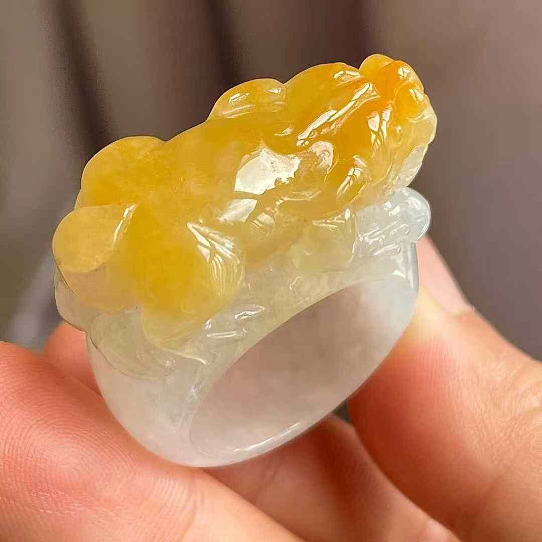 • 翡翠冰種黃貔貅扳指 (港圈 20號),天然翡翠A玉, 緬甸玉, Jade, Jadeite