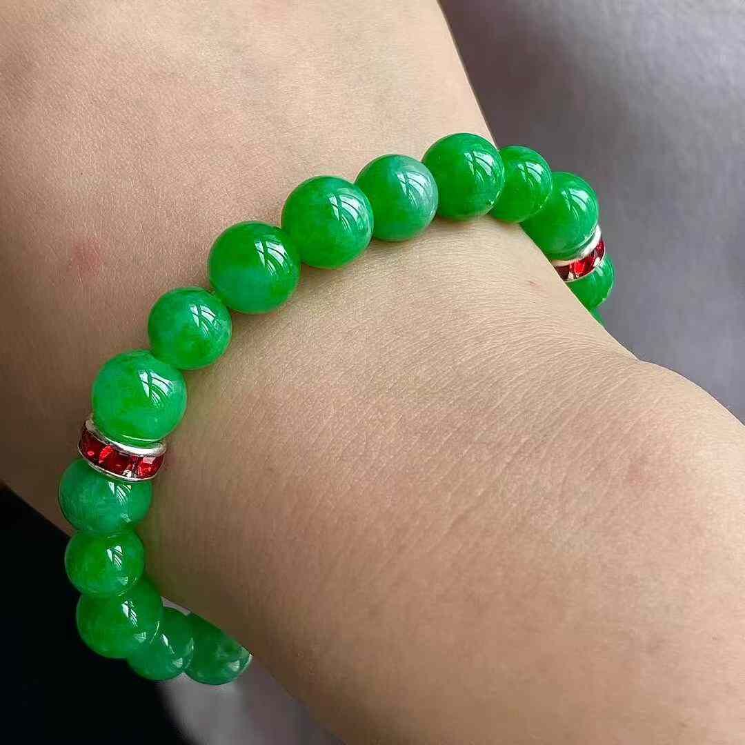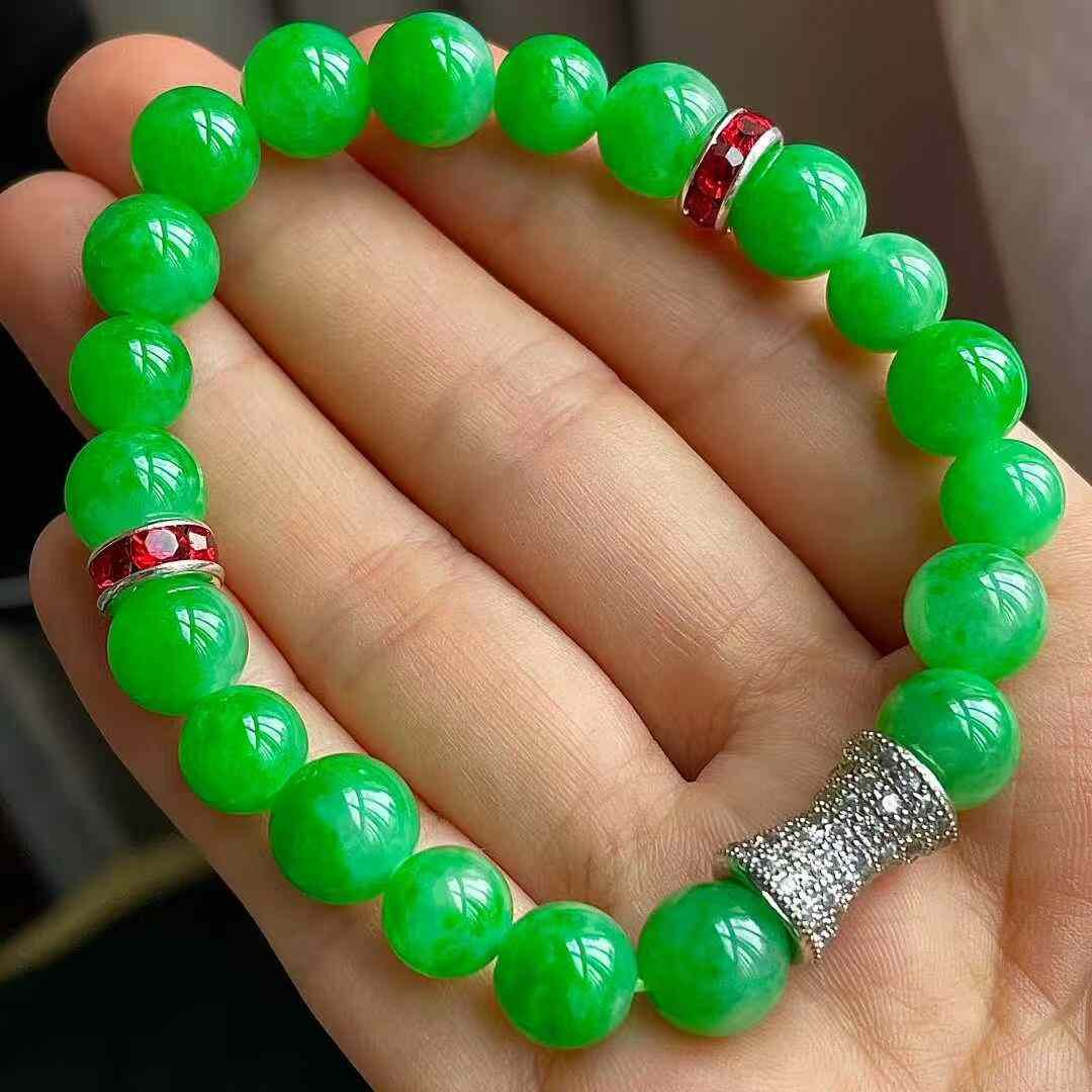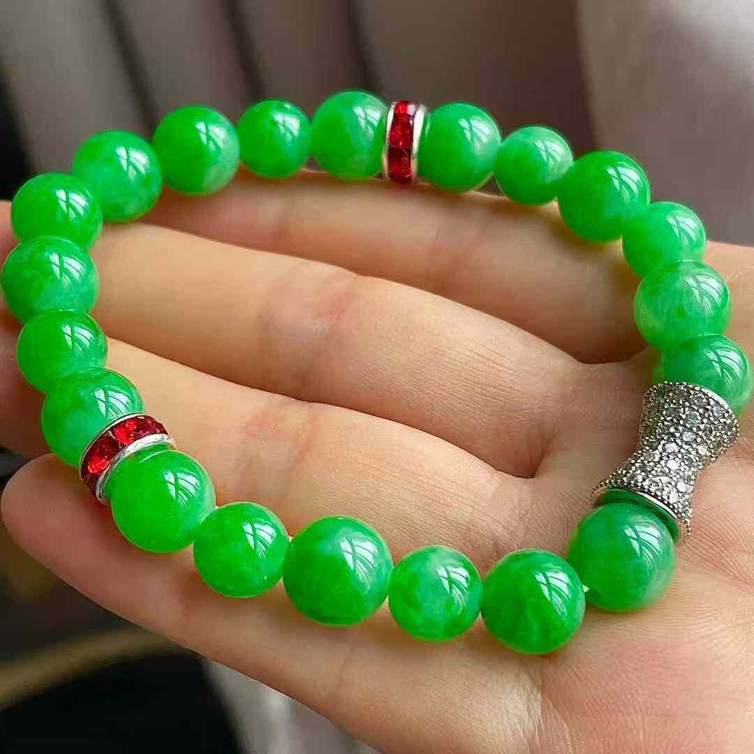 9125551 翡翠冰種陽綠手串