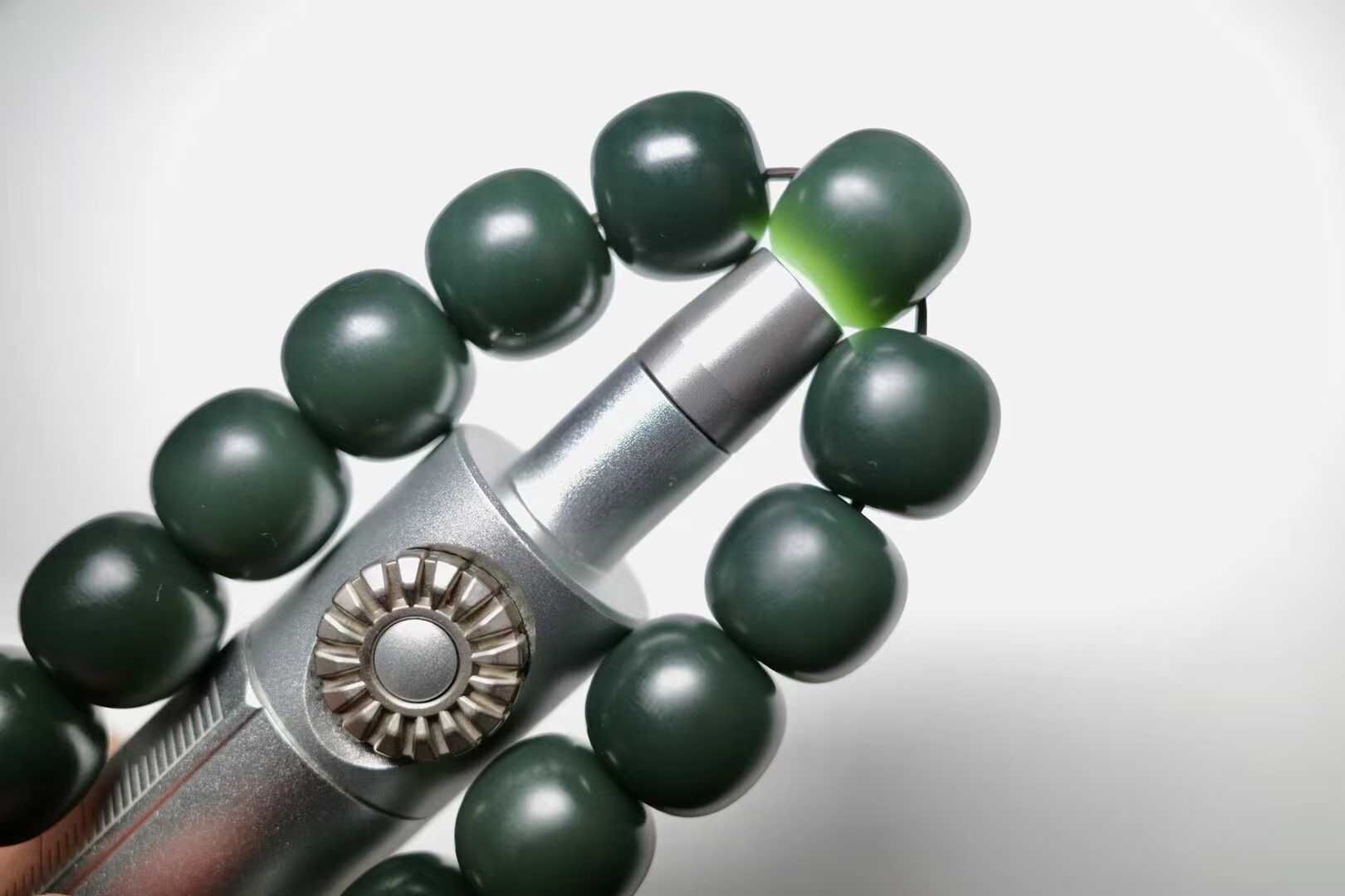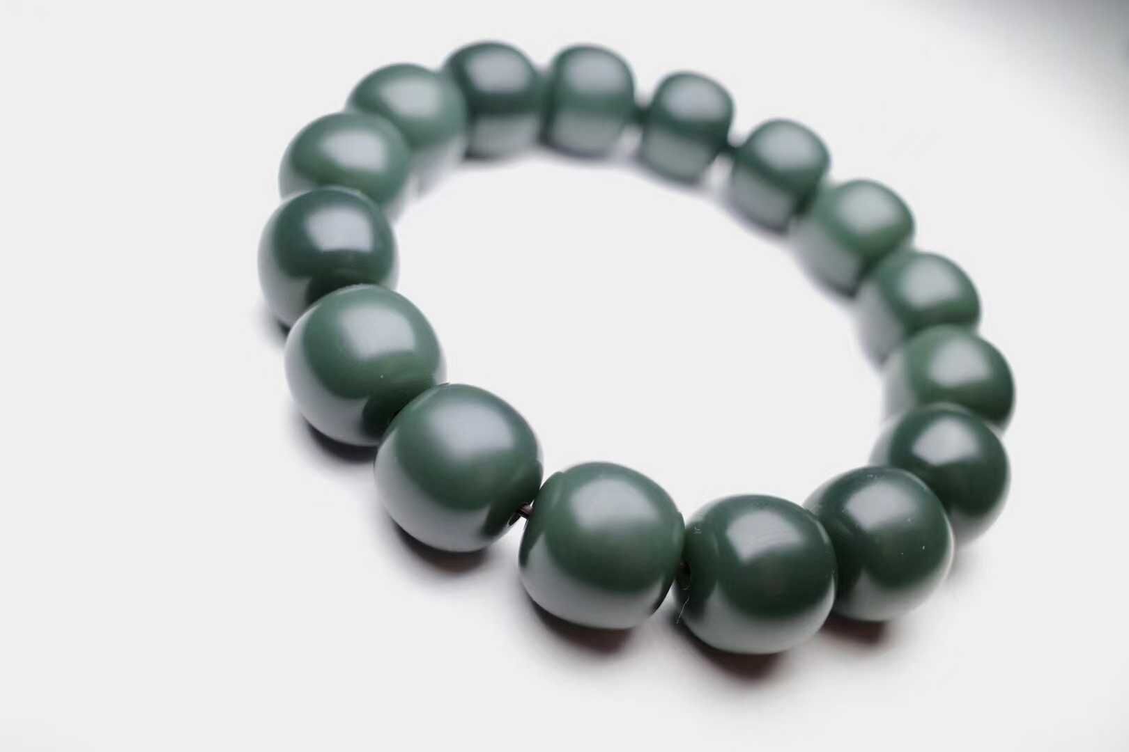 稀有頂級和田玉藍調塔青,新疆和田玉藍調塔青精工手串,頂級細料,看打燈藍色底,顏色艷麗討喜,顆顆完美過燈,珠體飽滿圓潤,完美歸圓。收藏級精品手串!