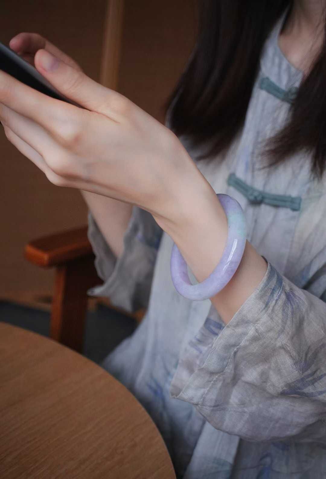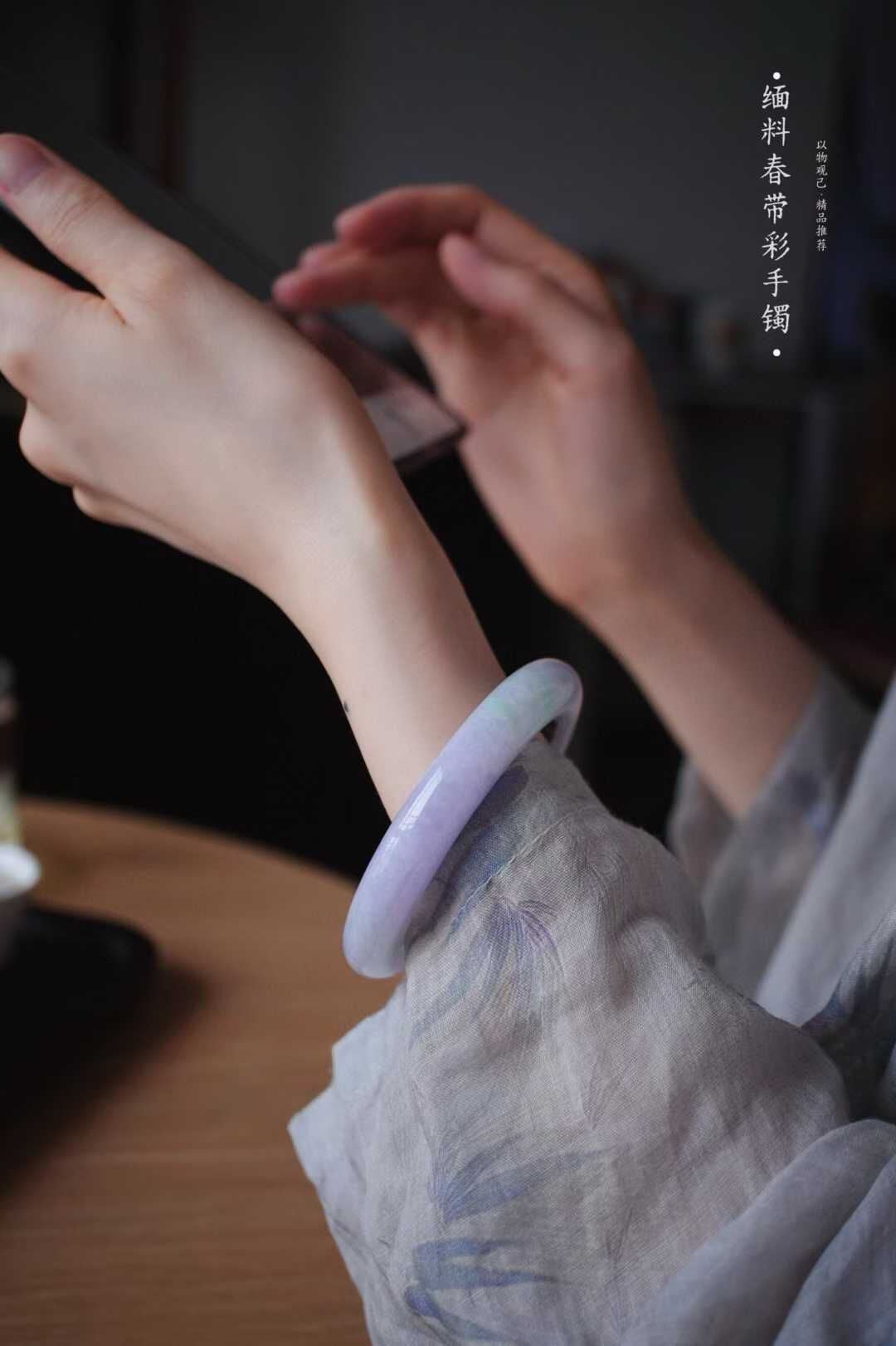 天然翡翠A玉,緬料老坑種,紫地溫婉仙氣,柔柔的很美,飄陽綠鮮嫩清新,十分吸睛,整體冰冰潤潤,給人春天般的溫暖感,佩戴上手溫婉動人,優雅大方,完美品相。