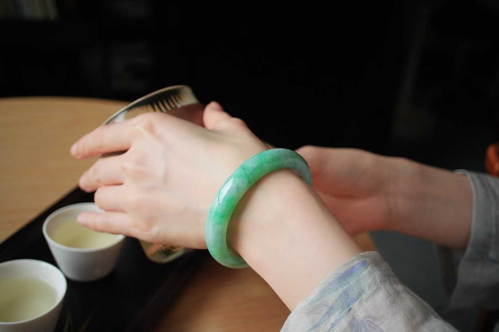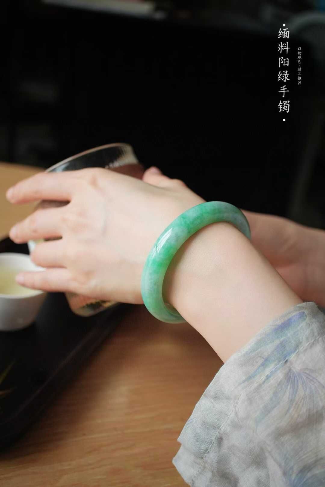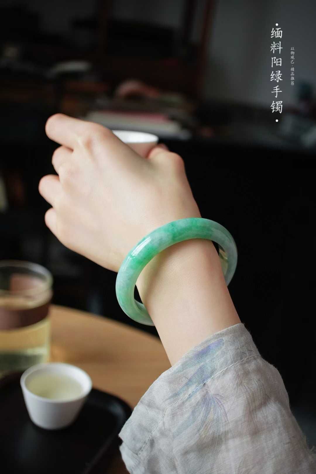 我們這一手果陽綠手鐲真的太優秀了,整條近乎滿色,果綠底+飄陽綠,有水頭的綠,完美品相,性價比太高,強烈推薦。