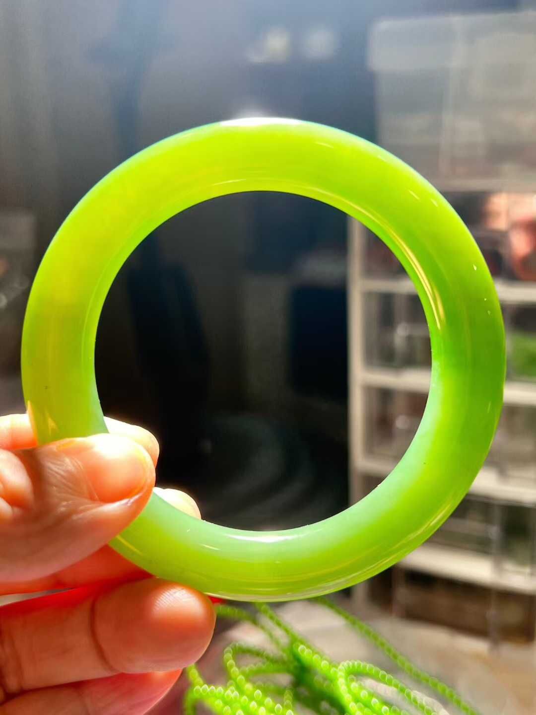 9148 54mm和田玉碧玉粉綠貓眼圓條手鐲