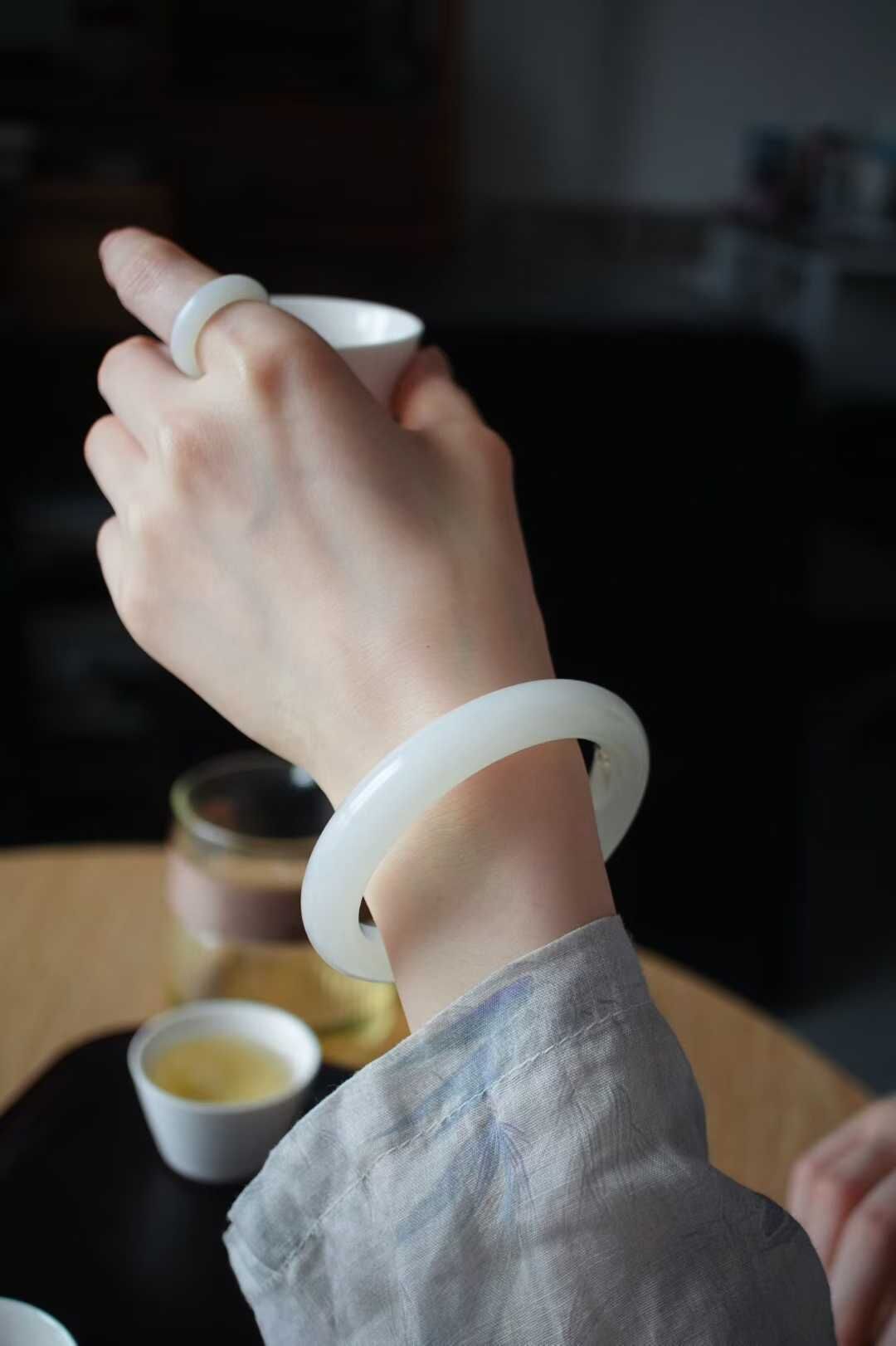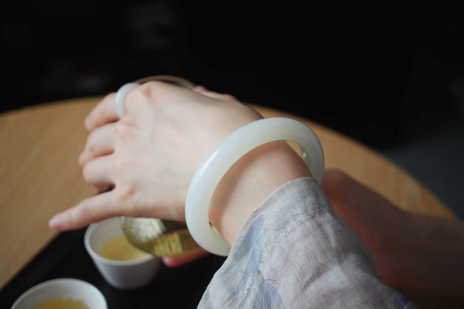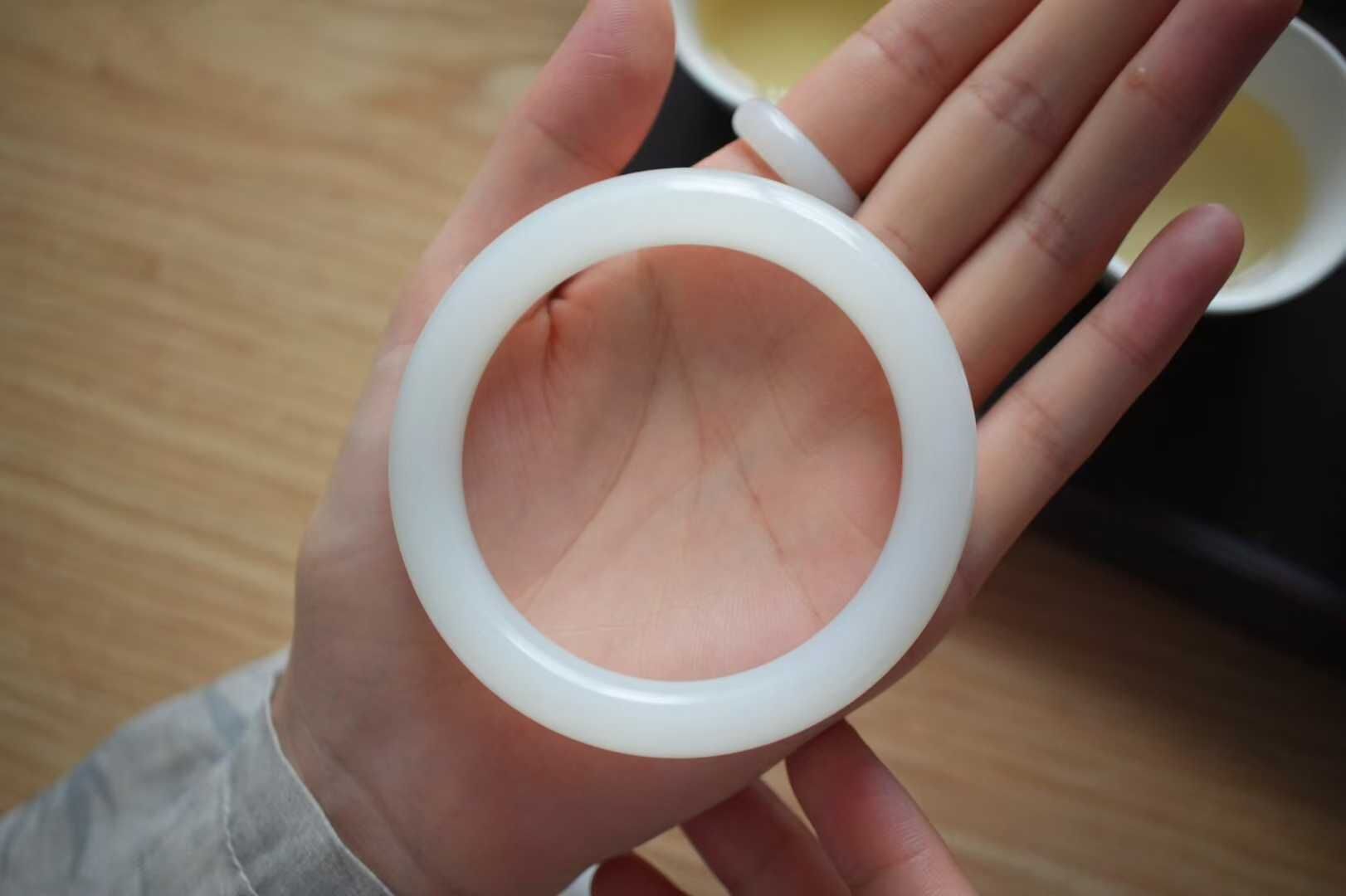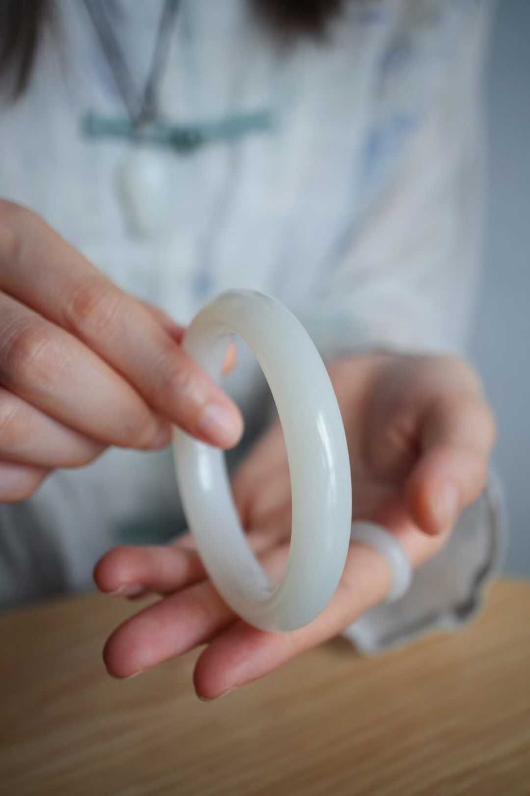 • 和田玉羊脂玉平安鐲,天然和田玉軟玉