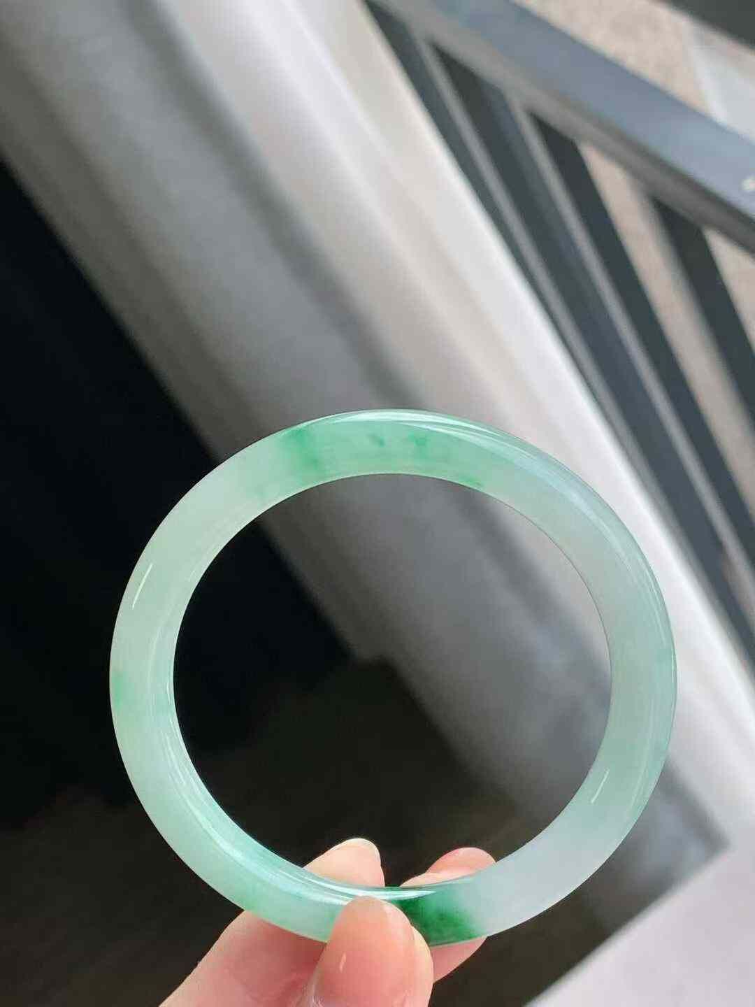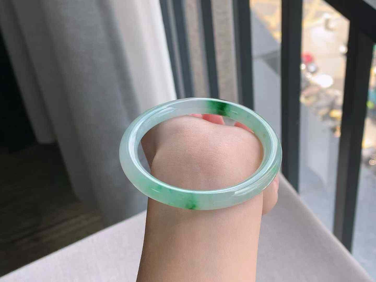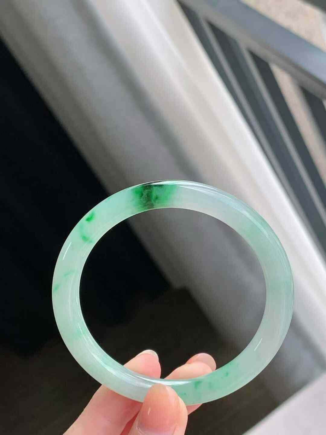 • 冰飄陽綠圓條翡翠手鐲,天然翡翠A玉, 緬甸玉, Jade, Jadeite