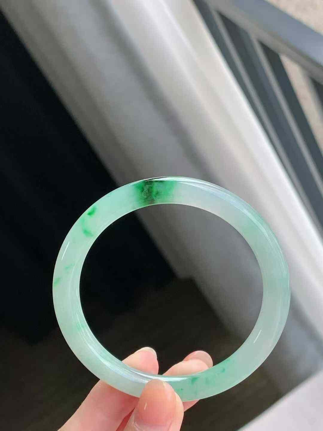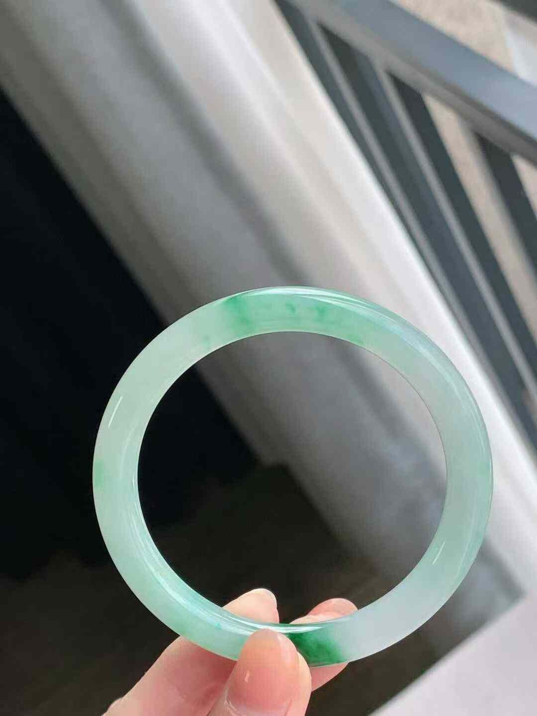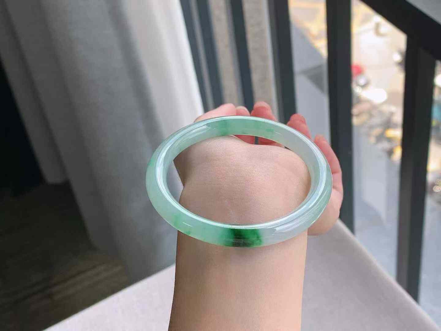 • 冰飄陽綠圓條翡翠手鐲,天然翡翠A玉, 緬甸玉, Jade, Jadeite