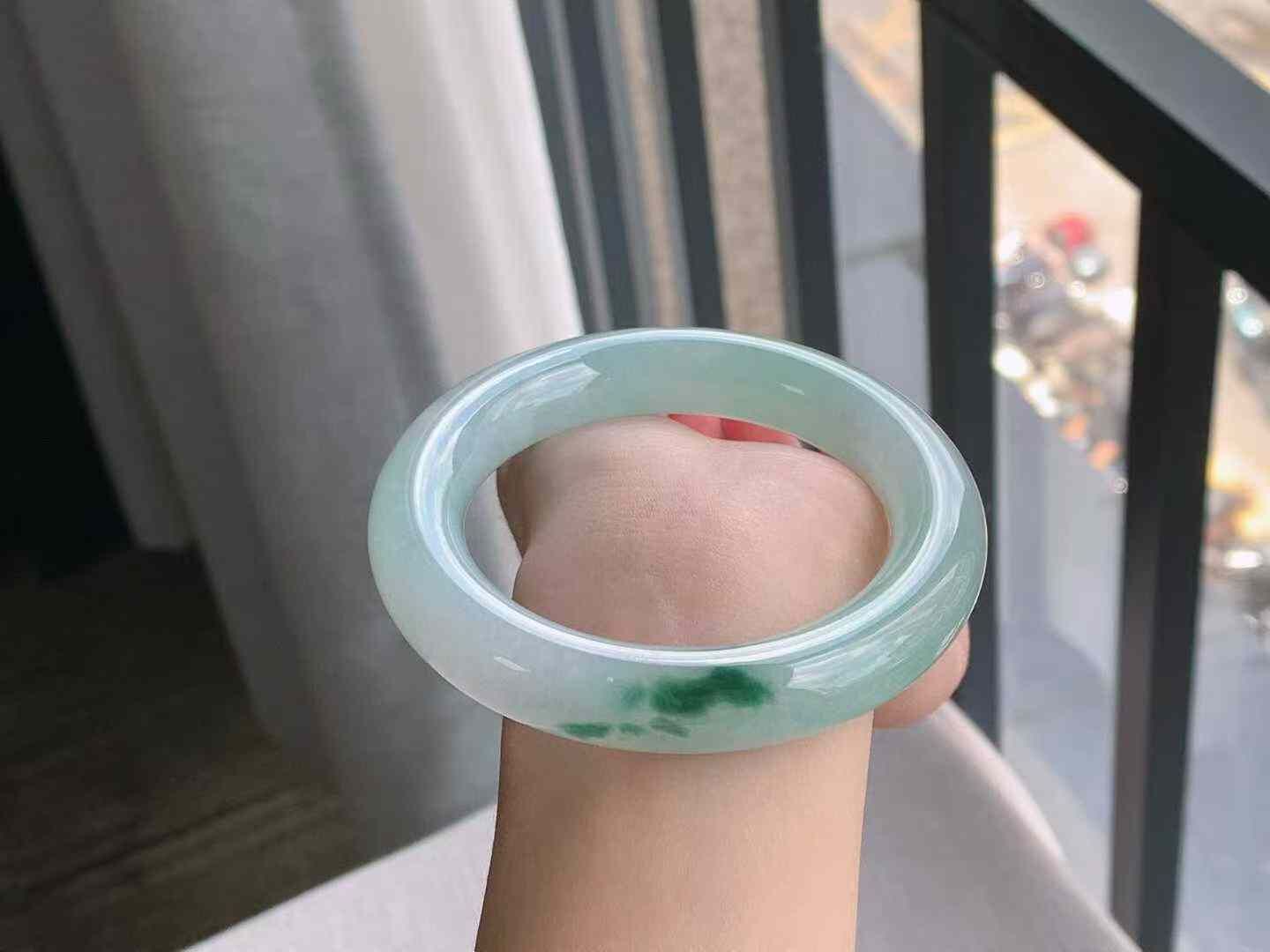 • 冰飄花圓條翡翠手鐲,天然翡翠A玉, 緬甸玉, Jade, Jadeite
