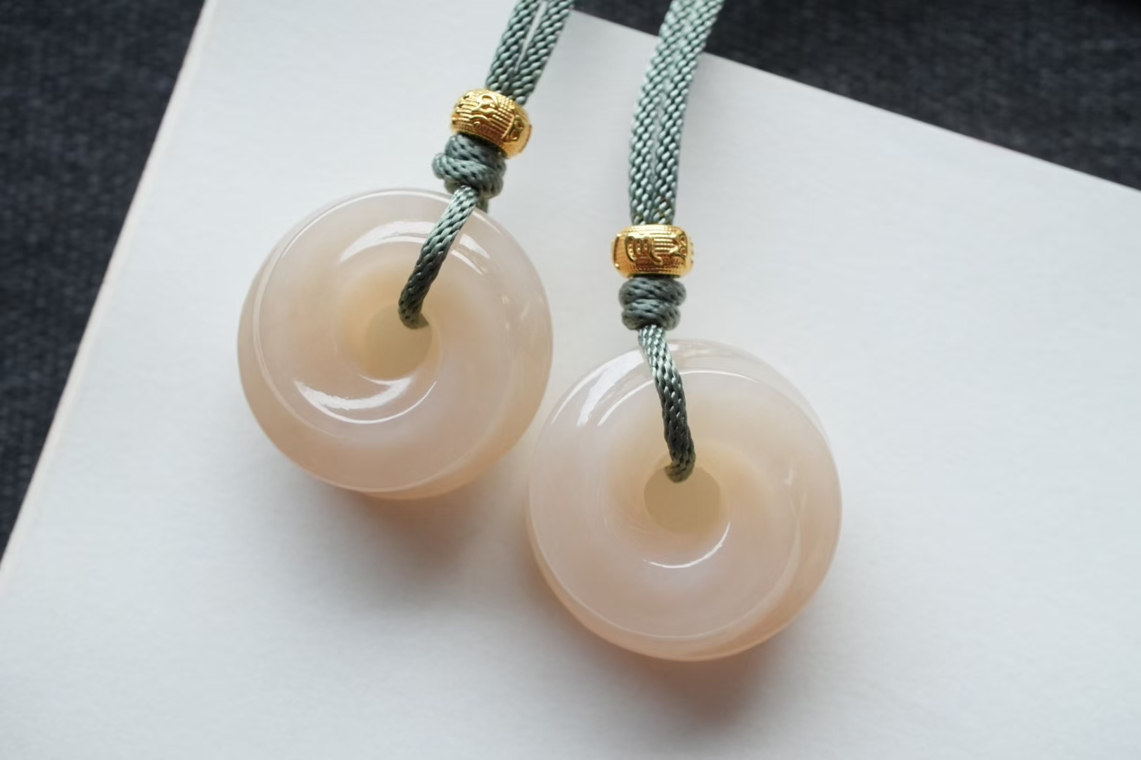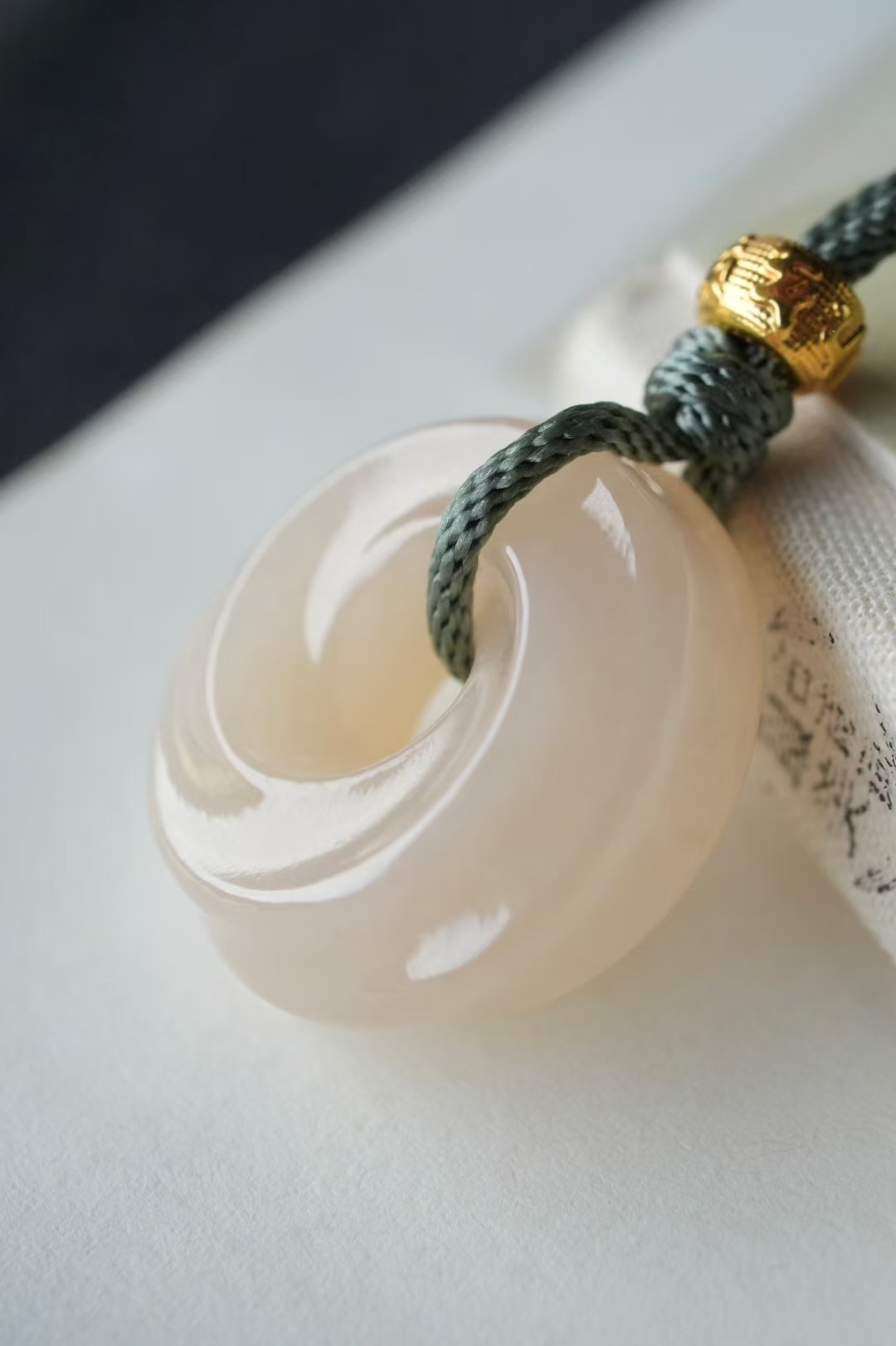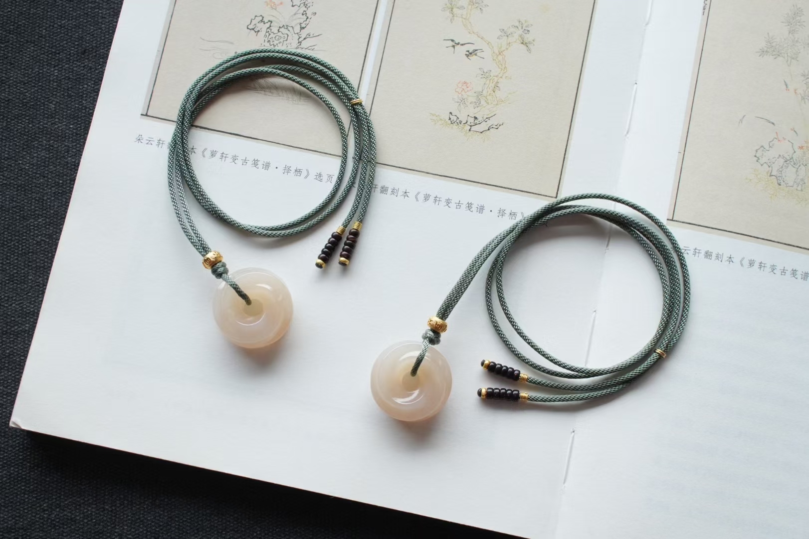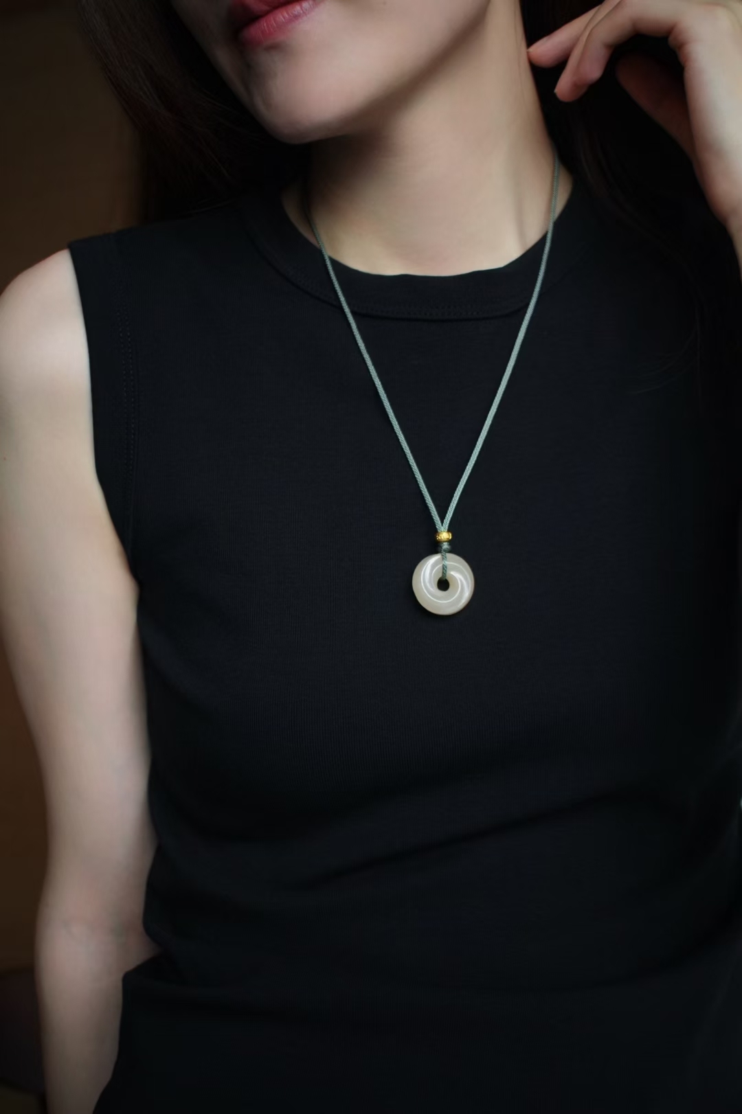 底子細膩油潤,色澤柔雅均勻,顯白又氣質,油性非常好,無棉無水線,無雜裂完美品相,線條流暢飽滿,豐腴又溫柔,寓意生生不息。搭配純手工製作繩,點綴18K金六字箴言,尾部用18k金圈圈固定,通體金屬均為18k金,低調又有韻味,不喧嘩卻自帶貴氣!
