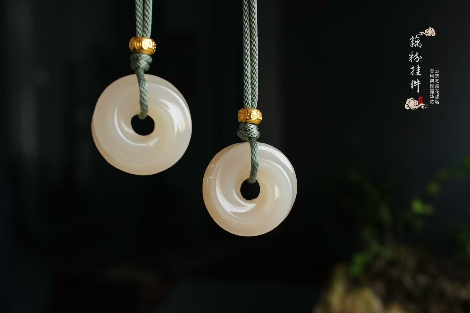 920412 和田玉藕粉“莫比烏斯環”掛件