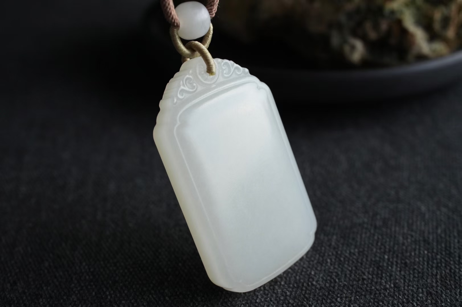 • 和田玉藕白平安無事牌掛件,天然和田玉軟玉