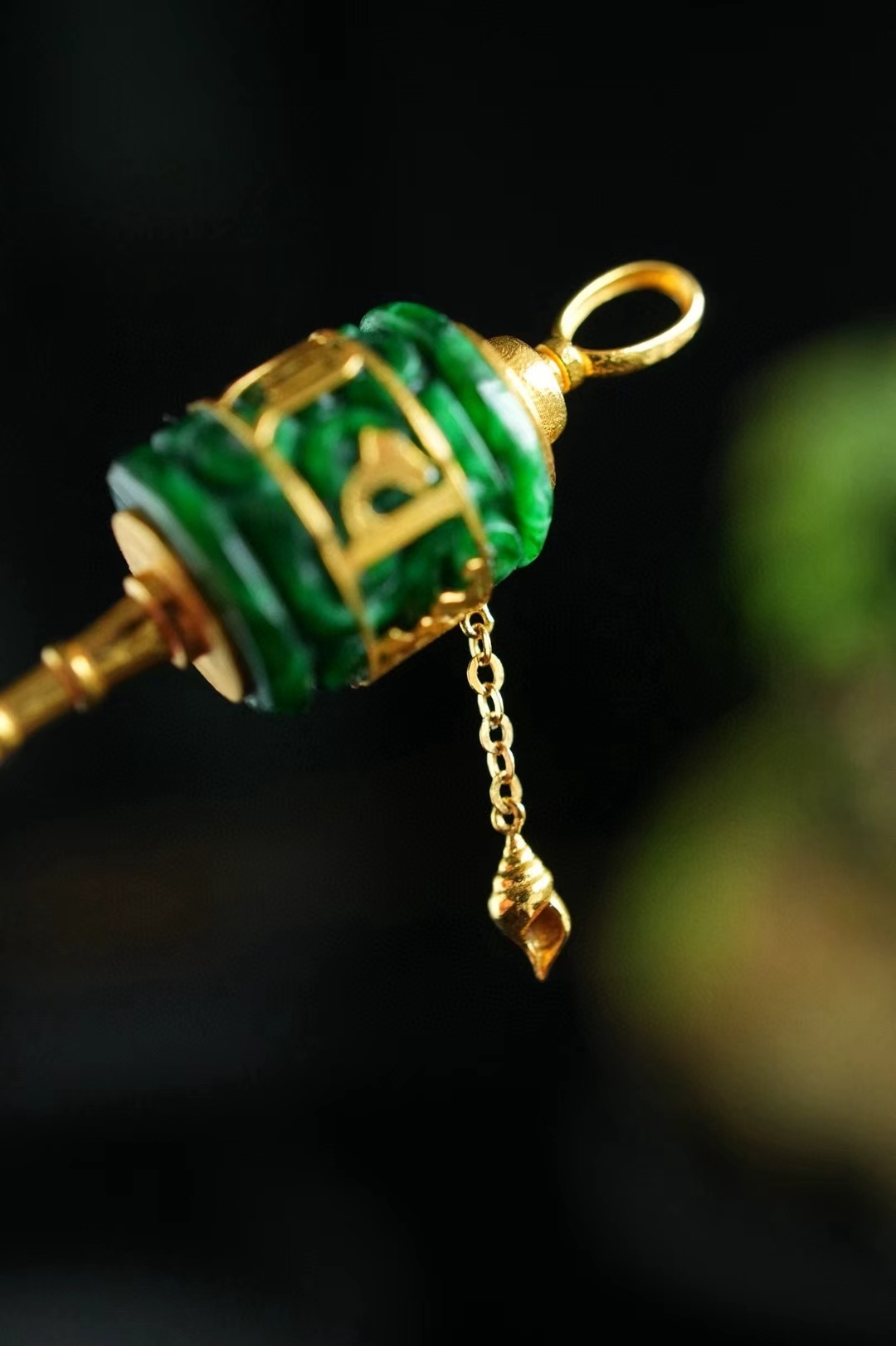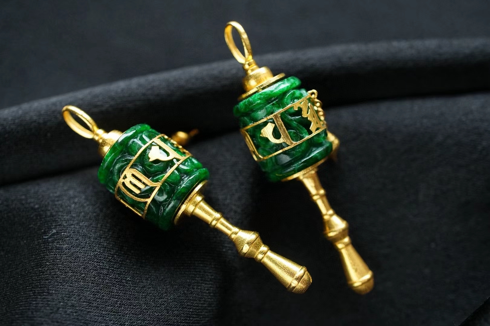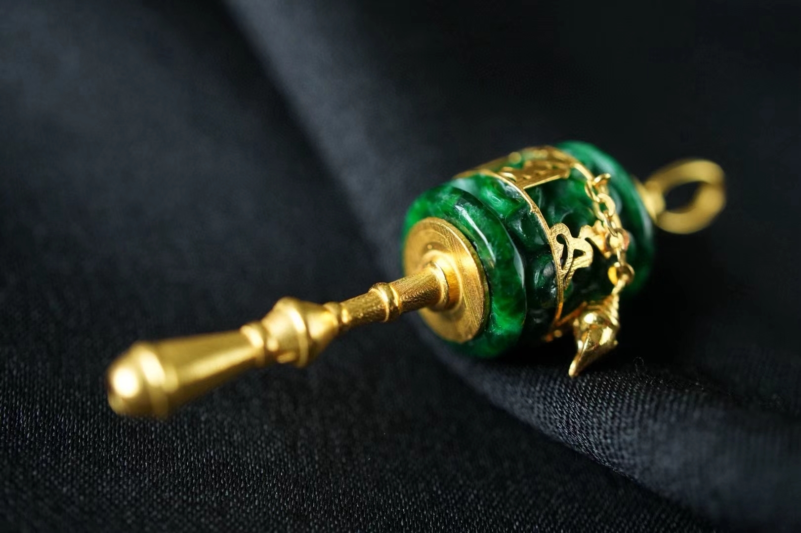 • 翡翠“轉經筒”桶珠吊墜,天然翡翠A玉, 緬甸玉, Jade, Jadeite