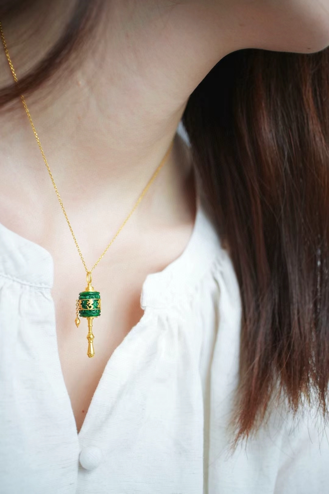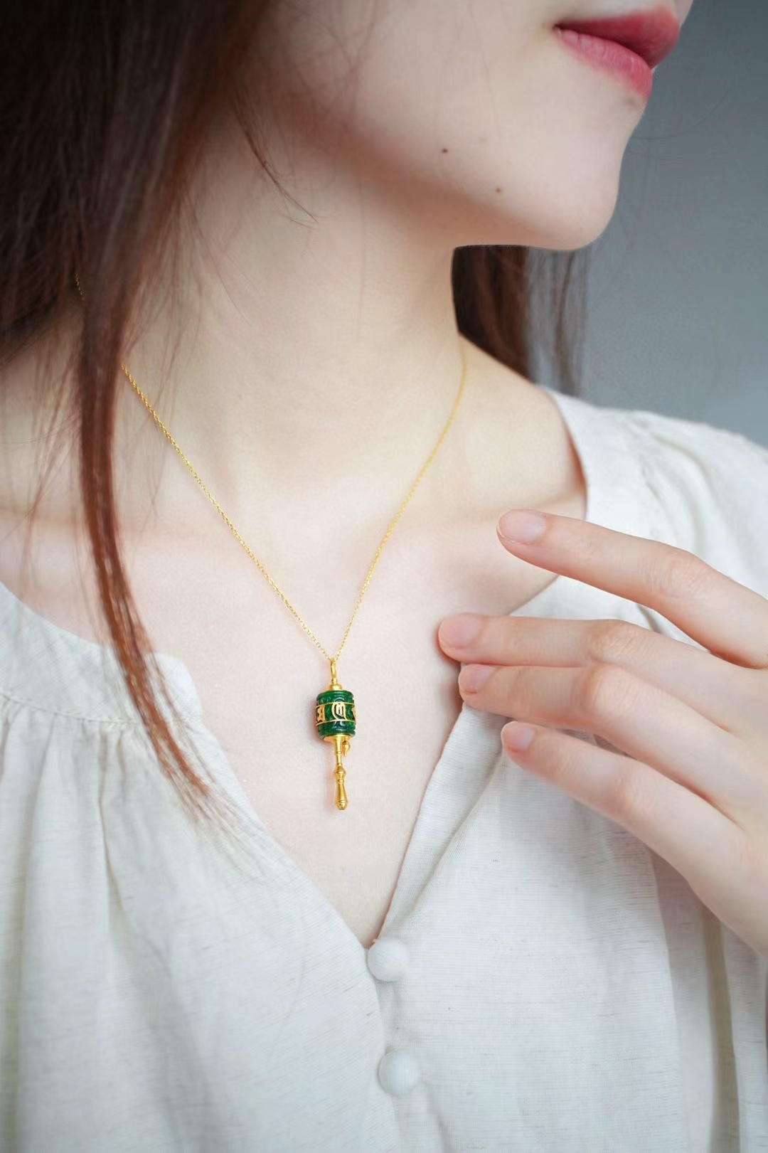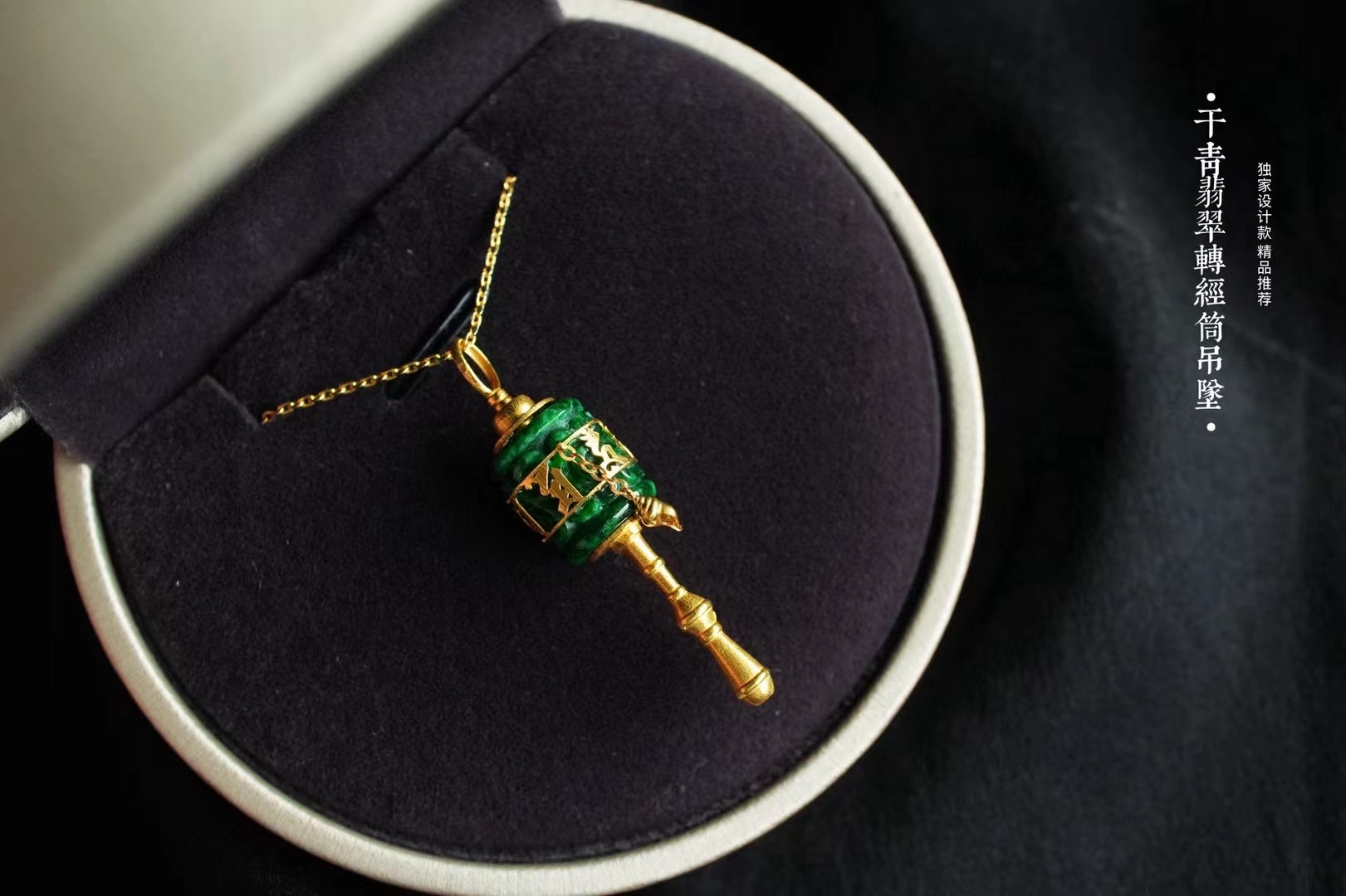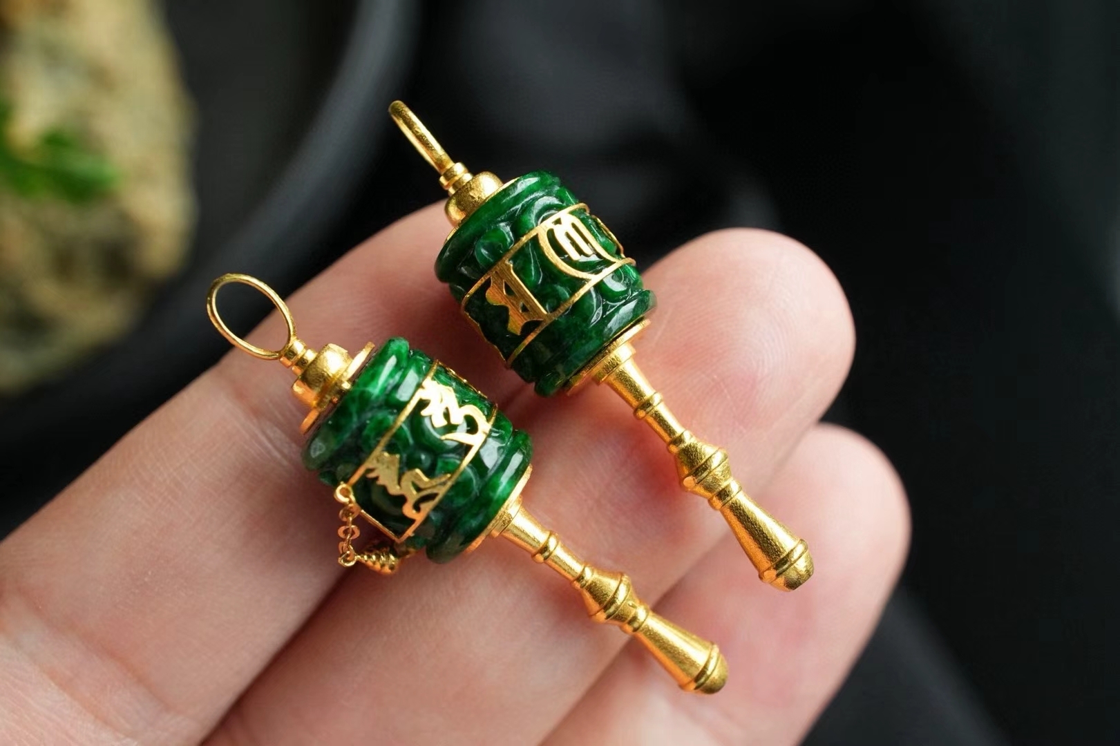 • 翡翠“轉經筒”桶珠吊墜,天然翡翠A玉, 緬甸玉, Jade, Jadeite