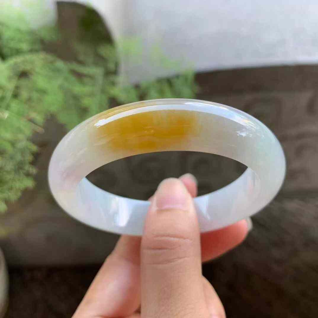 • 冰黃翡正圈翡翠手鐲,天然翡翠A玉, 緬甸玉, Jade, Jadeite
