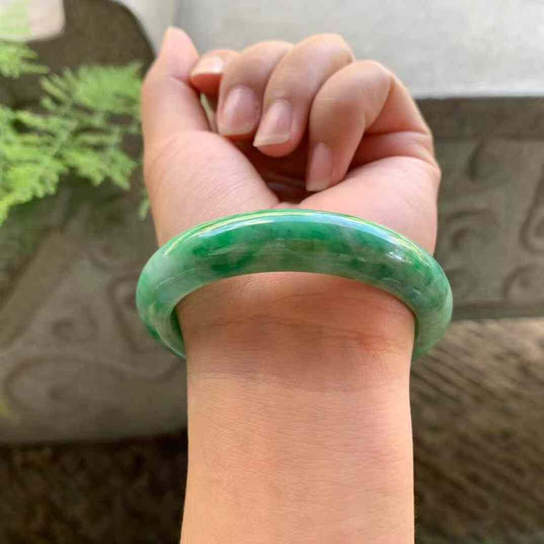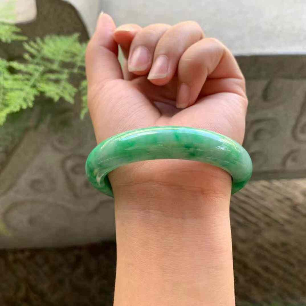 • 陽綠正圈翡翠手鐲,天然翡翠A玉, 緬甸玉, Jade, Jadeite