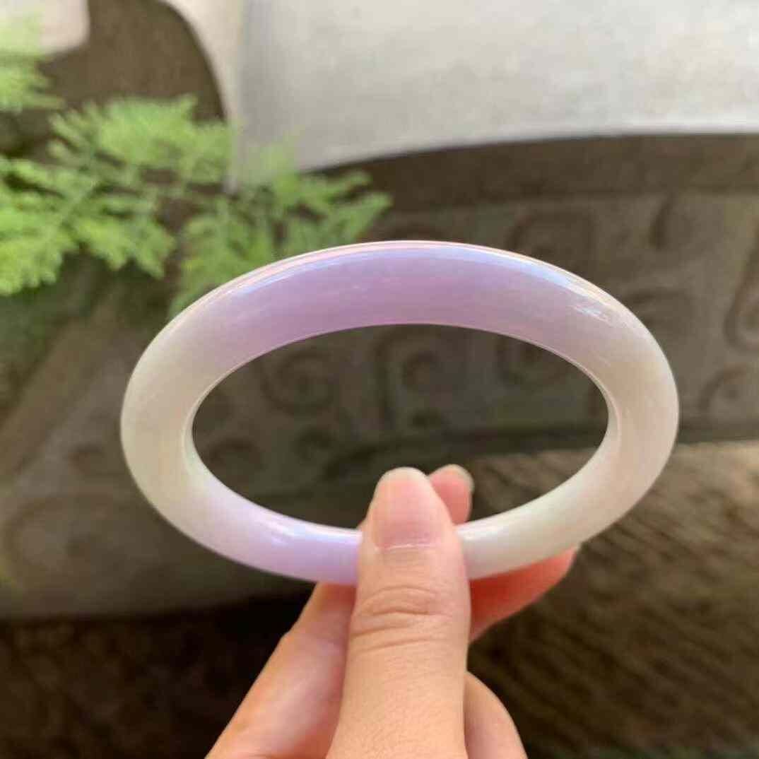 • 冰艷紫圓條翡翠手鐲,天然翡翠A玉, 緬甸玉, Jade, Jadeite