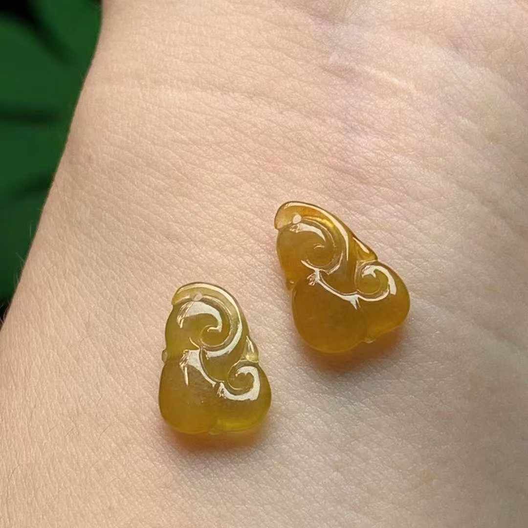• 翡翠黃翡如意一對,天然翡翠A玉, 緬甸玉, Jade, Jadeite