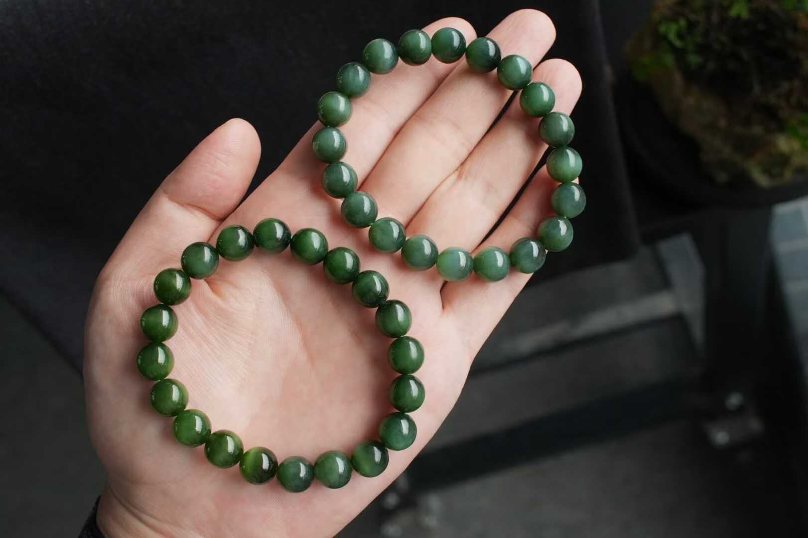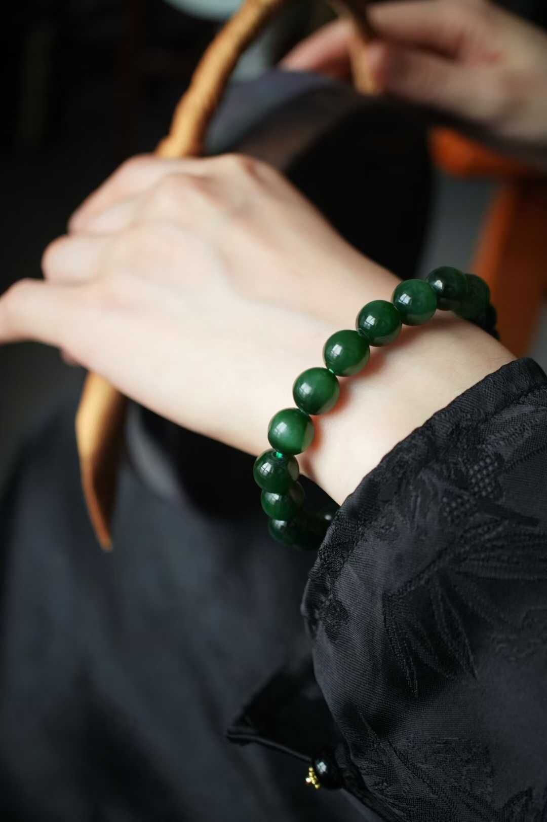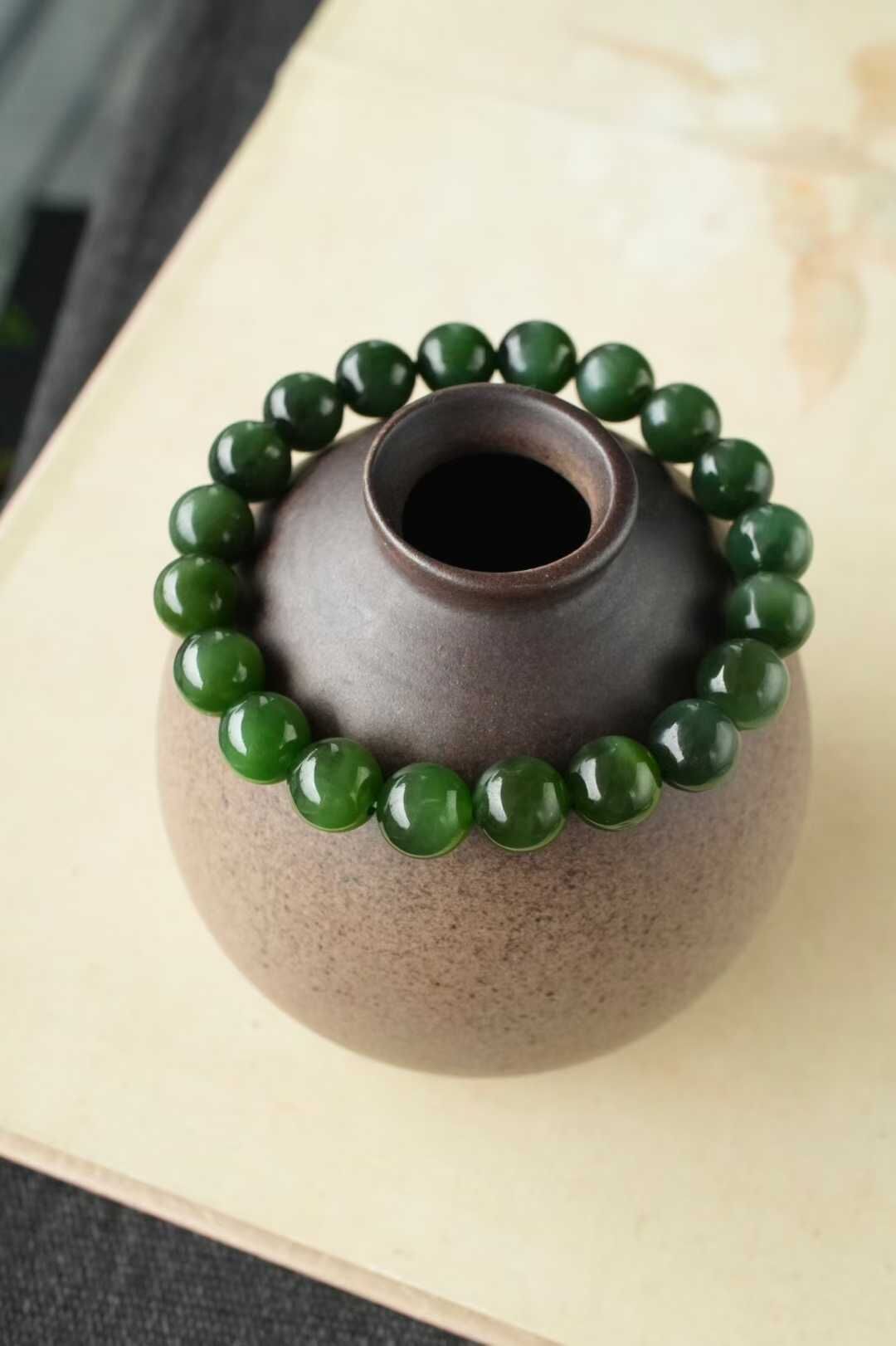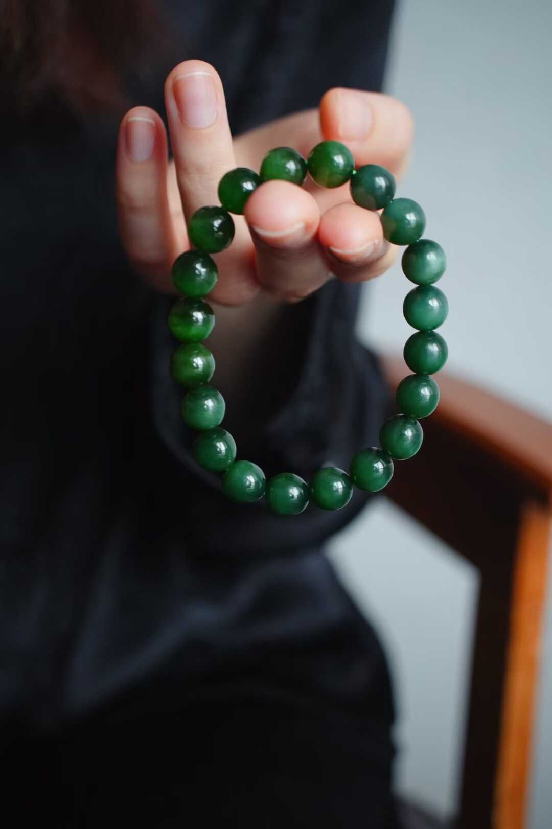 • 和田玉特色黑貓碧玉手串 (9-9.5mm直徑),天然和田玉軟玉