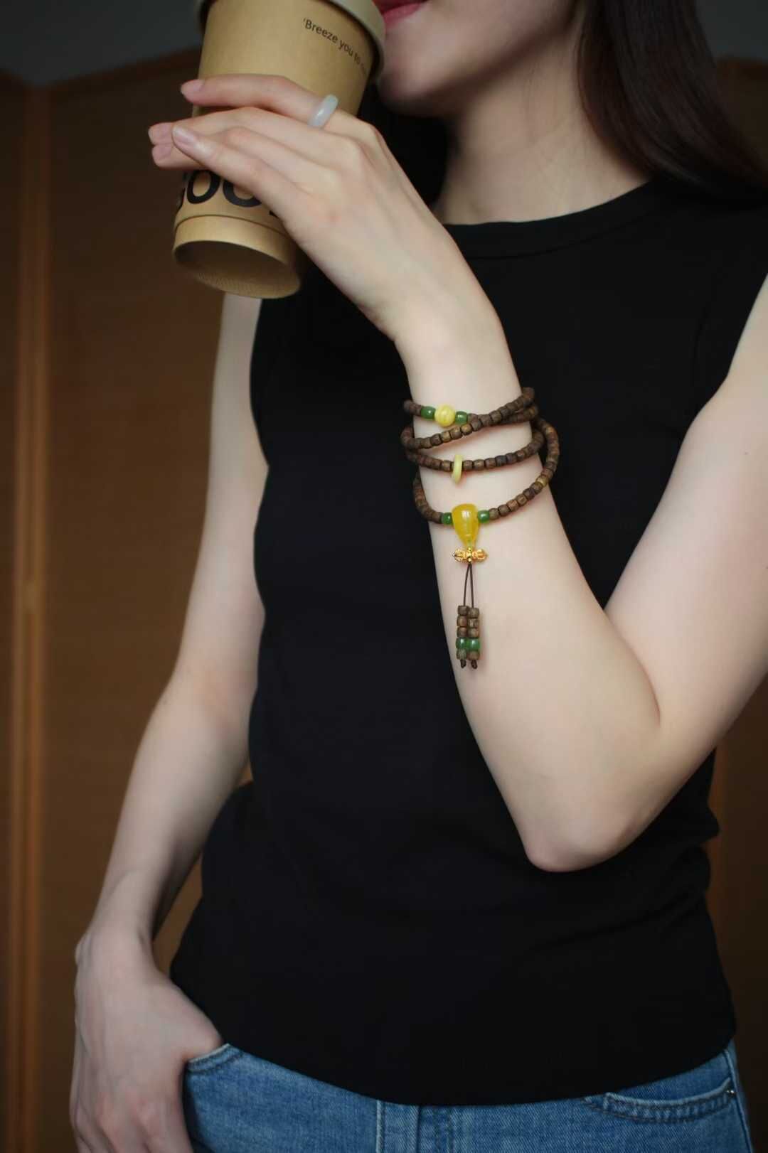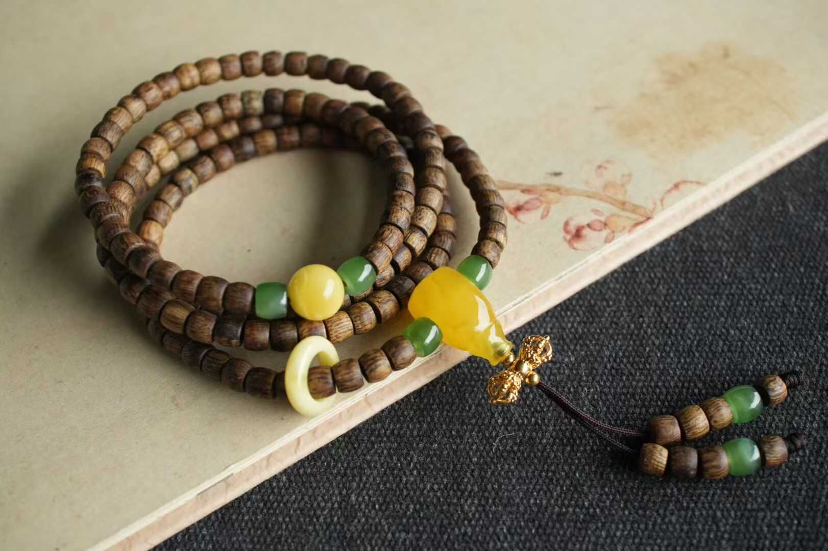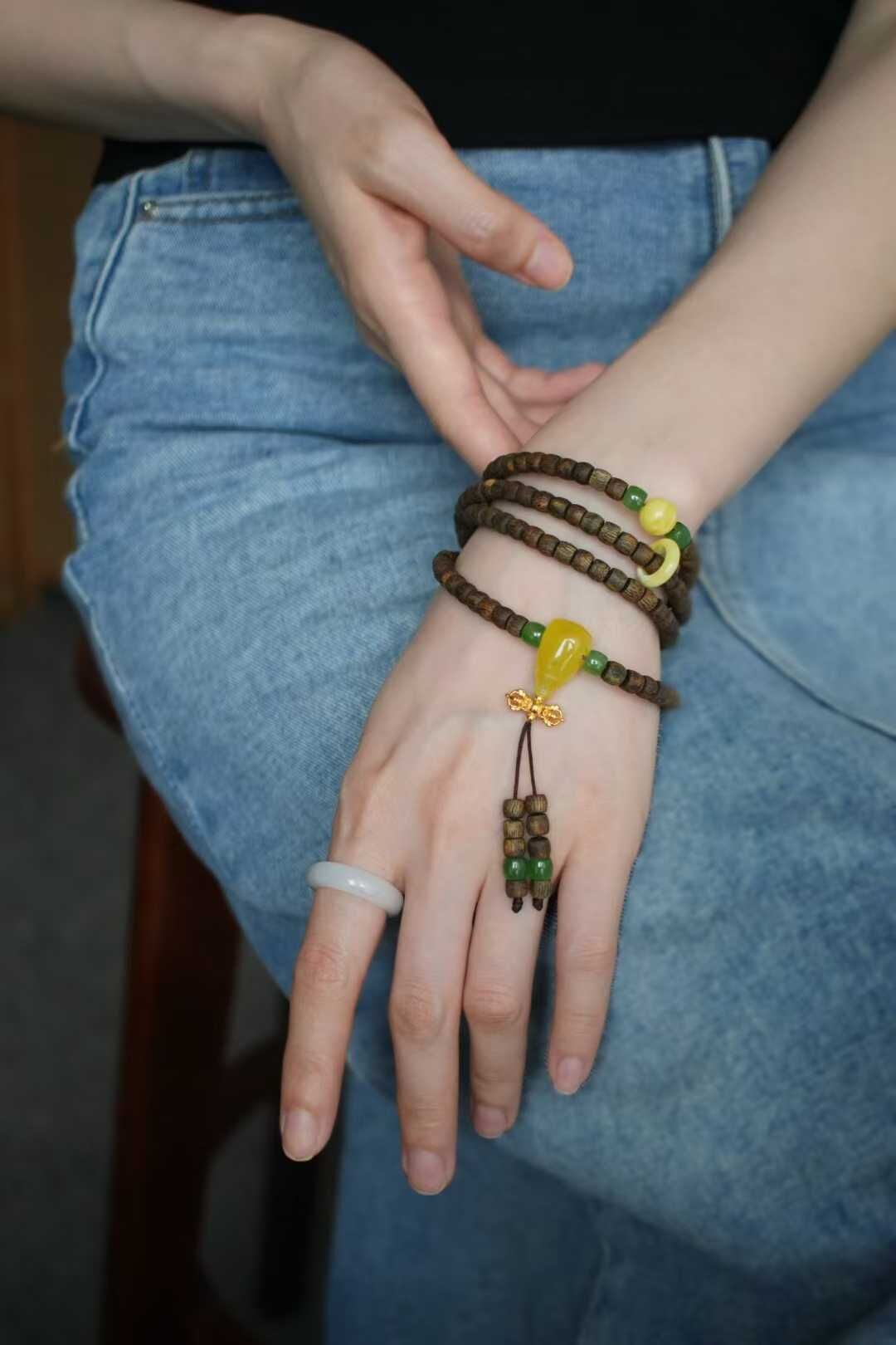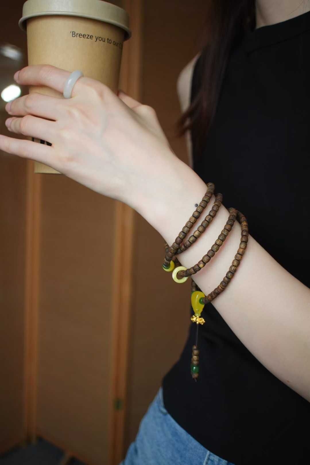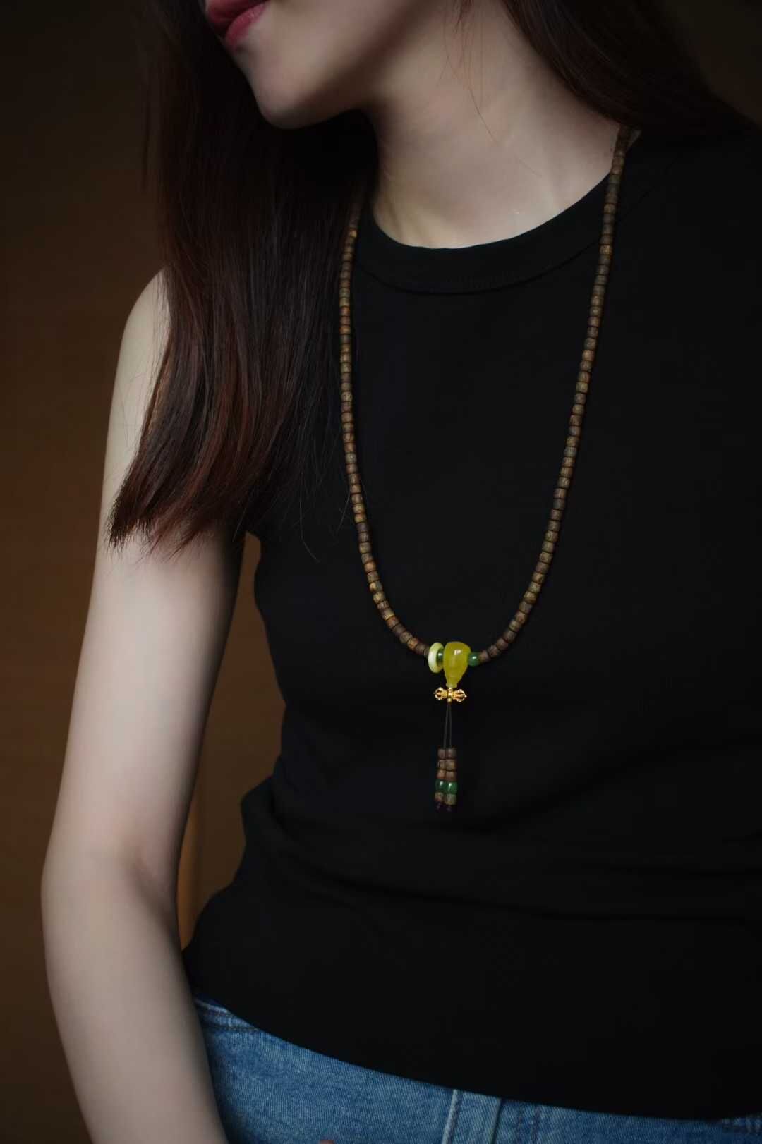 原創設計款-天然“老樹種綠奇楠沉香”項鏈/4圈手鏈兩用款,追尋眾香之首-鶯歌綠奇楠沉香,很乾淨古樸的味道,簡約直切造型,乾淨利落,淡雅的木質香,高級又低調,長期佩戴,腕間馥郁生香。