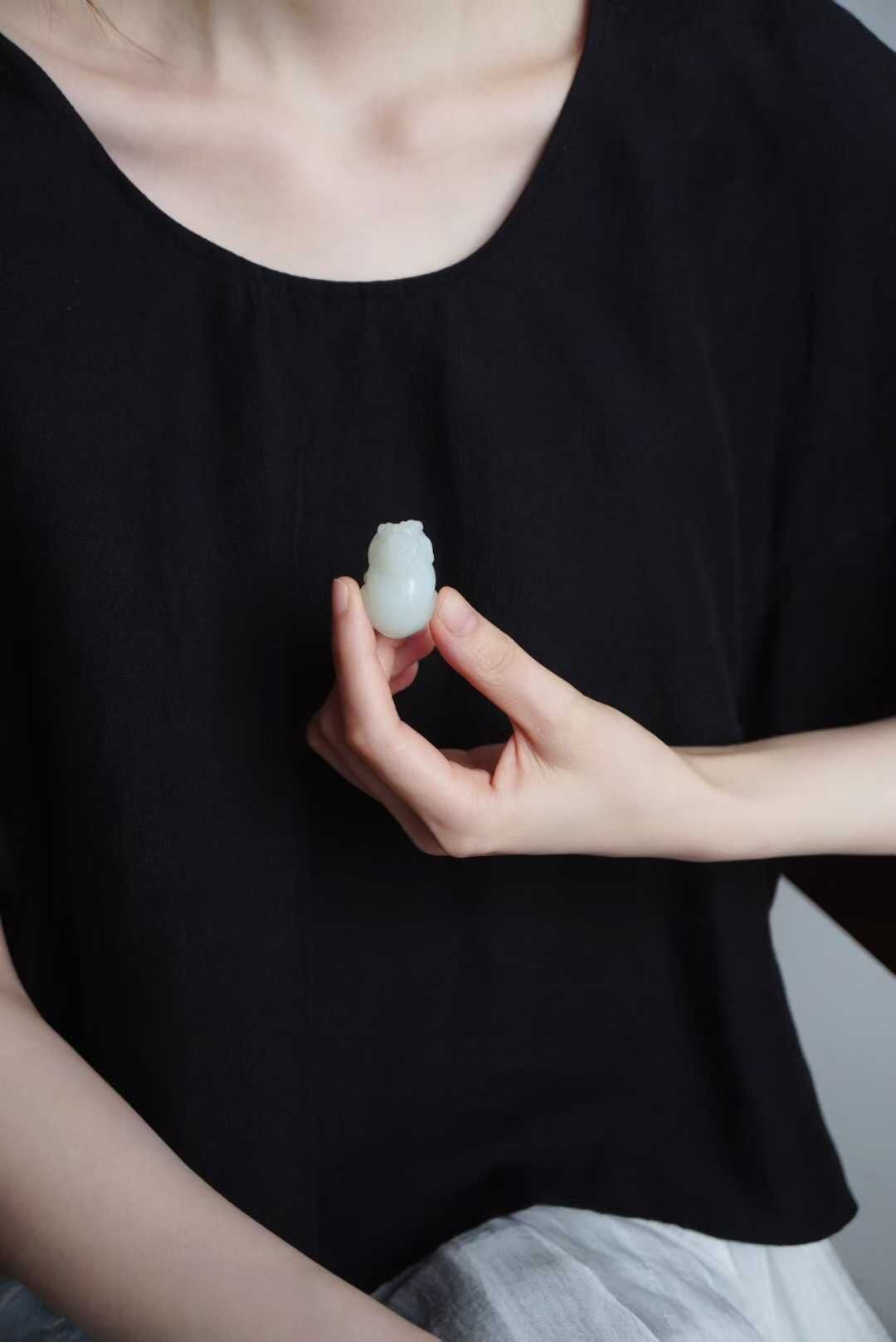 • 和田玉羊脂玉貔貅掛件,天然和田玉軟玉