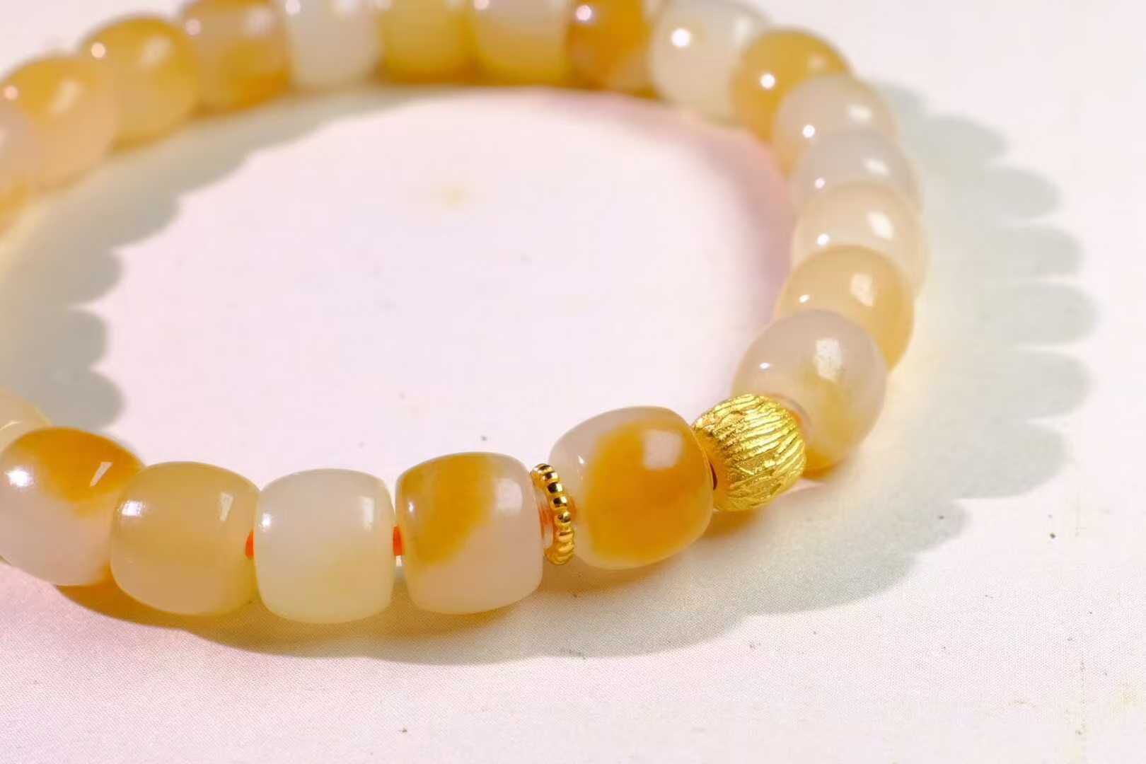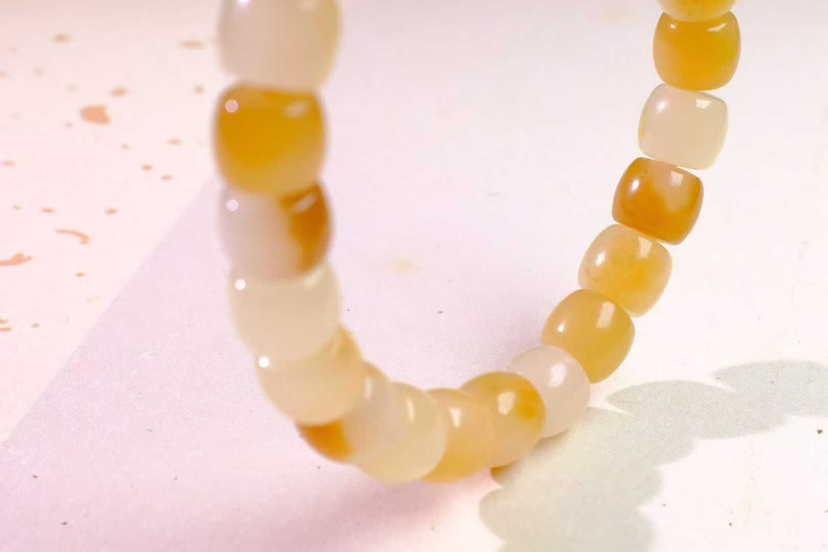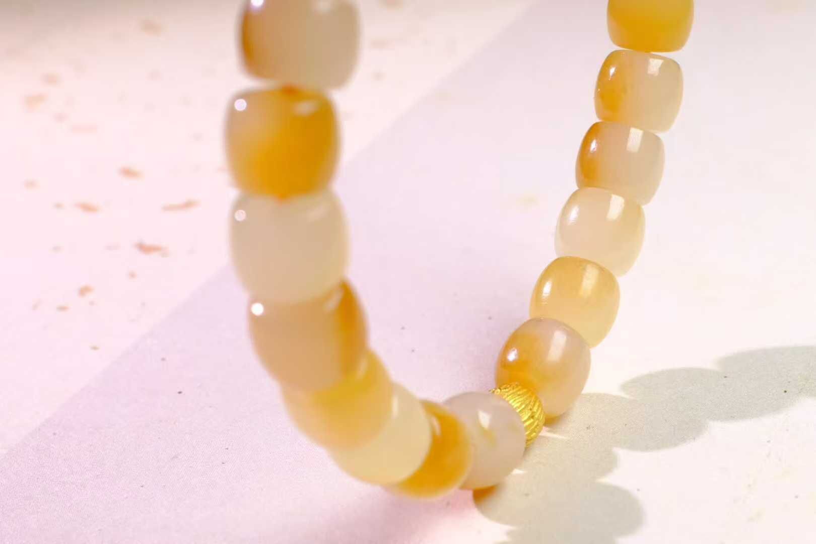 新疆且末糖白直切珠手串,細微麻糖不影響,油潤細膩,925銀配件。
