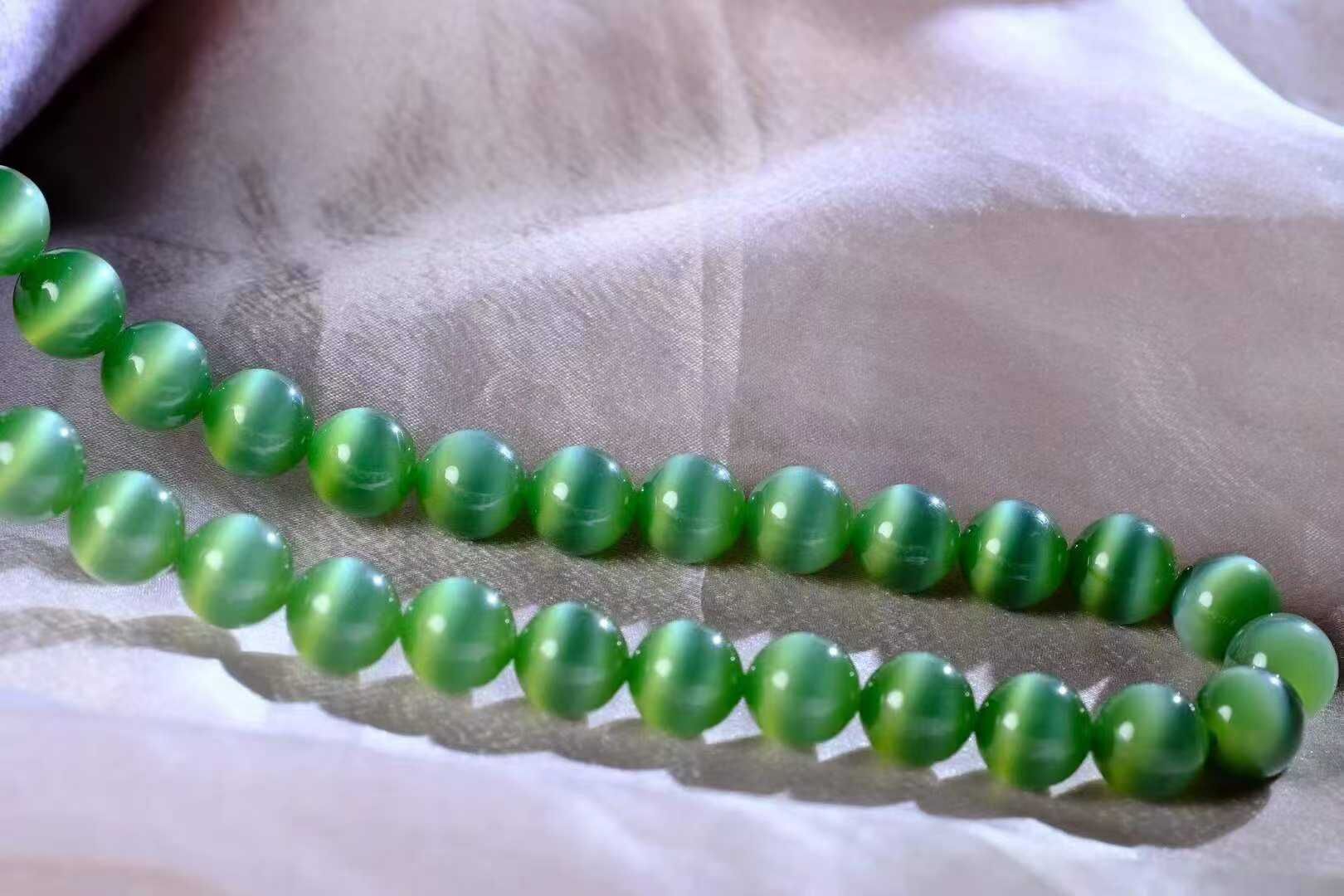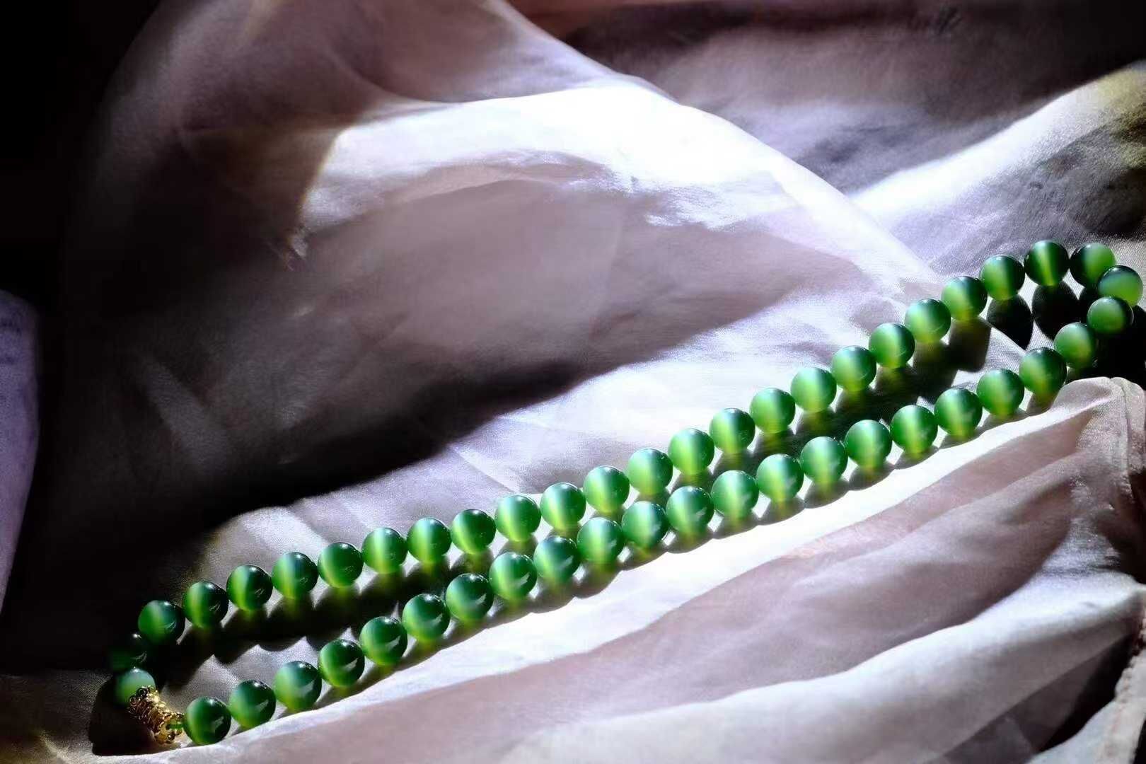 • 和田玉碧玉貓眼珠鏈 (10mm直徑),天然和田玉軟玉