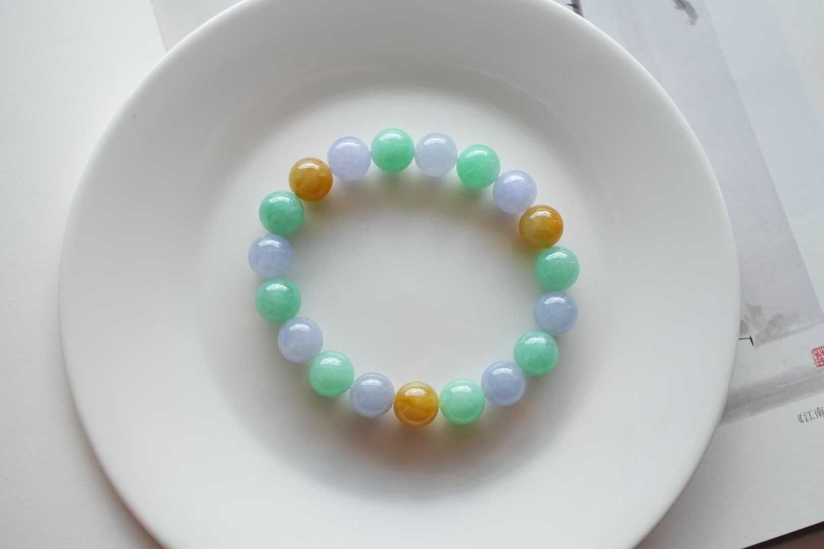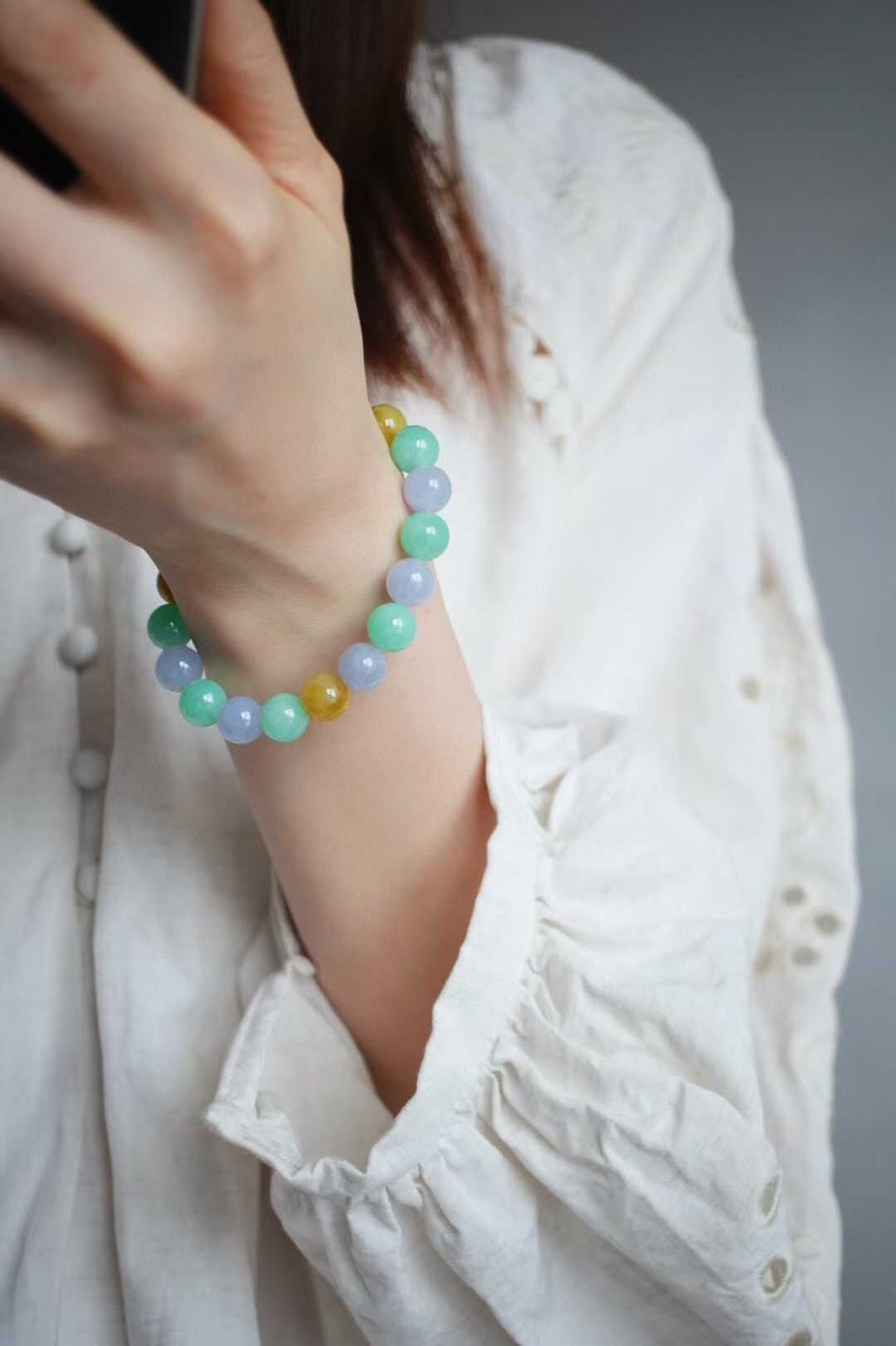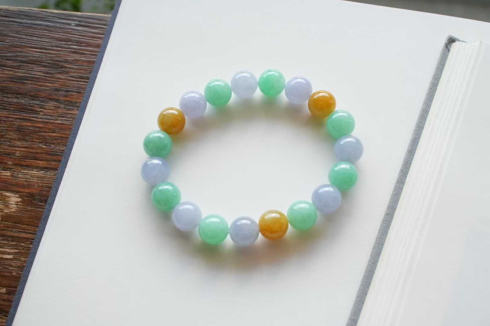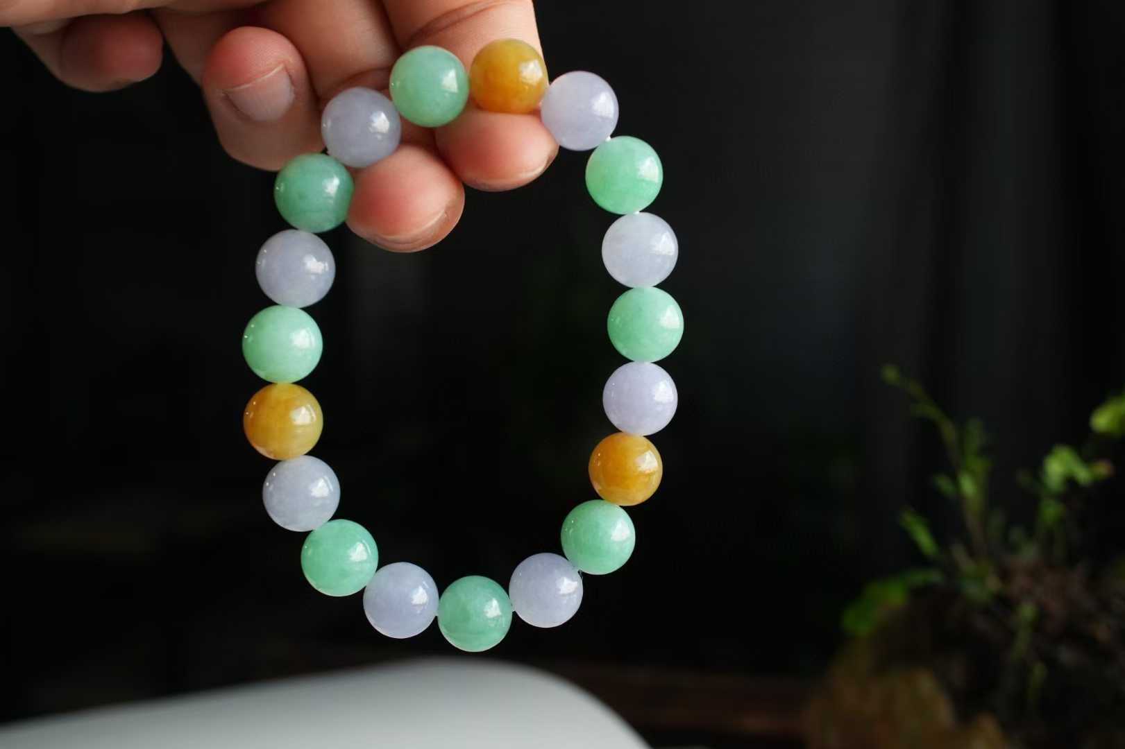 • 翡翠冰三彩圓珠手鏈 (10mm直徑),天然翡翠A玉, 緬甸玉, Jade, Jadeite