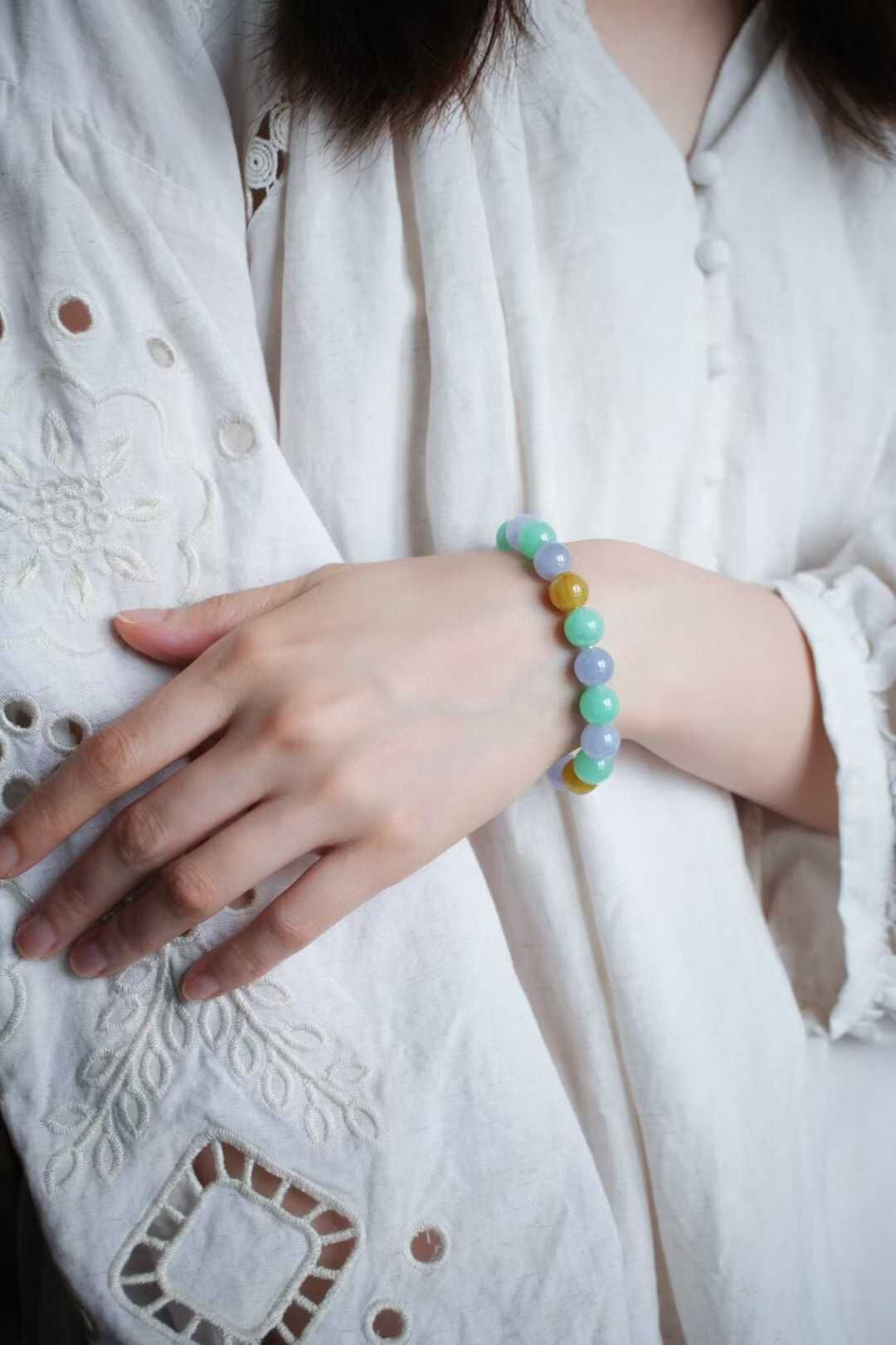 92387 翡翠冰三彩圓珠手鏈 (10mm直徑)