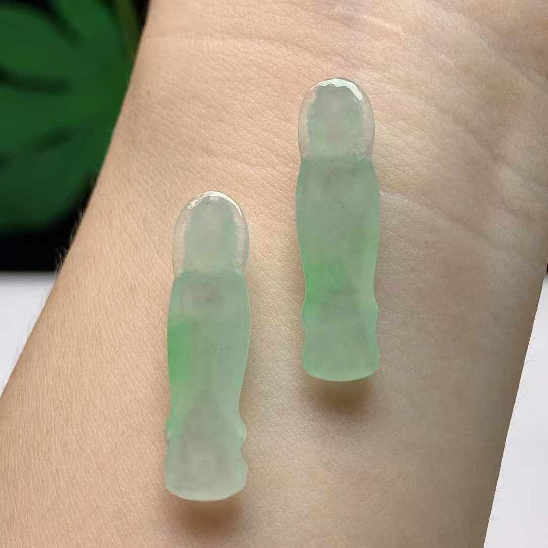 924354 翡翠冰種飄綠站觀音一對