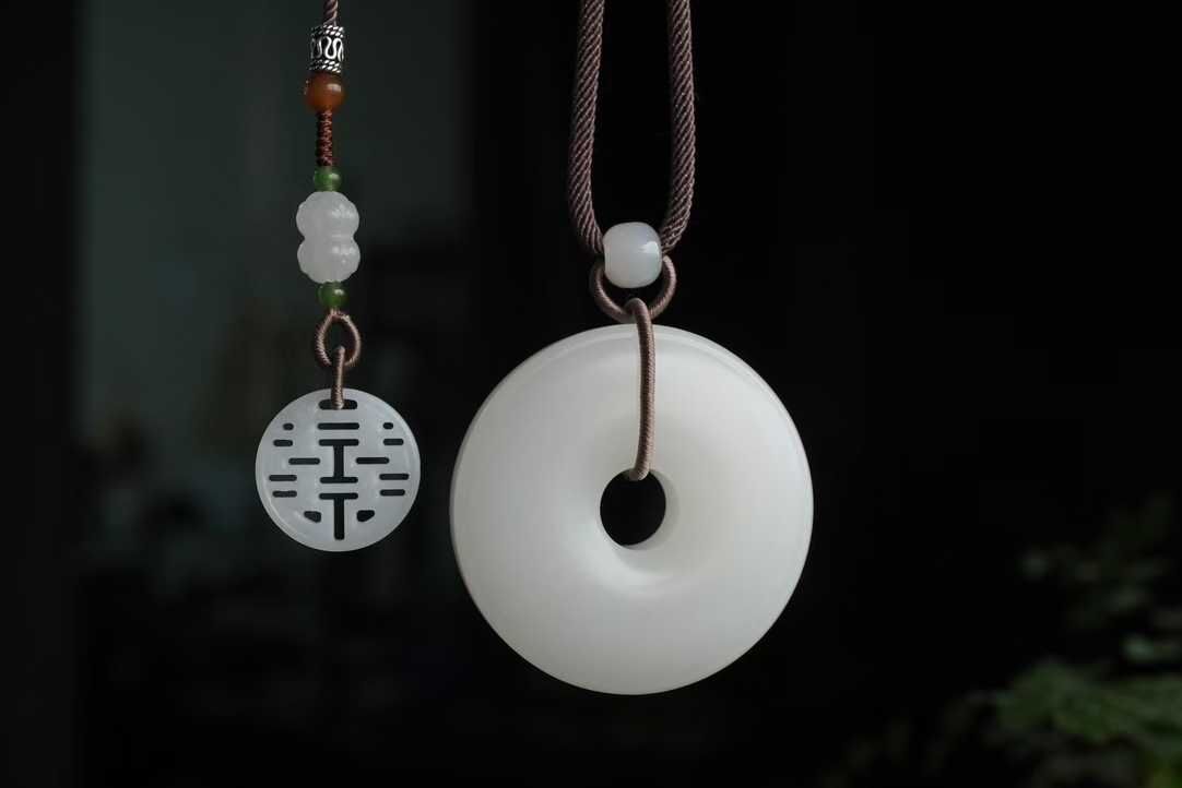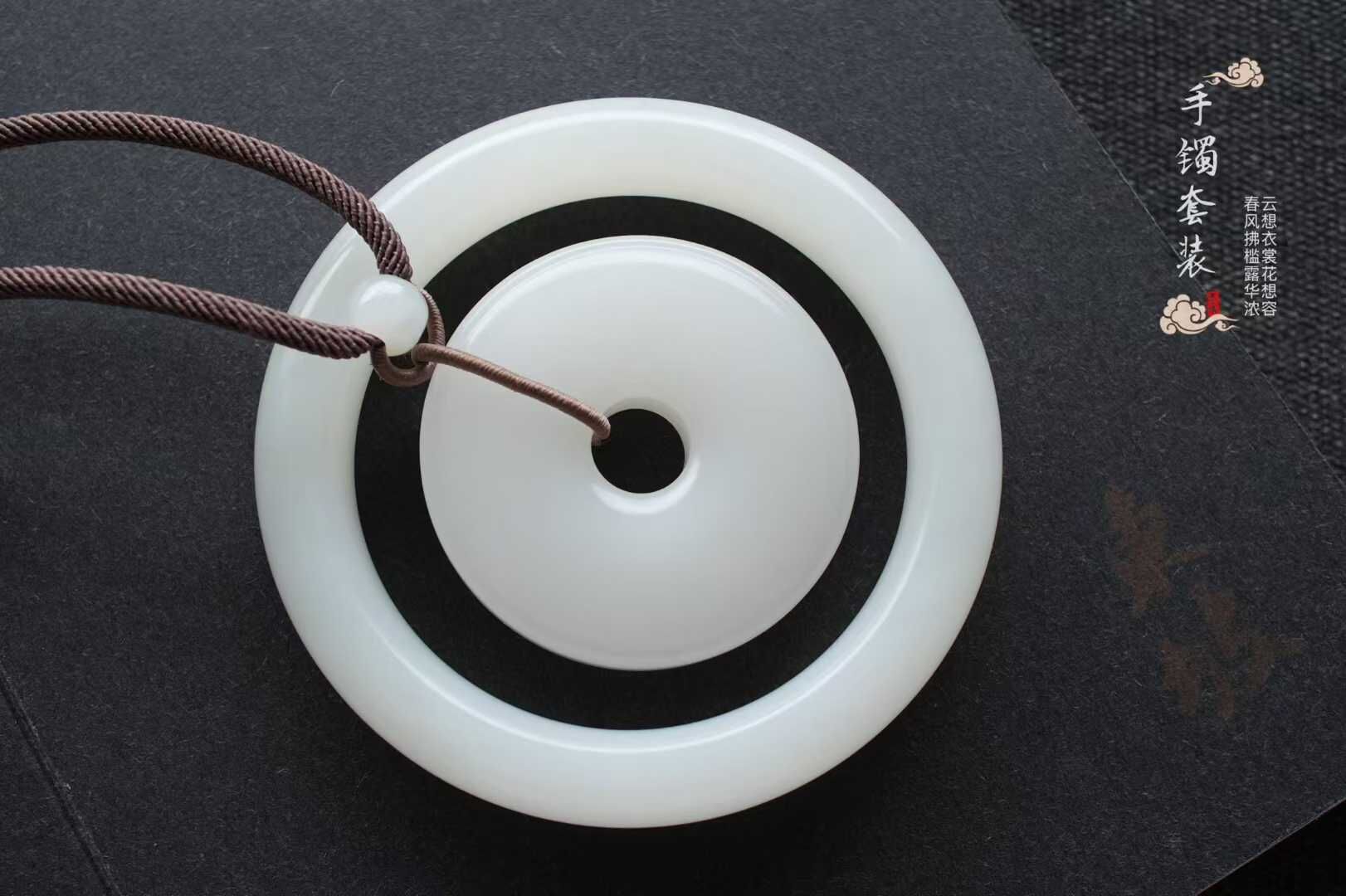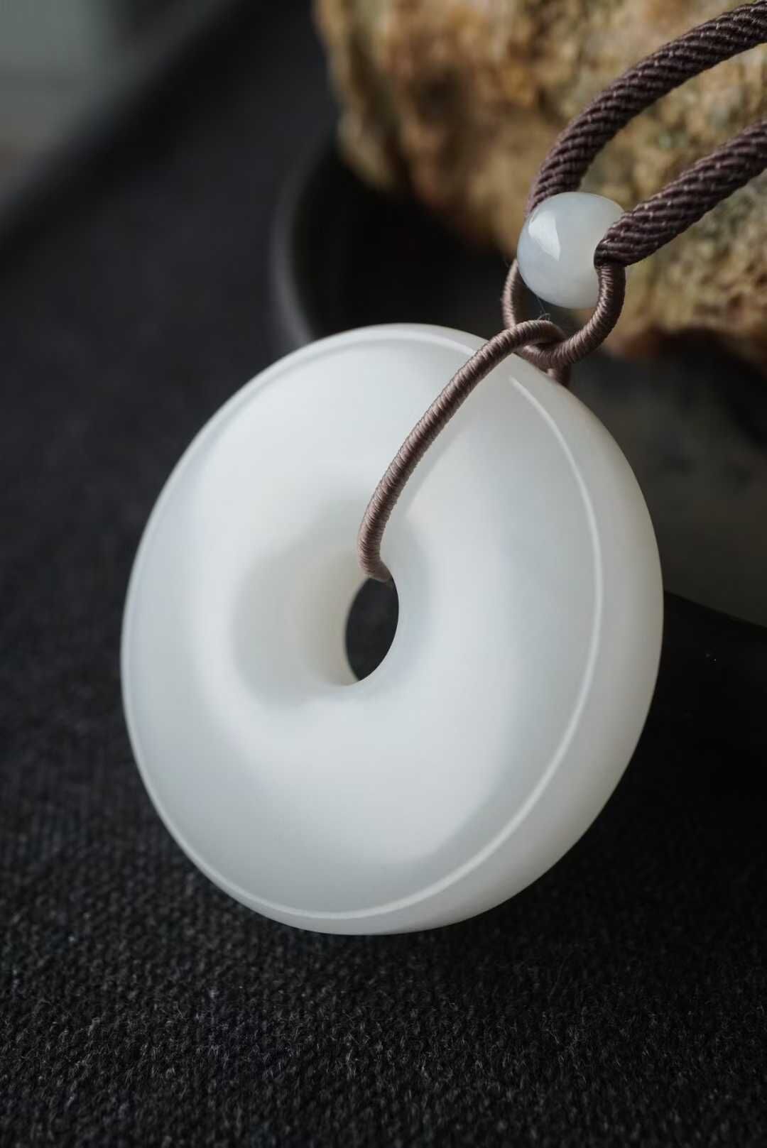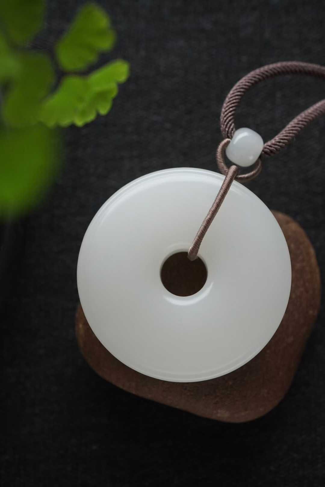 • 和田玉羊脂白玉平安扣掛件 (45.5mm直徑),天然和田玉軟玉
