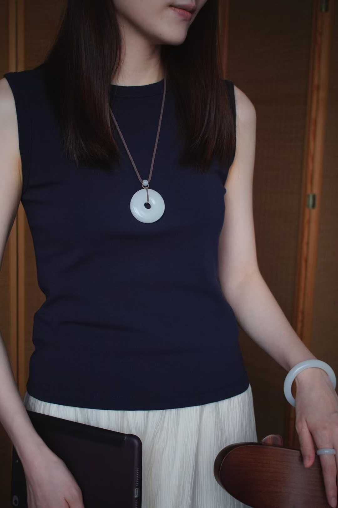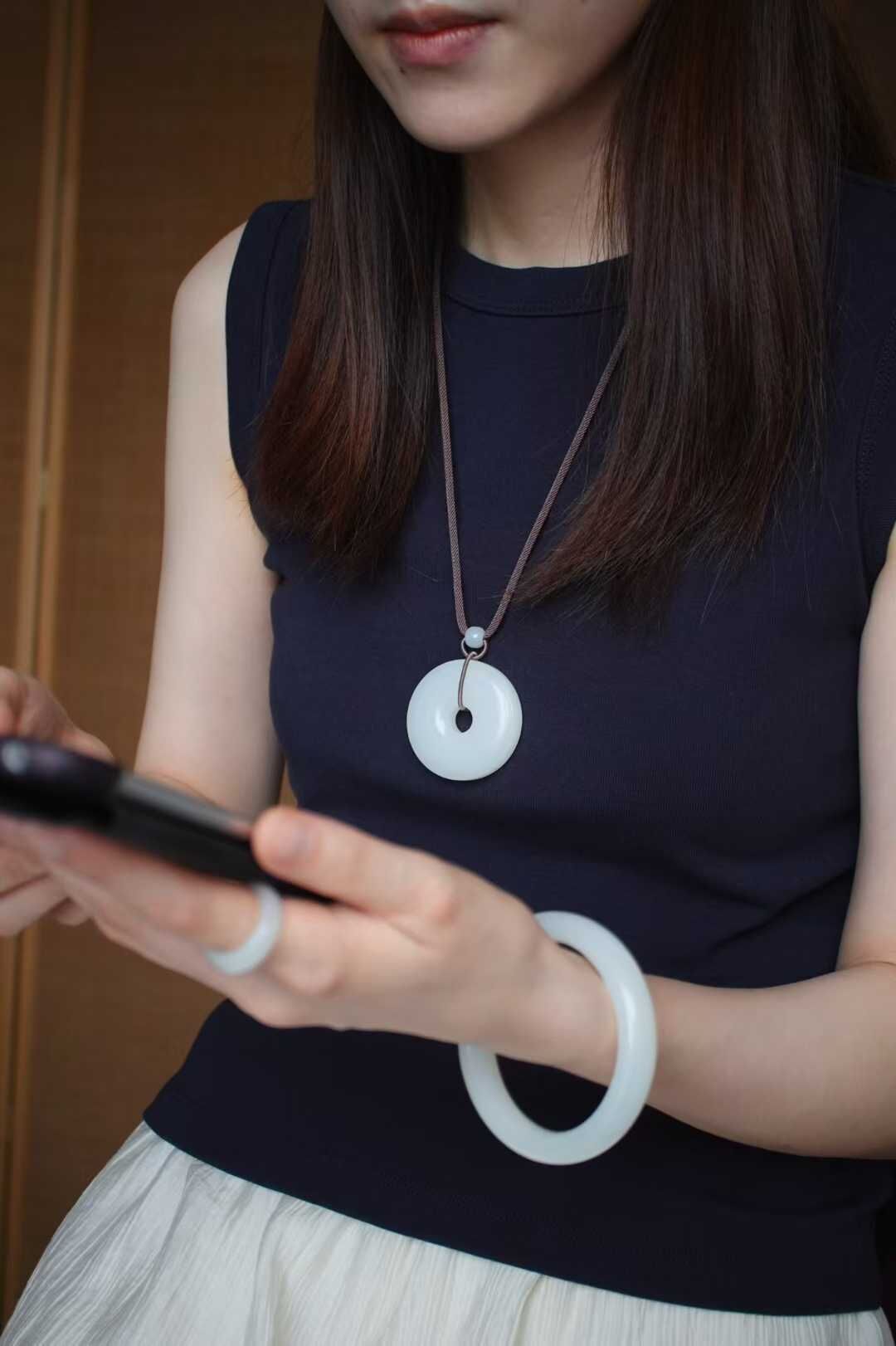搭配純手工製作繩,點綴白玉雙喜圓牌,白玉並蒂蓮,白玉路路通,純糖、碧玉圓珠,純銀小配件,佩戴大氣典雅!四季百搭,可與手鐲配套。