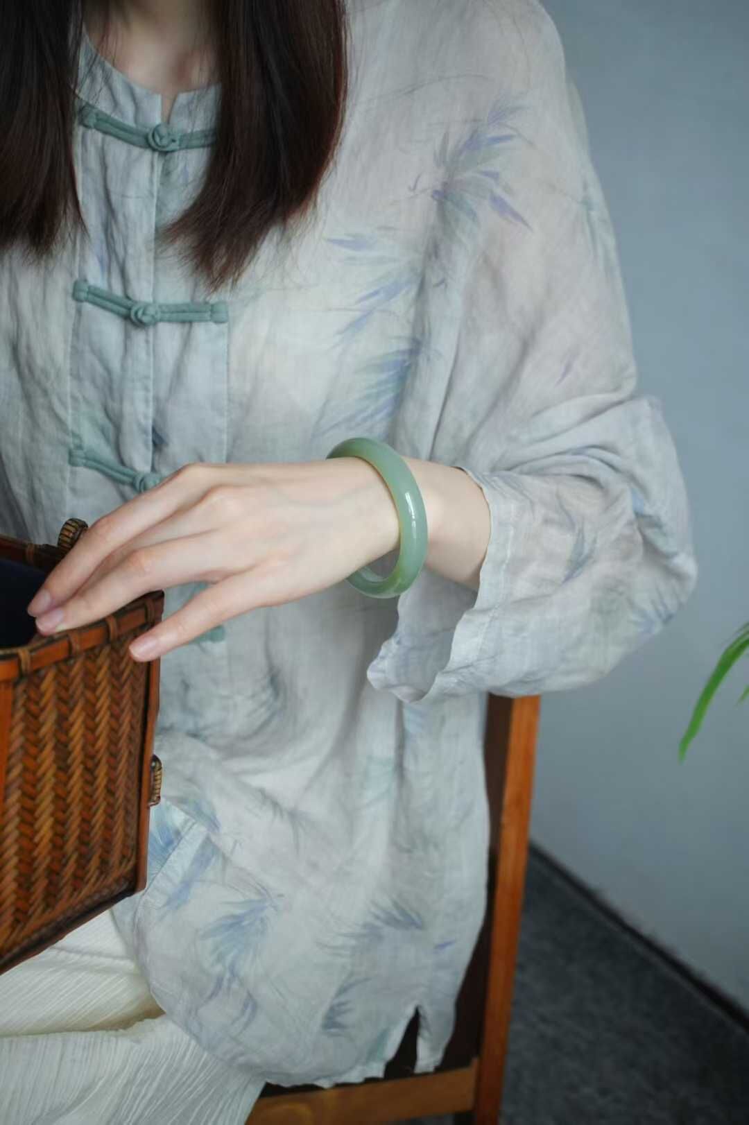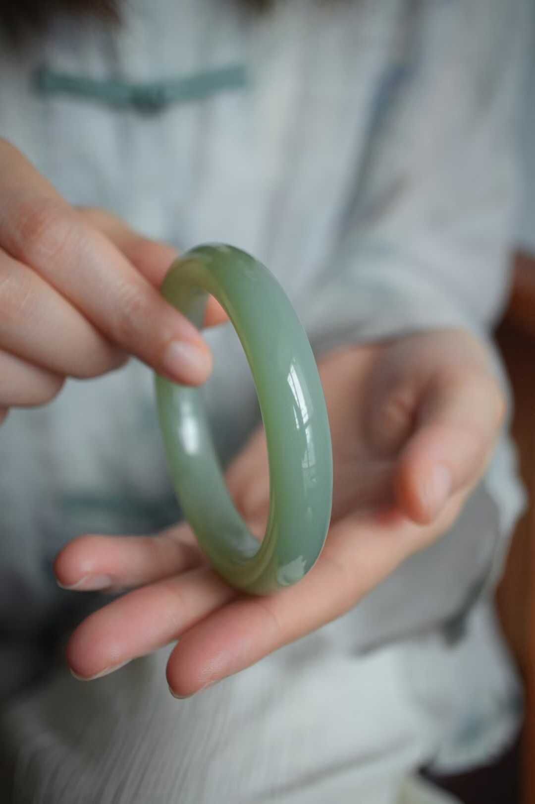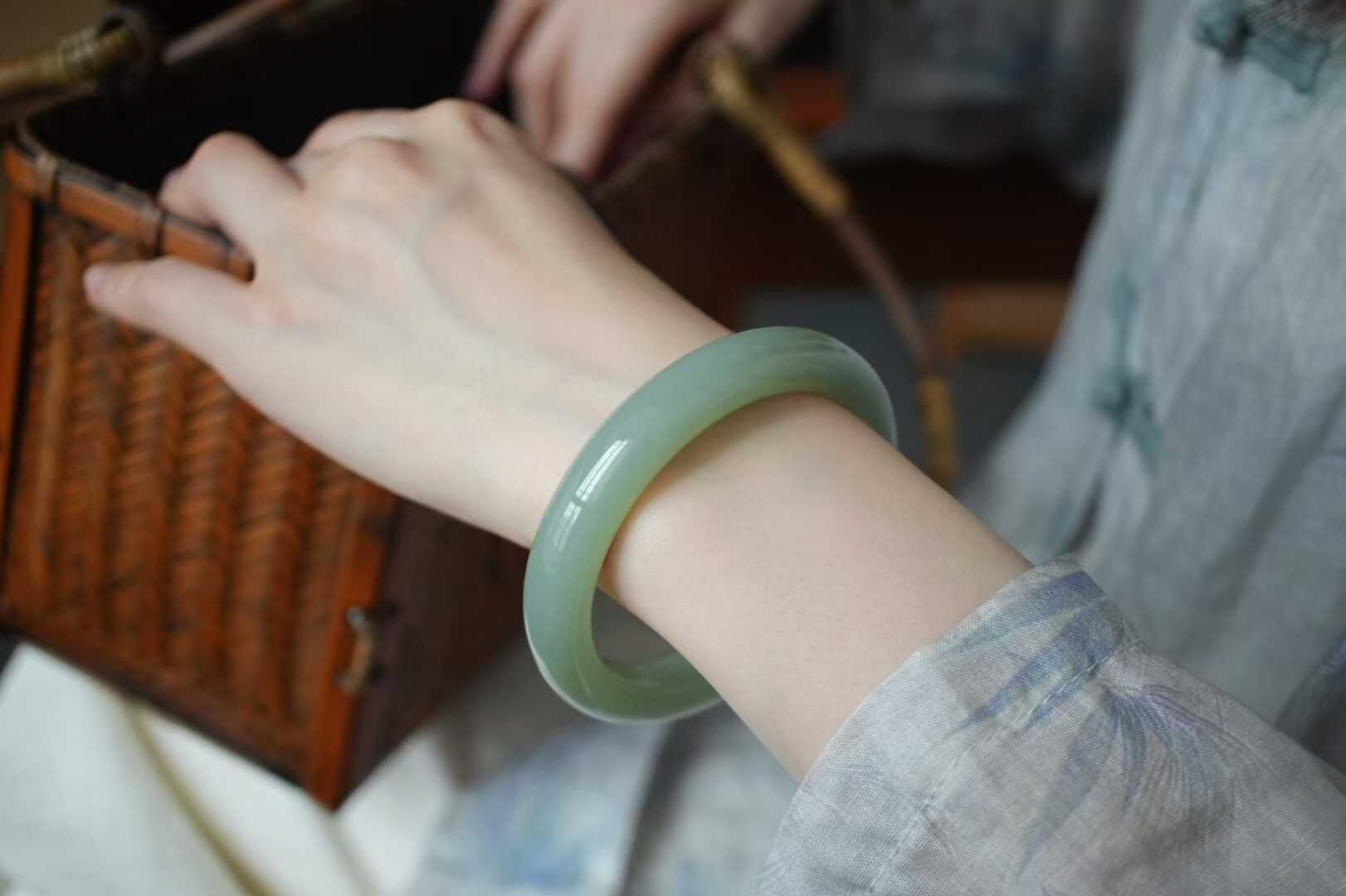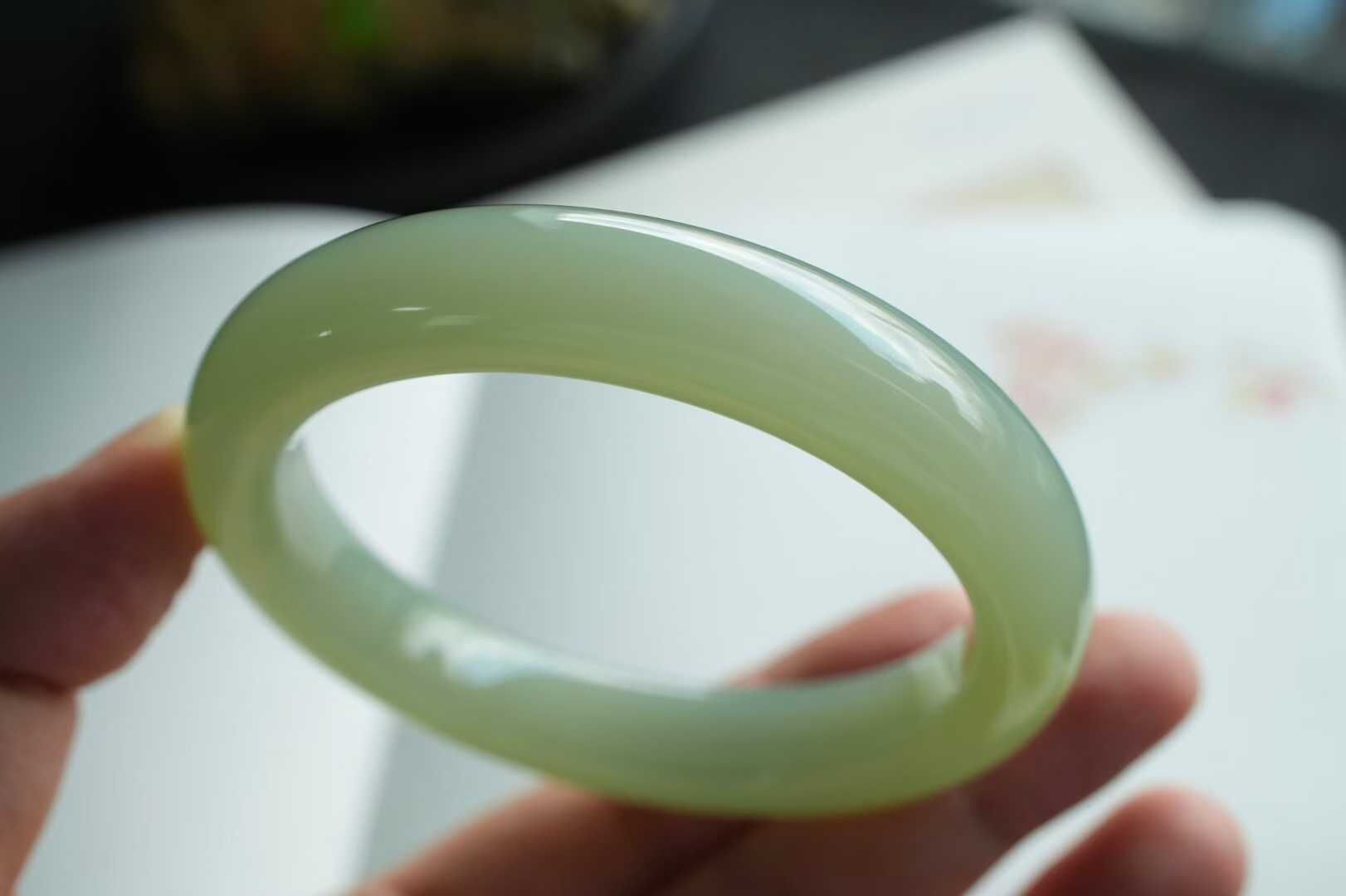 和田玉冰底晴水玉鐲,顏色清雅不發黃不發暗,沉穩耐看,整體非常均勻,玉質細膩冰透瑩潤,過燈乾淨,肉眼無棉微微水線,無雜裂完美品相。平安鐲寓意平平安安,上手不挑人,溫婉顯氣質。