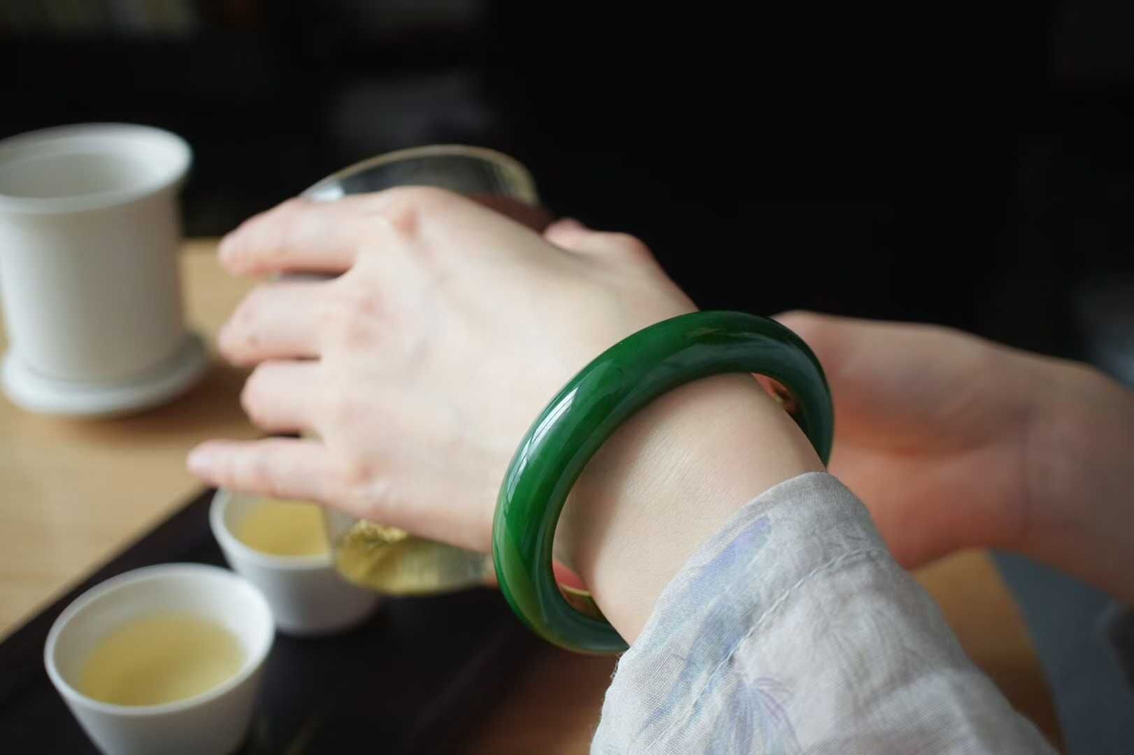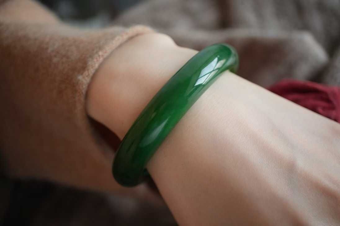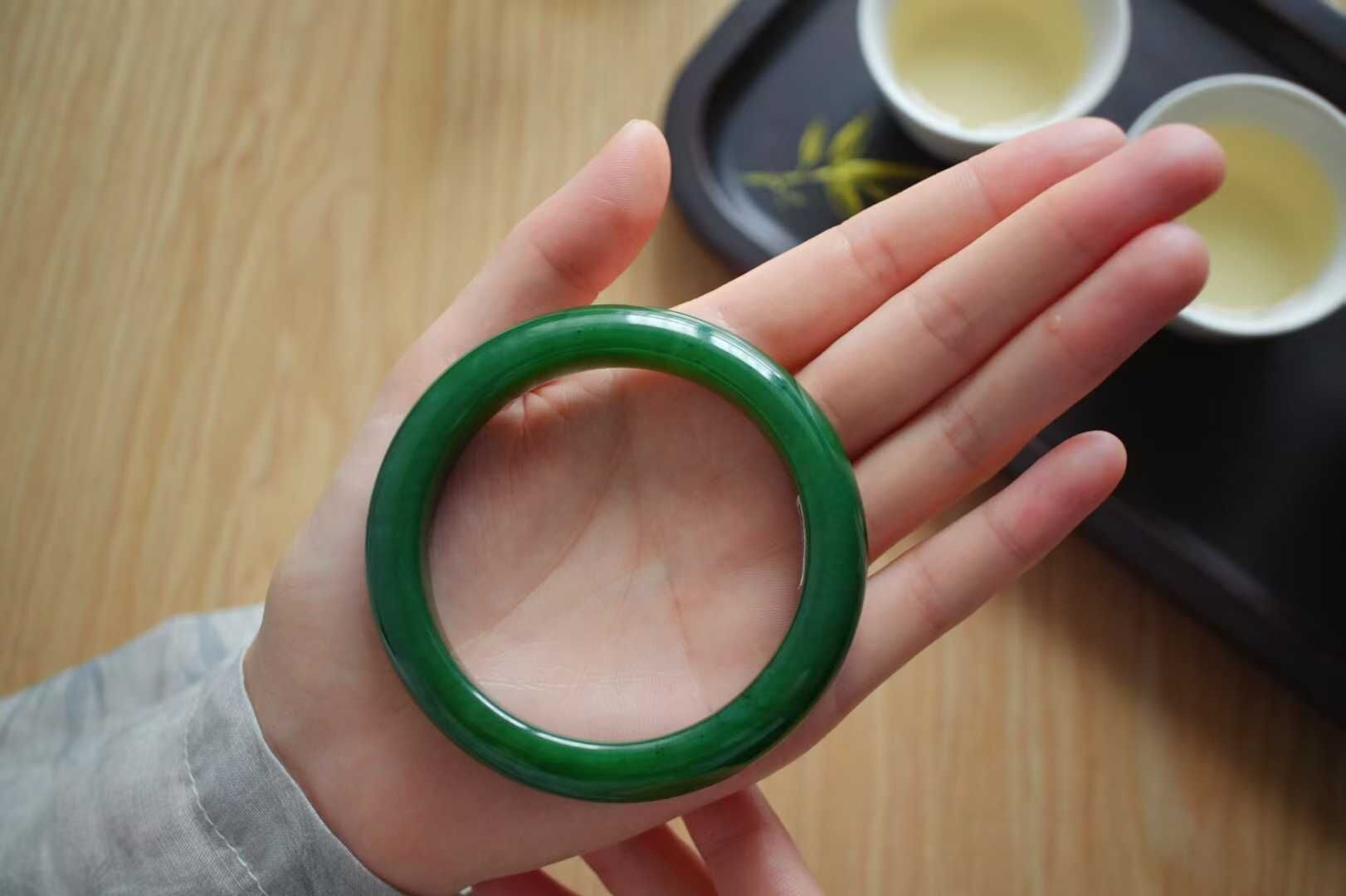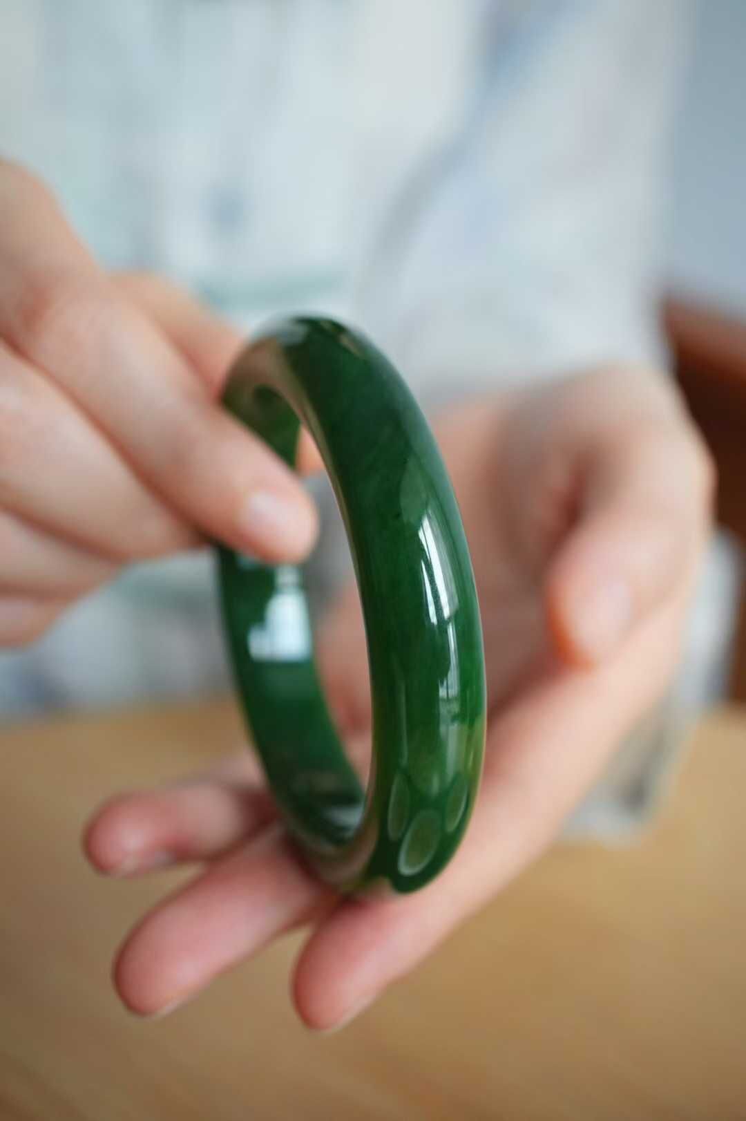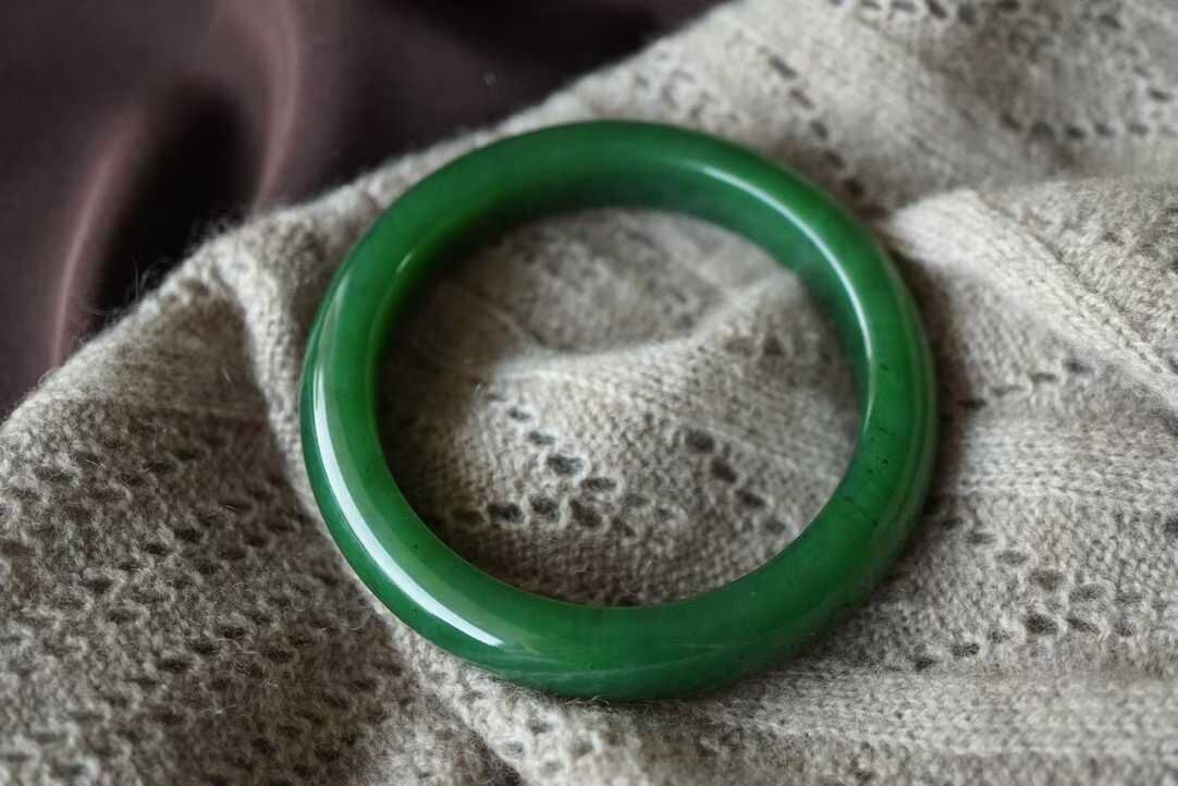 • 和田玉老礦料碧玉菠菜綠平安鐲,天然和田玉軟玉