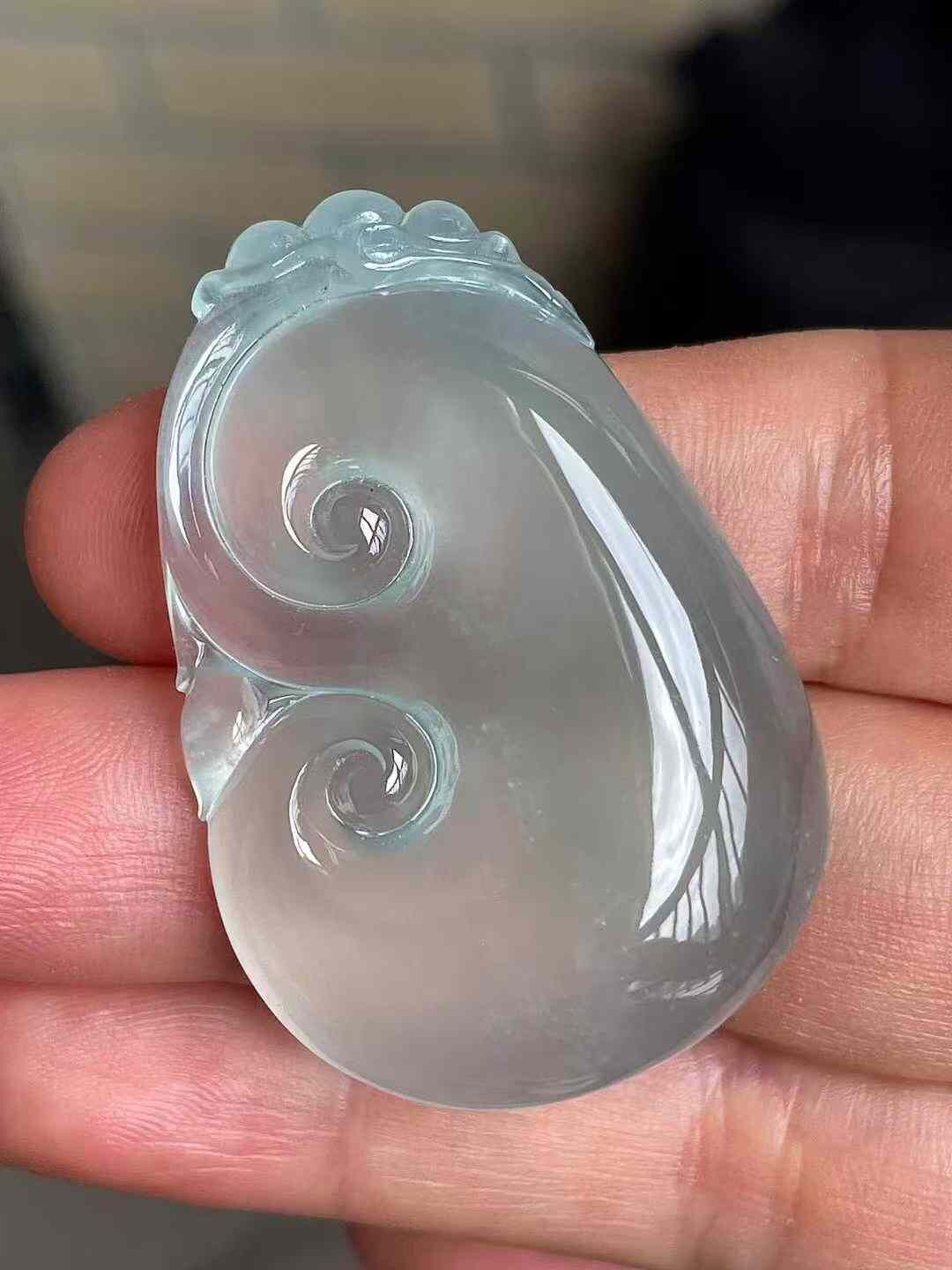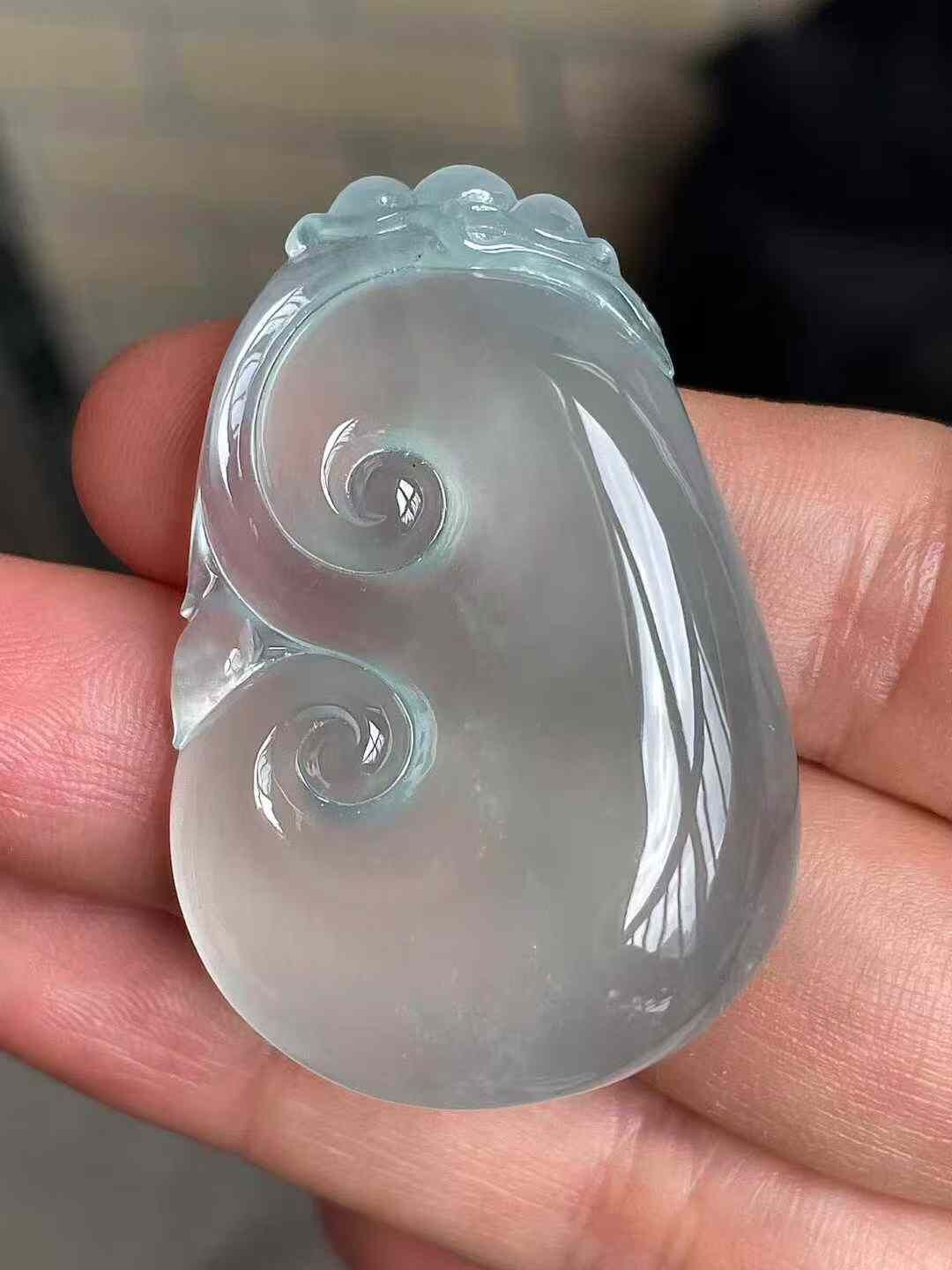 • 翡翠高冰如意吊墜,天然翡翠A玉, 緬甸玉, Jade, Jadeite