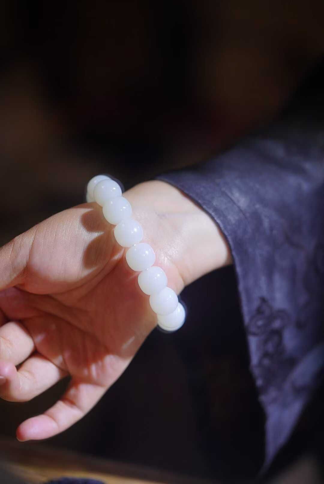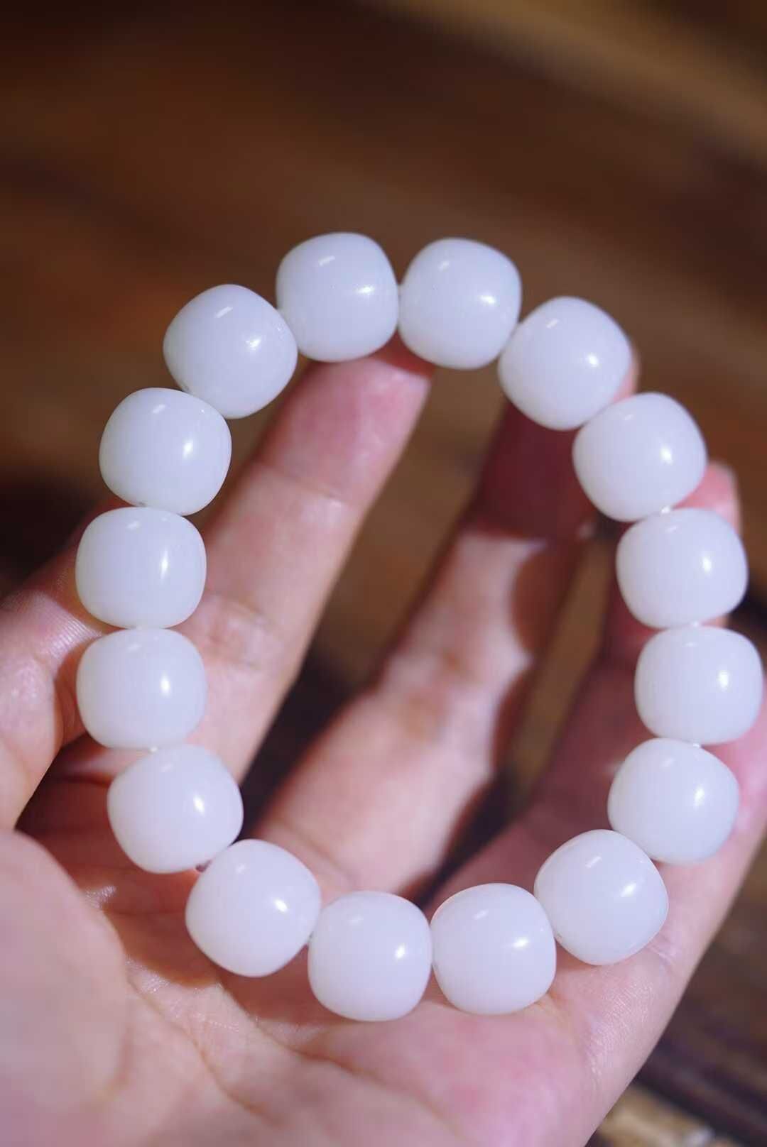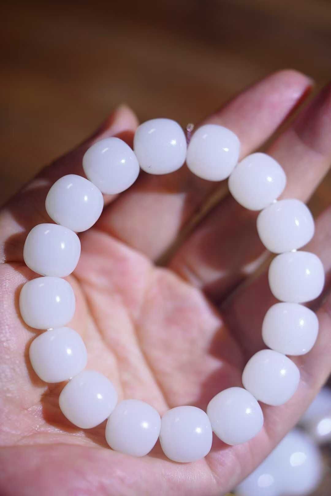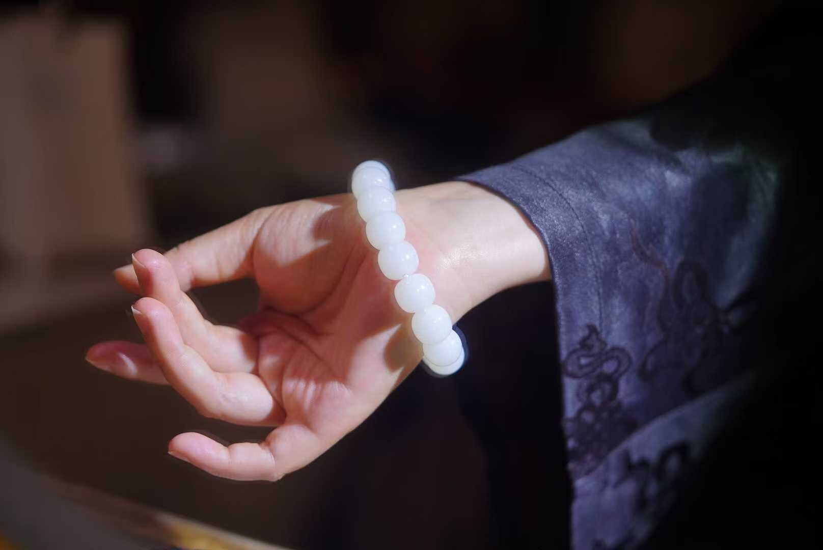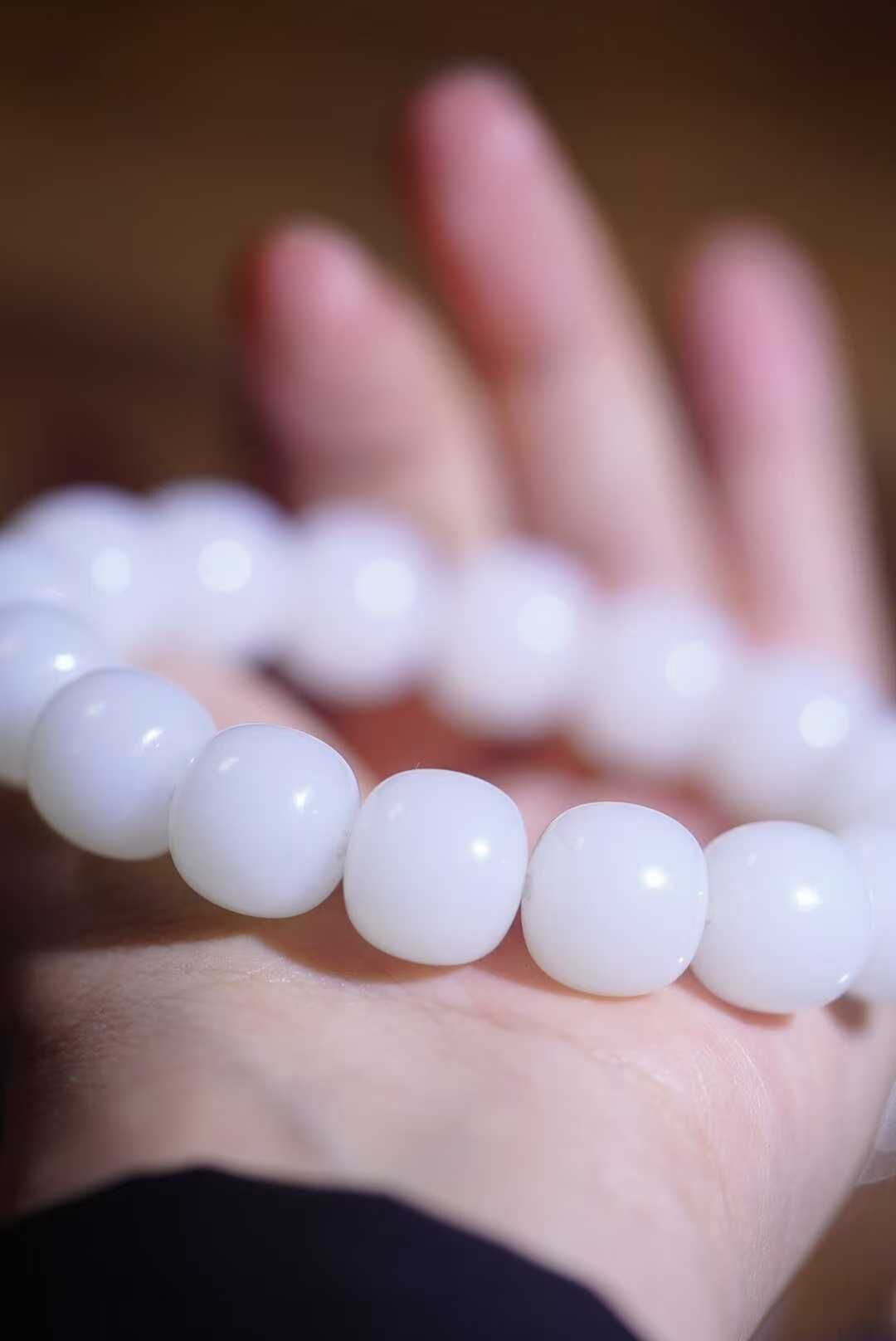 畢業級和田玉,正宗的老俄料高品質白玉大尺寸珠串,一級白羊脂級,全部都是鐲芯料車的大珠子,更純淨更均勻,珠子又白又油糯,每一顆都是豬油膏。白玉標本串非它莫屬,白玉就像經過了歲月的沉澱,成熟又有魅力。