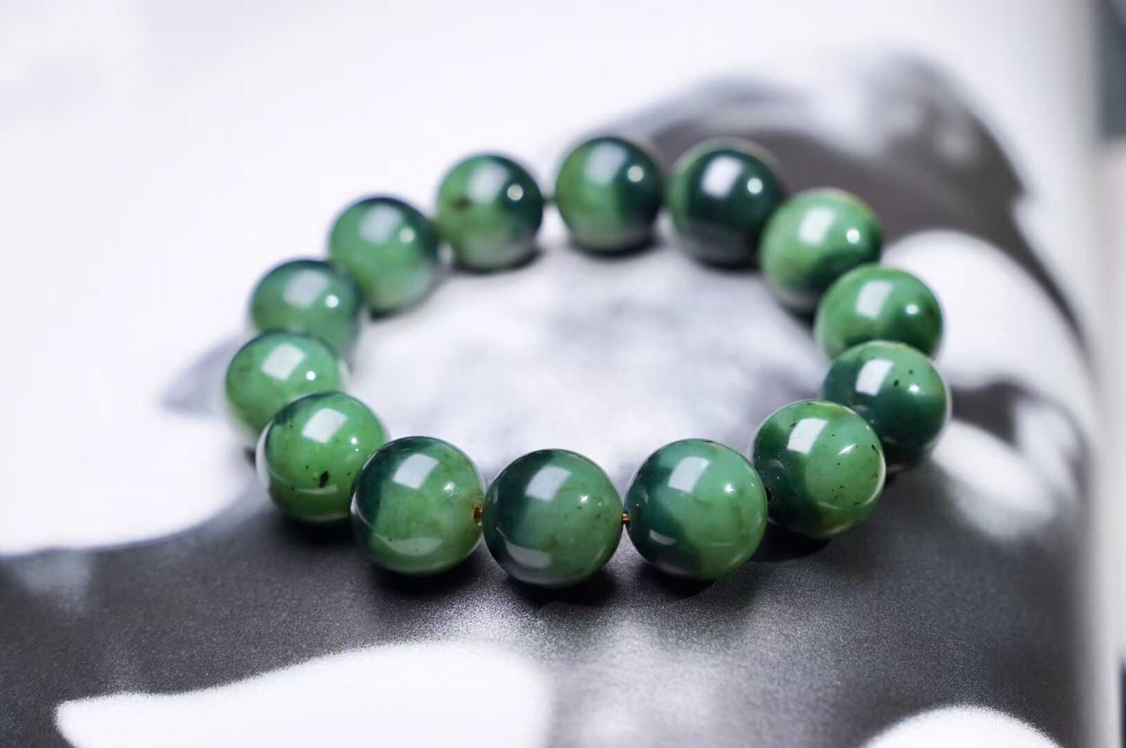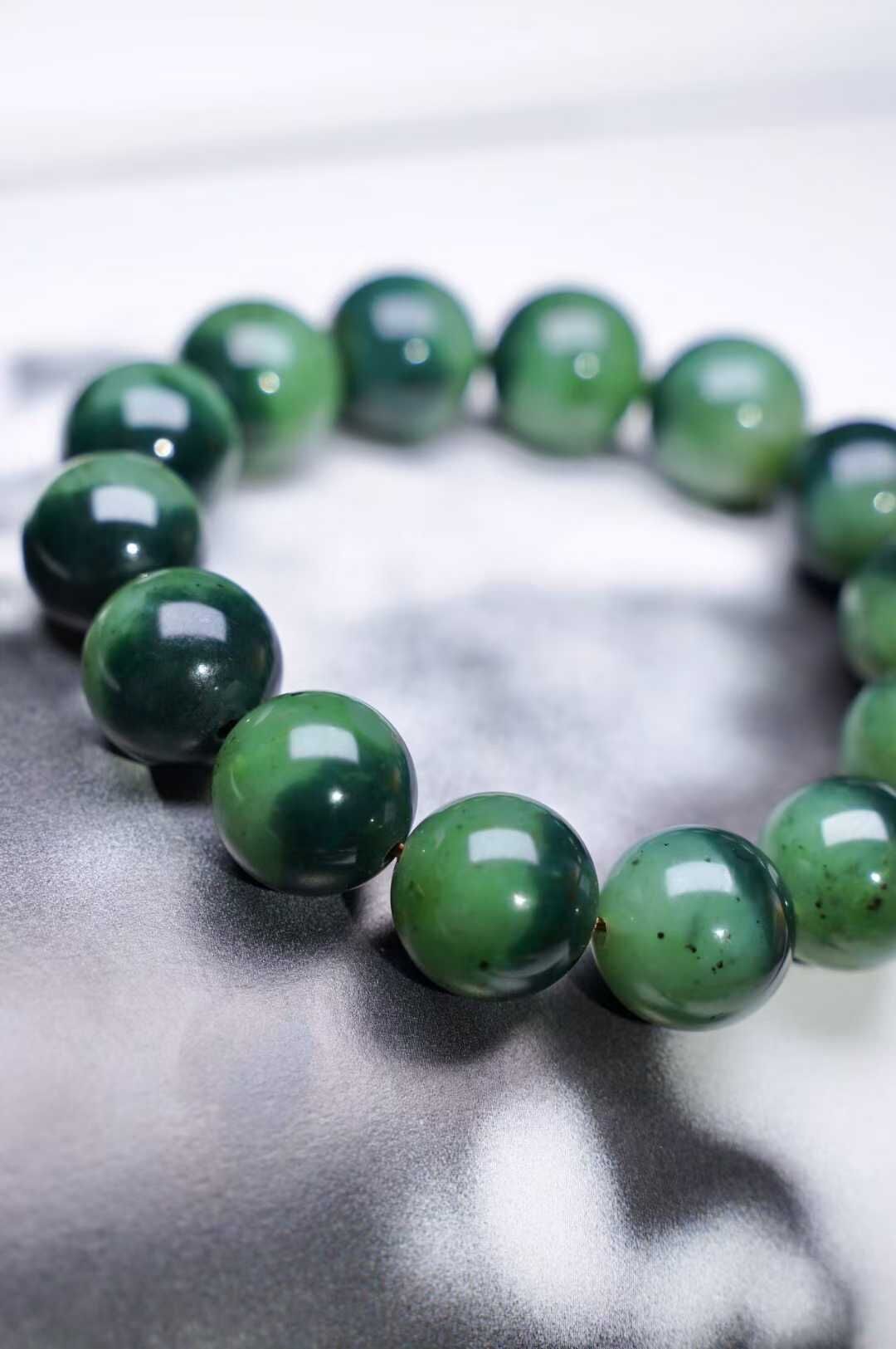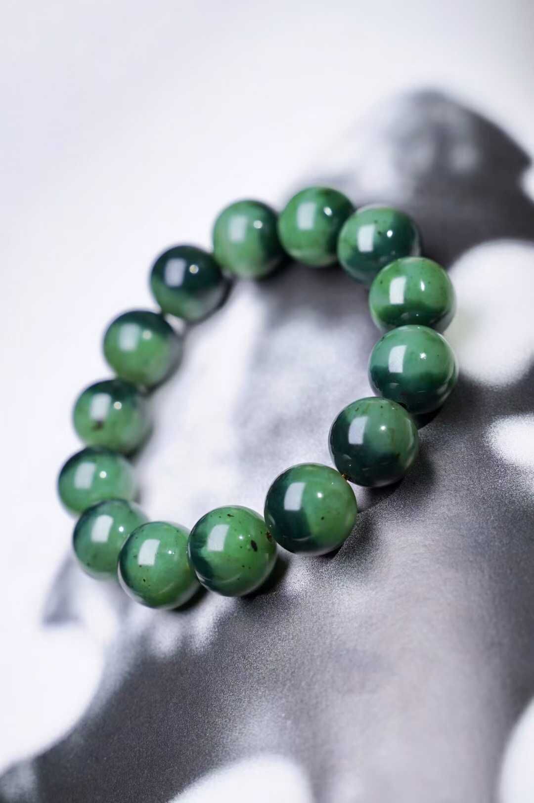 罕見新疆和田玉帶藍雙色碧玉籽料聚寶盆圓珠手串,15mm濃郁的藍碧和碧玉同生共美,油性很好,老熟,顆顆都很耐得品味,獨一無二的自然造物,大尺寸孤品,獨一無二,老玩家摯愛的標本玩物,實在難得!