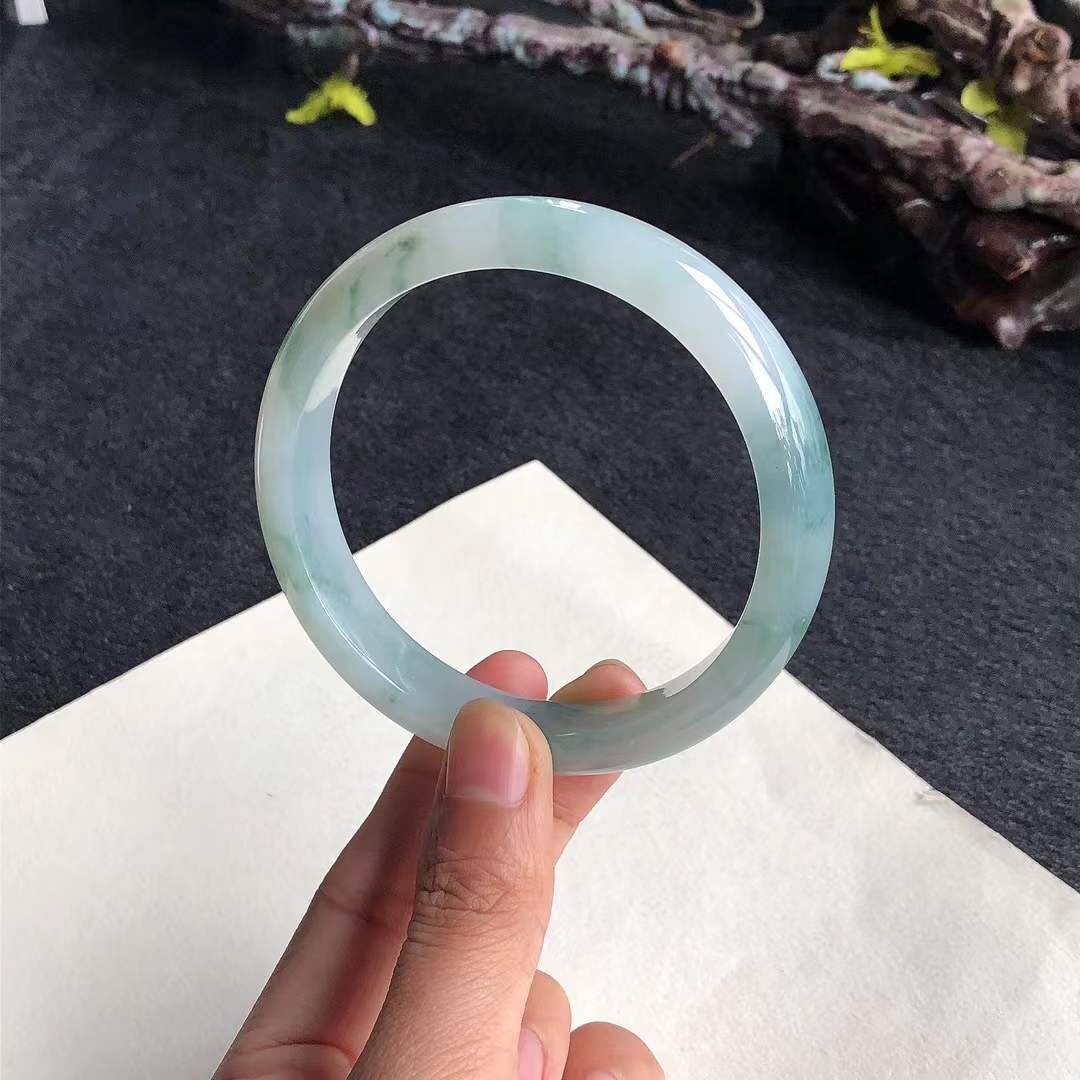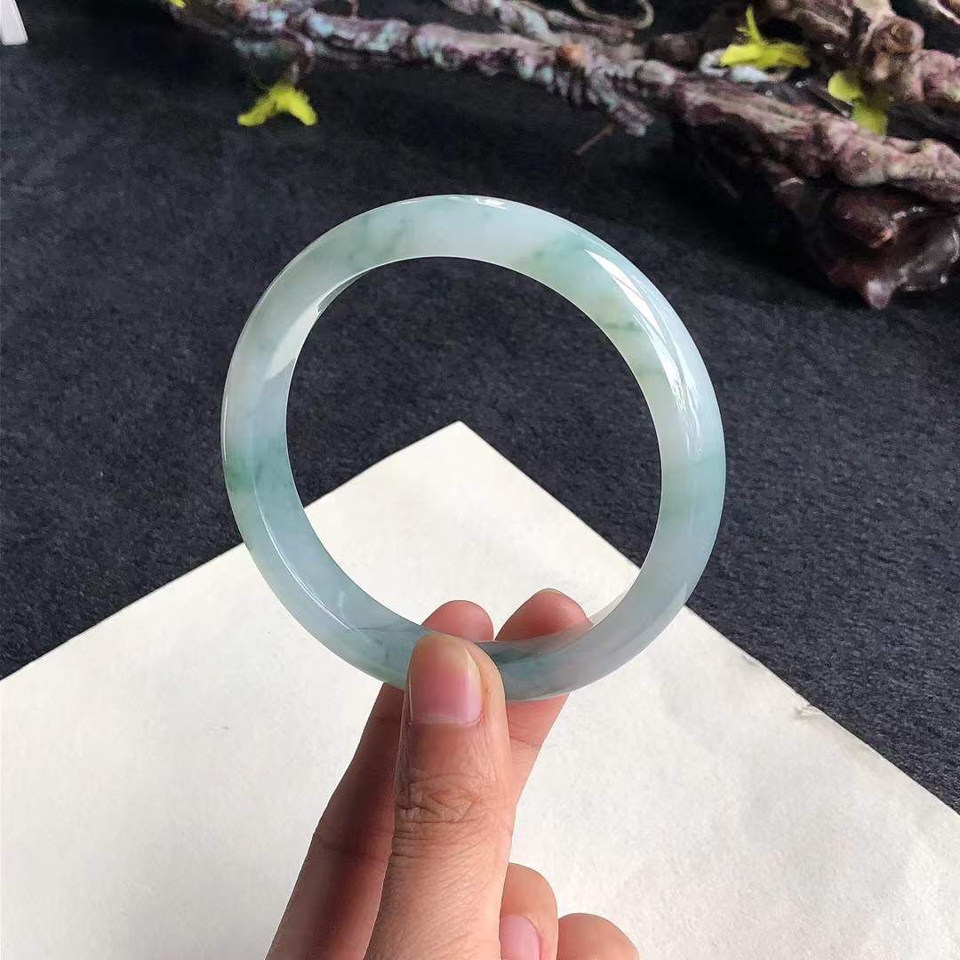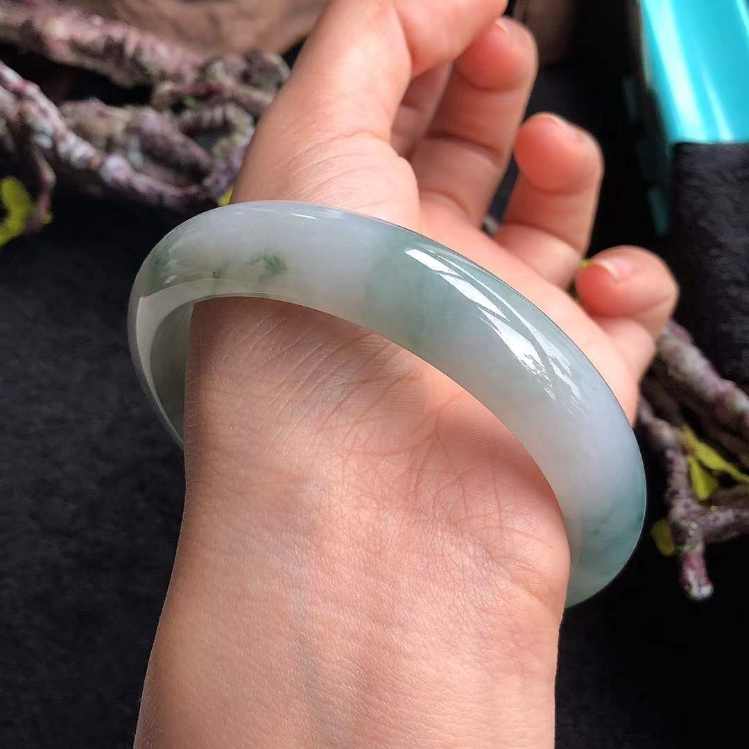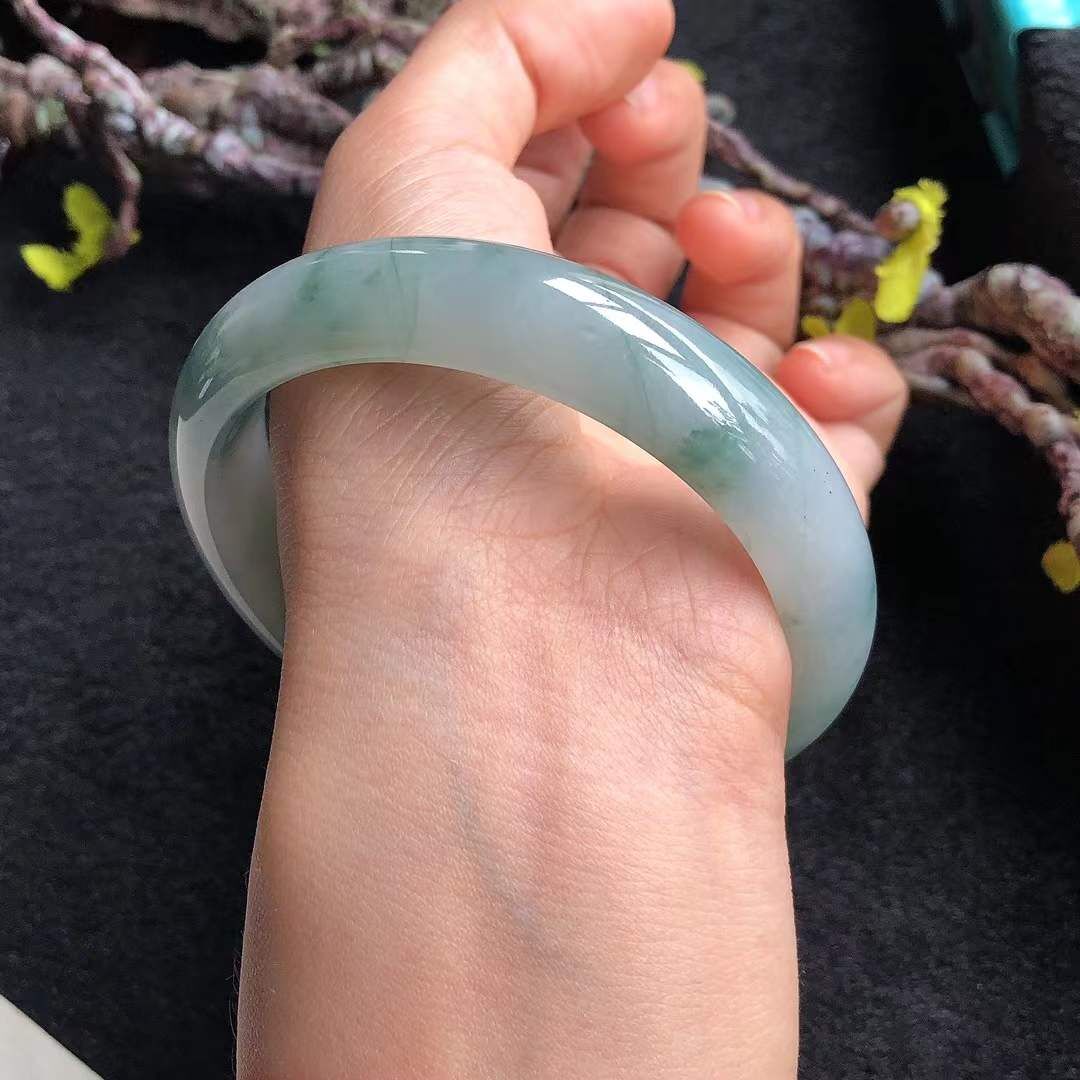 • 冰糯種飄綠花翡翠正圈手鐲,天然翡翠A玉, 緬甸玉, Jade, Jadeite