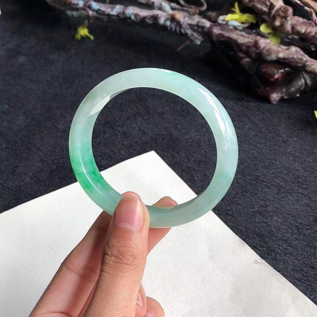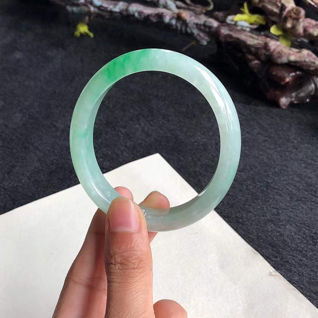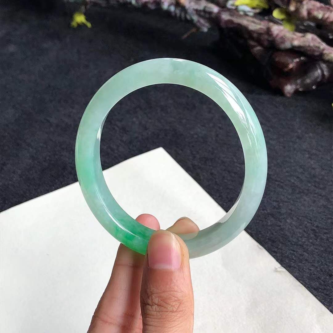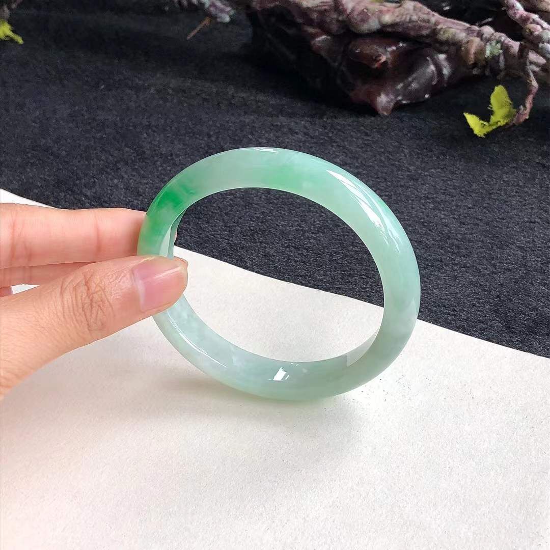 9252642 51mm冰糯種飄陽綠翡翠貴妃手鐲