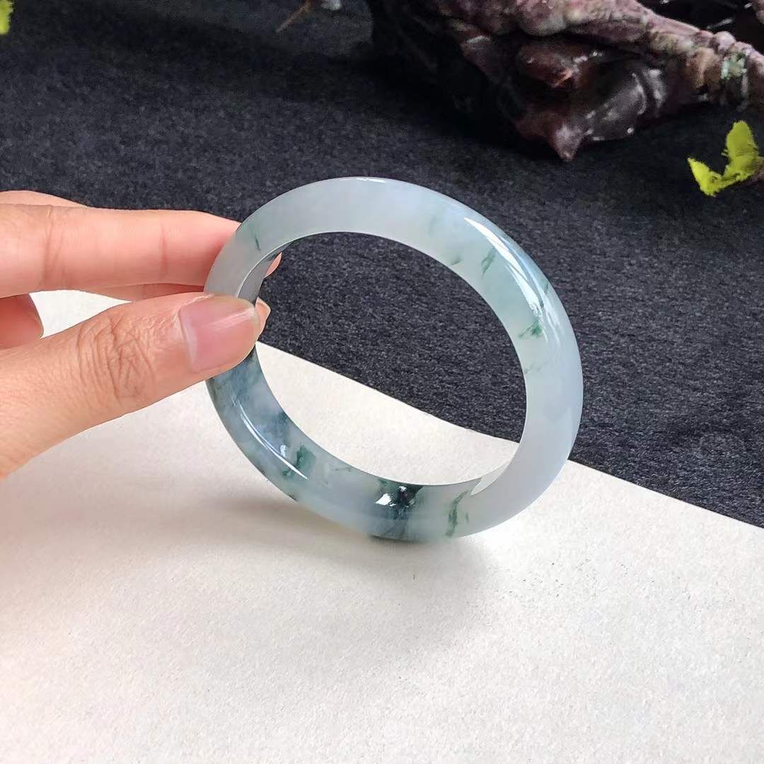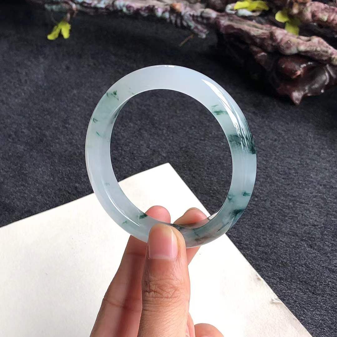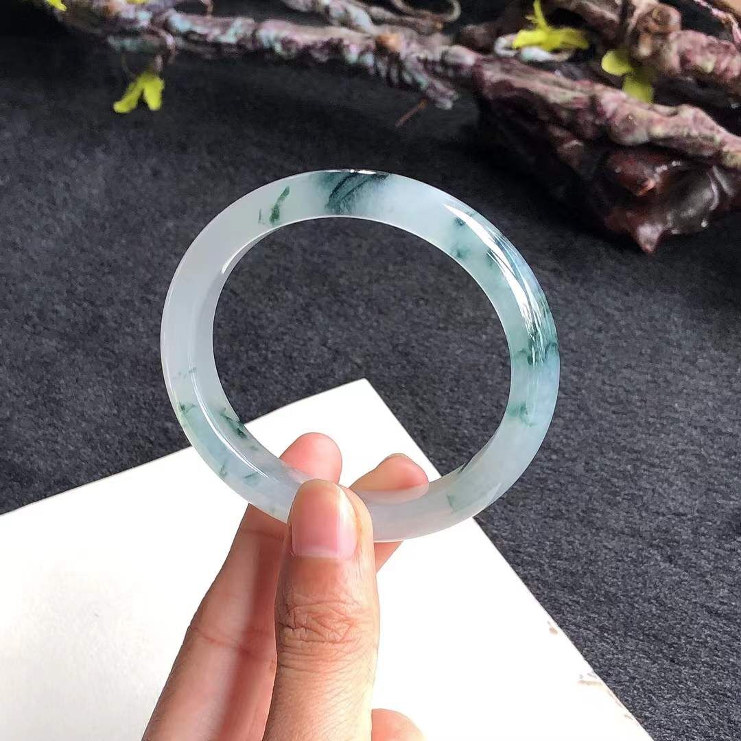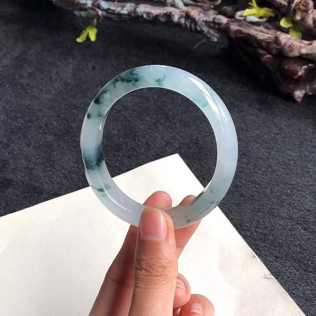9252643 52.5mm冰糯種飄綠花翡翠貴妃手鐲