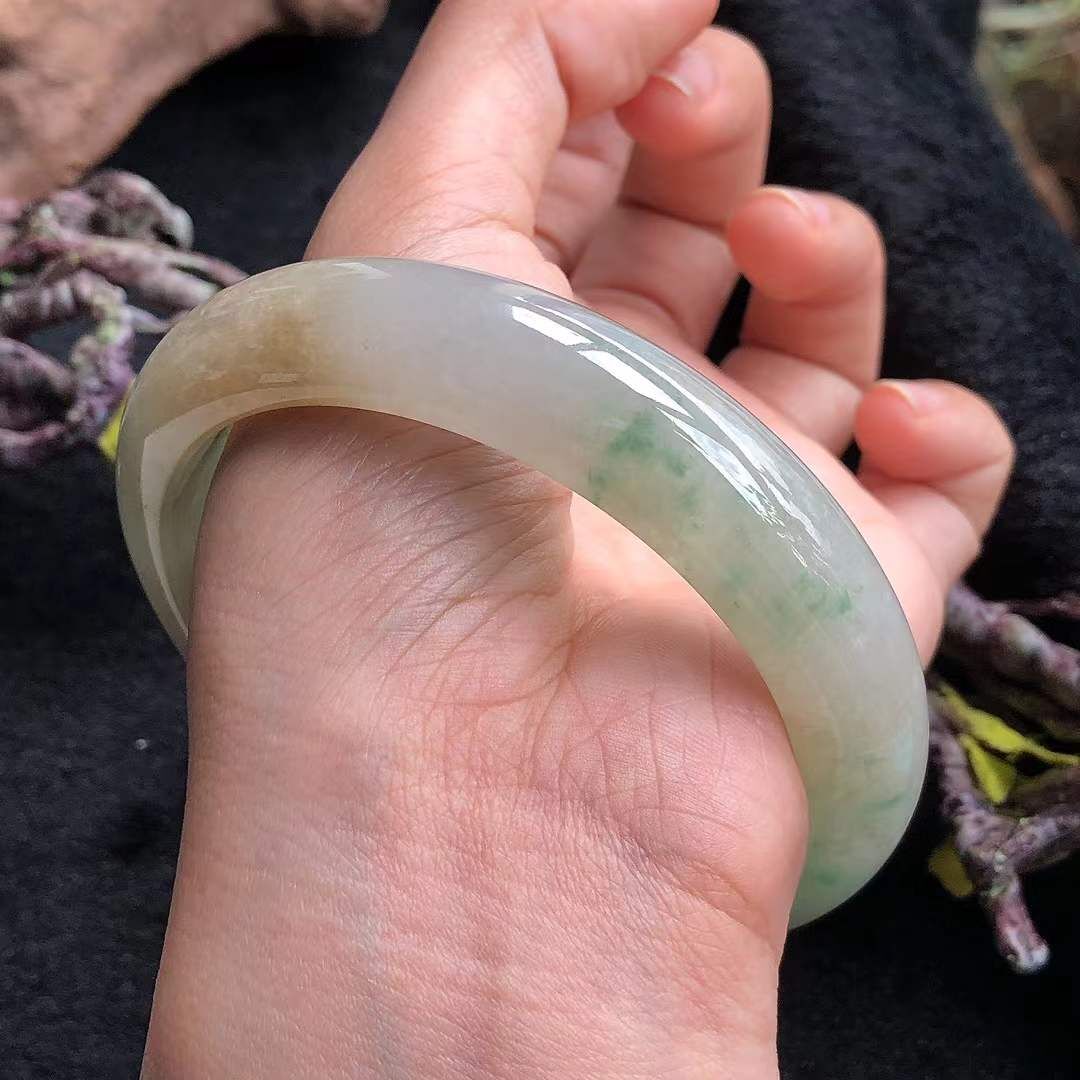 • 冰糯種飄黃翡正圈手鐲,天然翡翠A玉, 緬甸玉, Jade, Jadeite