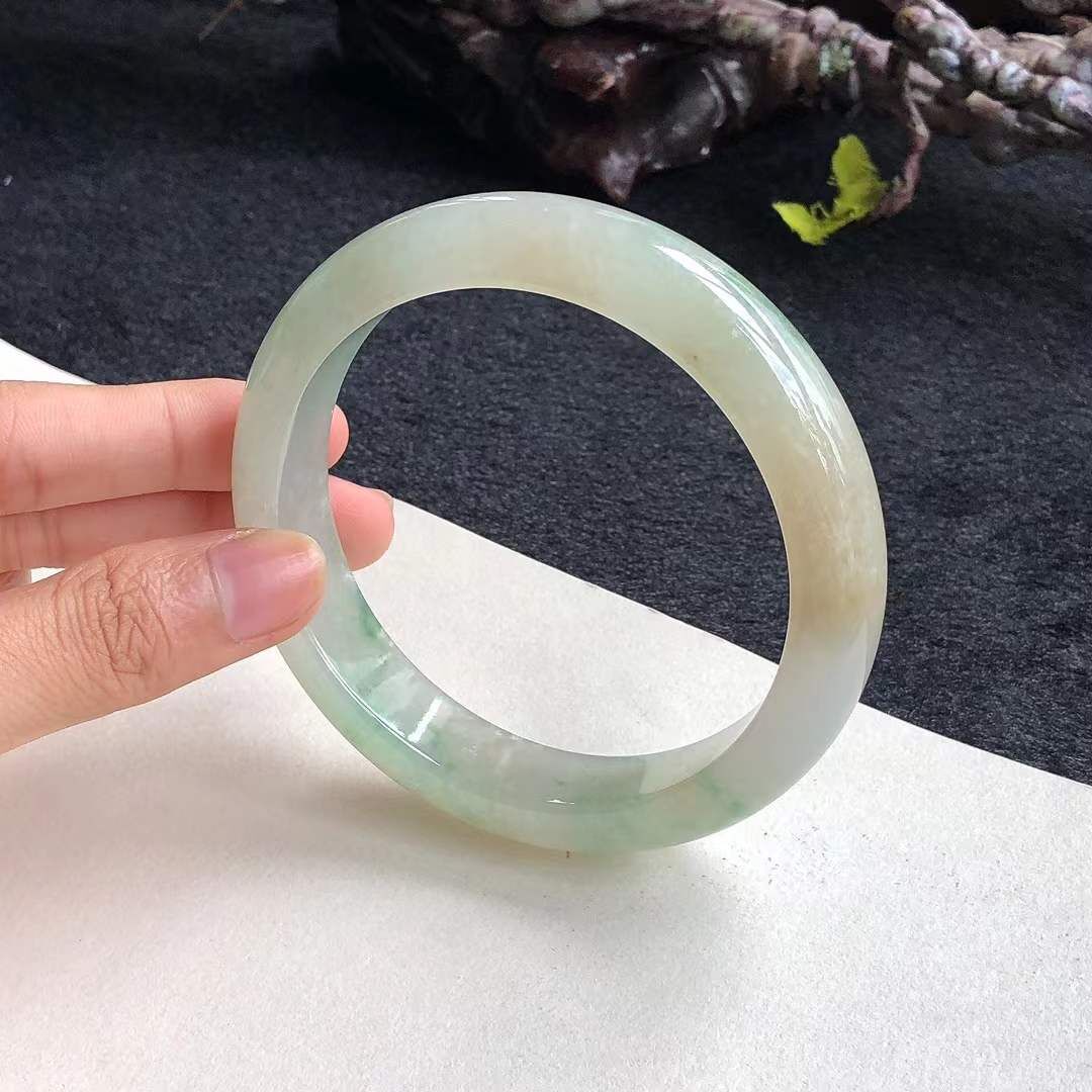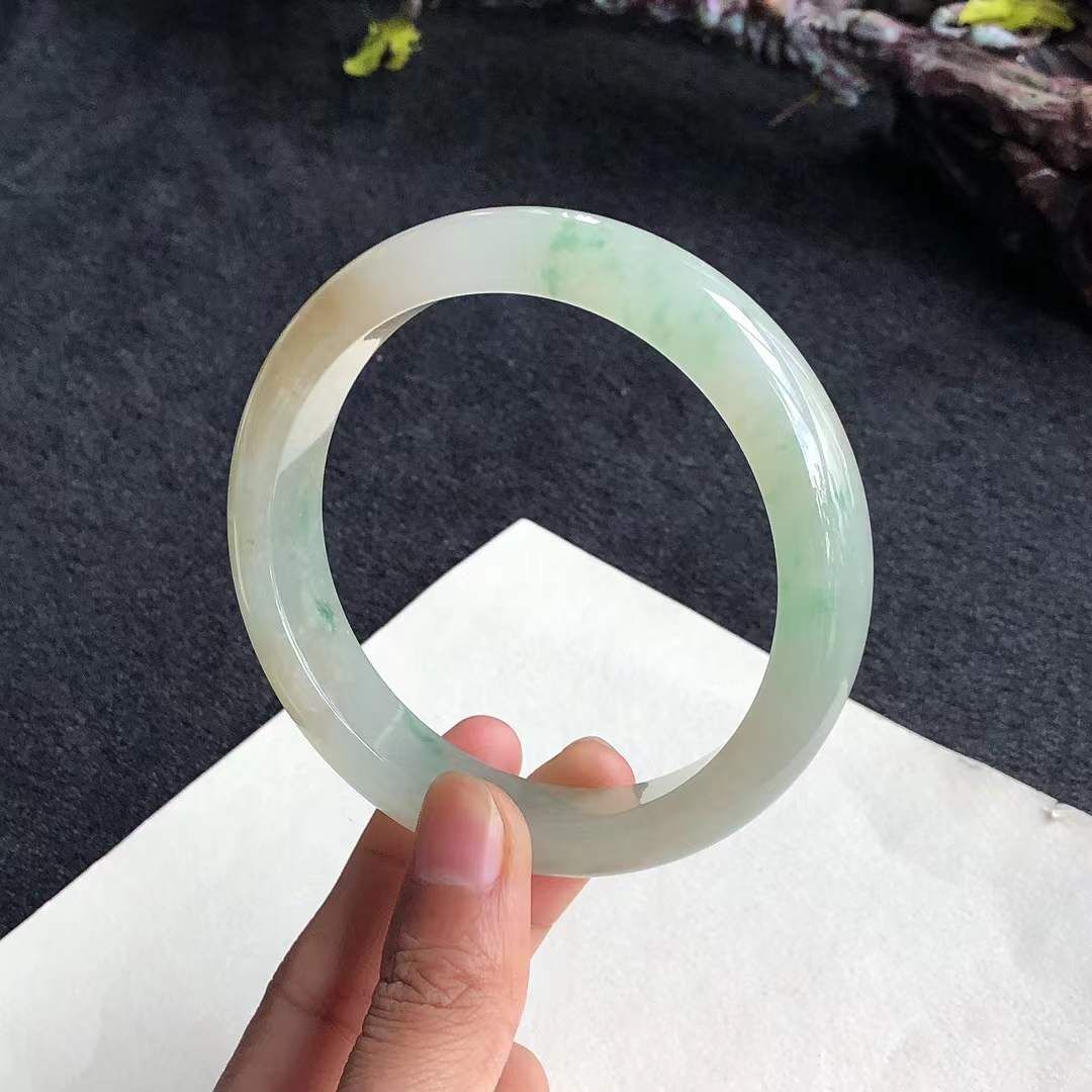 9252644 62.4mm冰糯種飄黃翡正圈手鐲 (62以上)