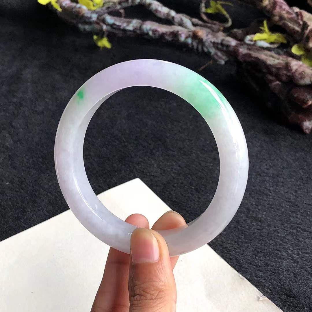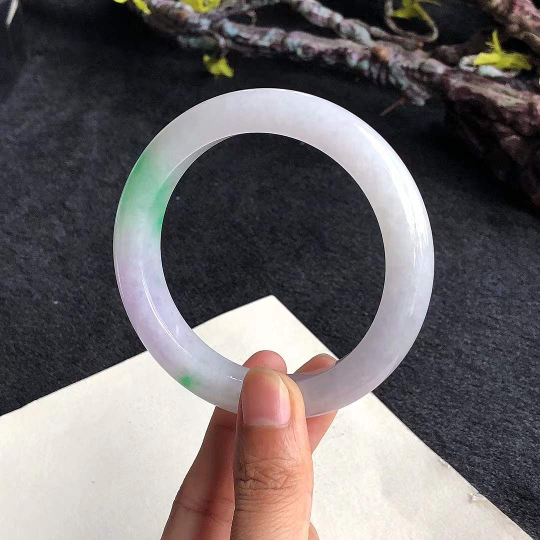 9252648 57mm冰糯種春彩翡翠正圈手鐲
