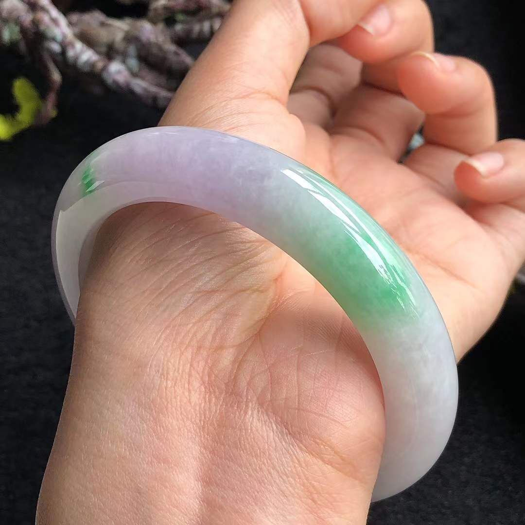 • 冰糯種春彩翡翠正圈手鐲,天然翡翠A玉, 緬甸玉, Jade, Jadeite